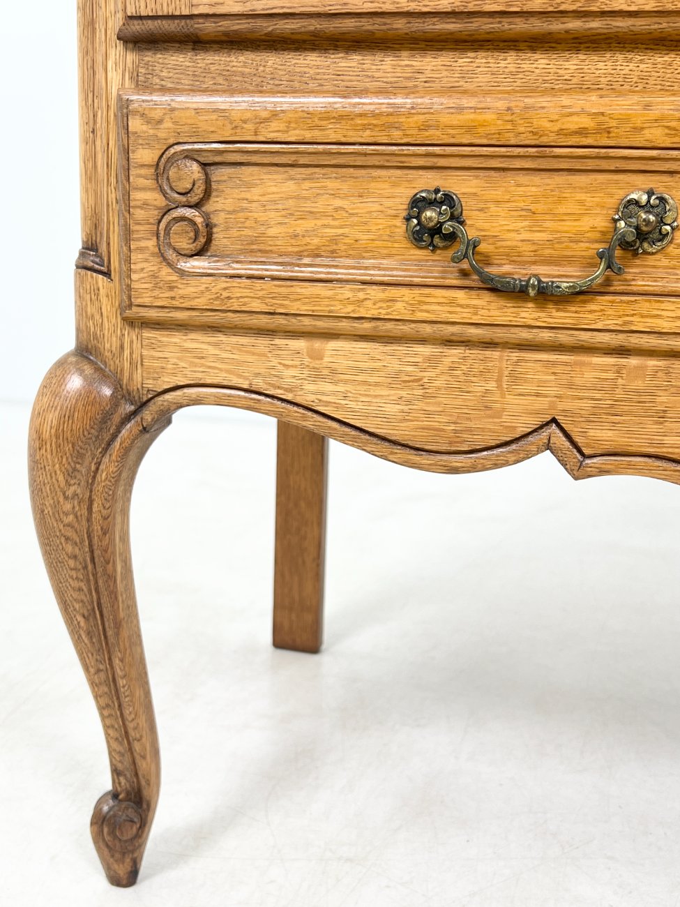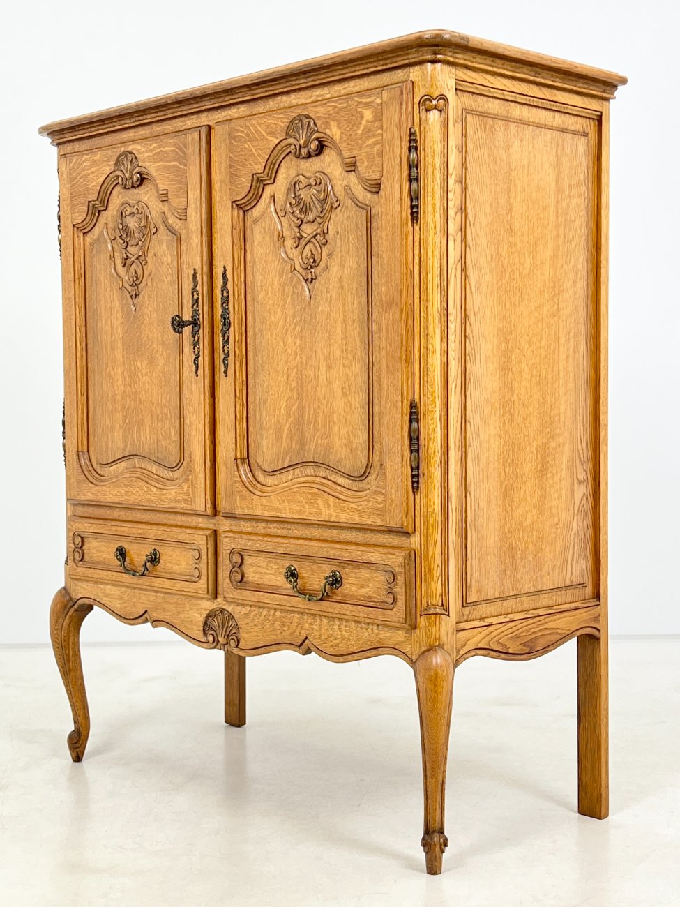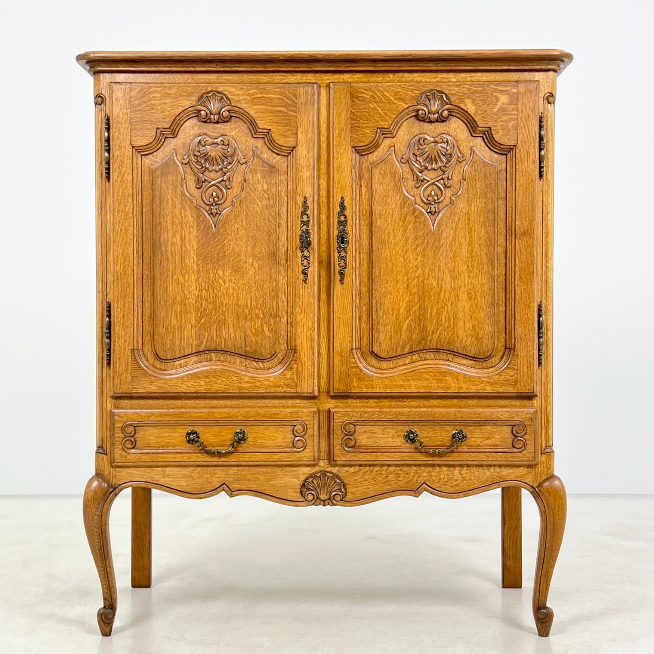 Ąžuolinė dviejų durų ir dviejų stalčių komoda.