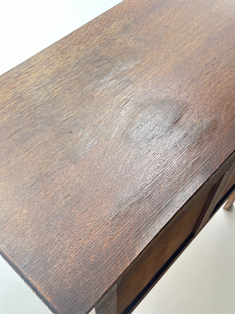 | Papildoma informacija | Stalviršio paviršiuje yra iškilusi faneruotė, apatiniame stalčiuje yra dėmių |