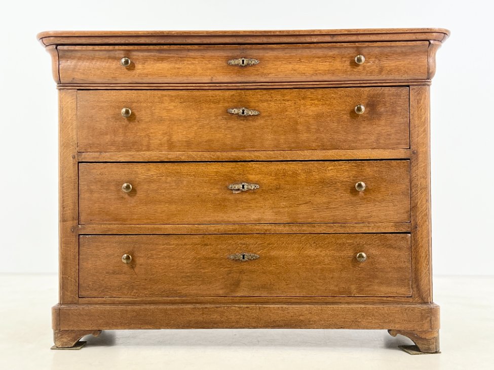 Ąžuolo masyvo keturių stalčių komoda.