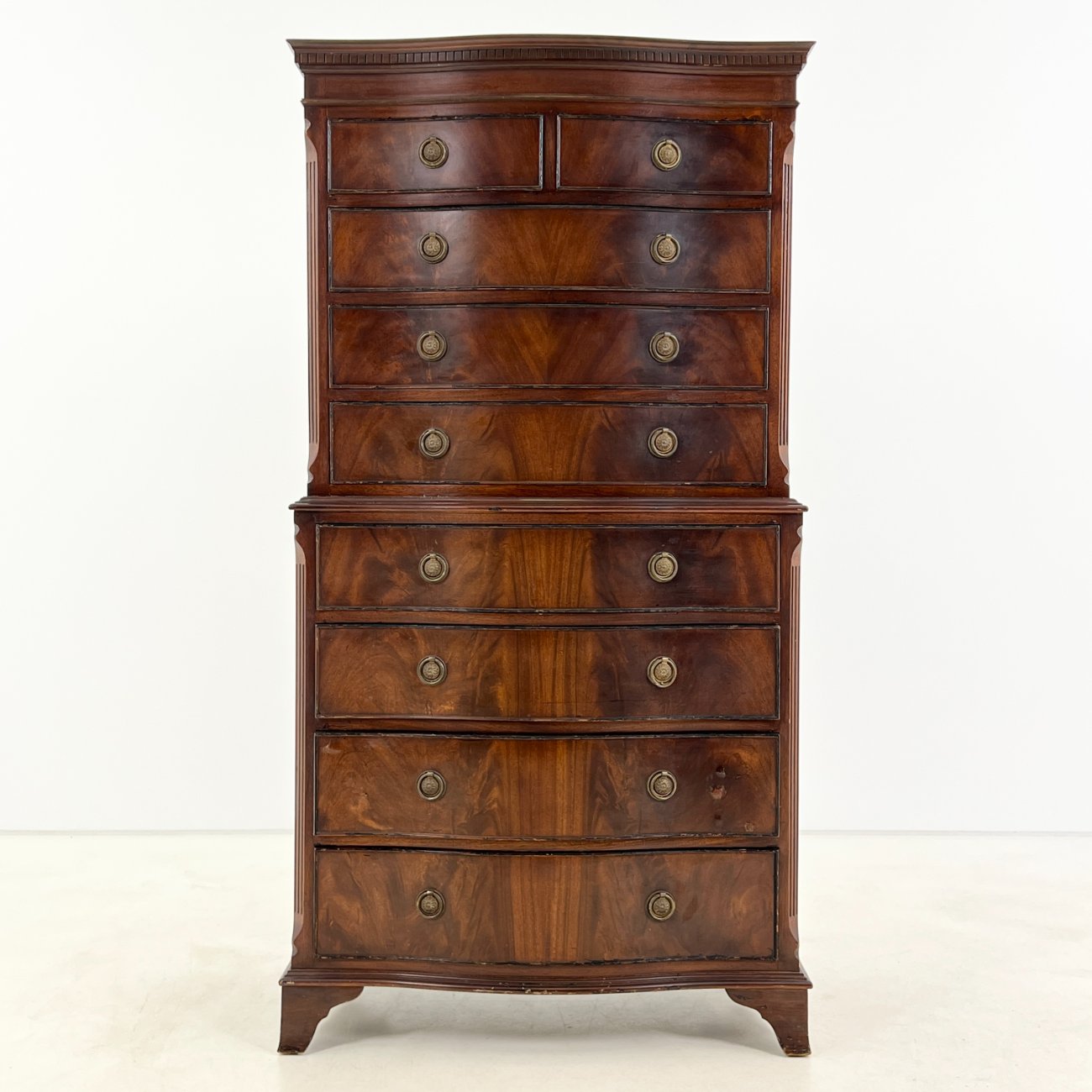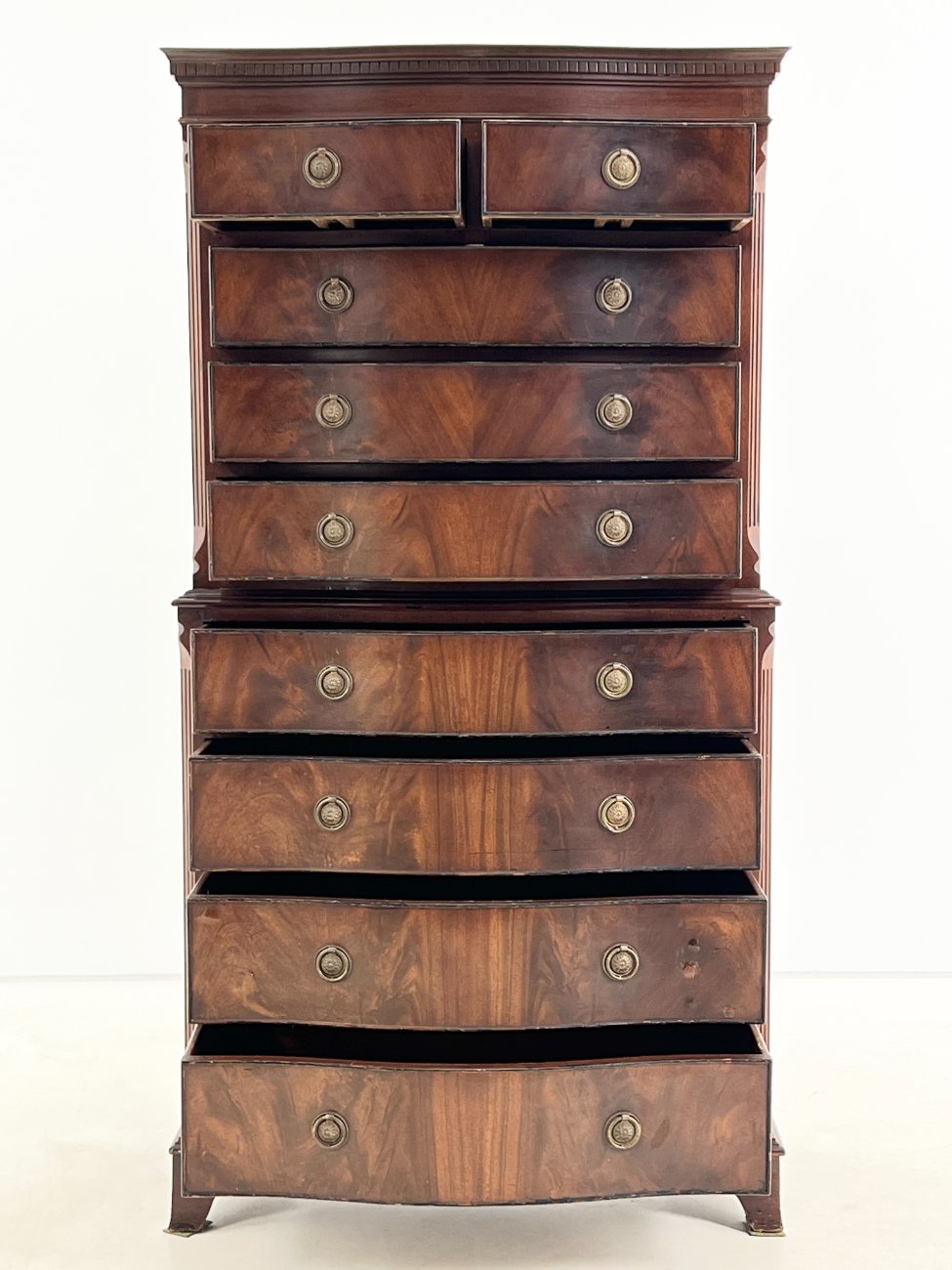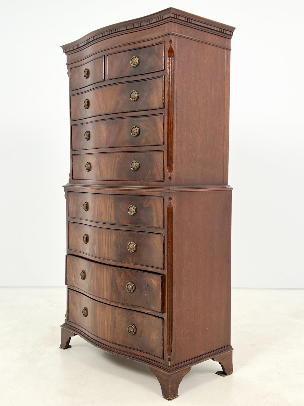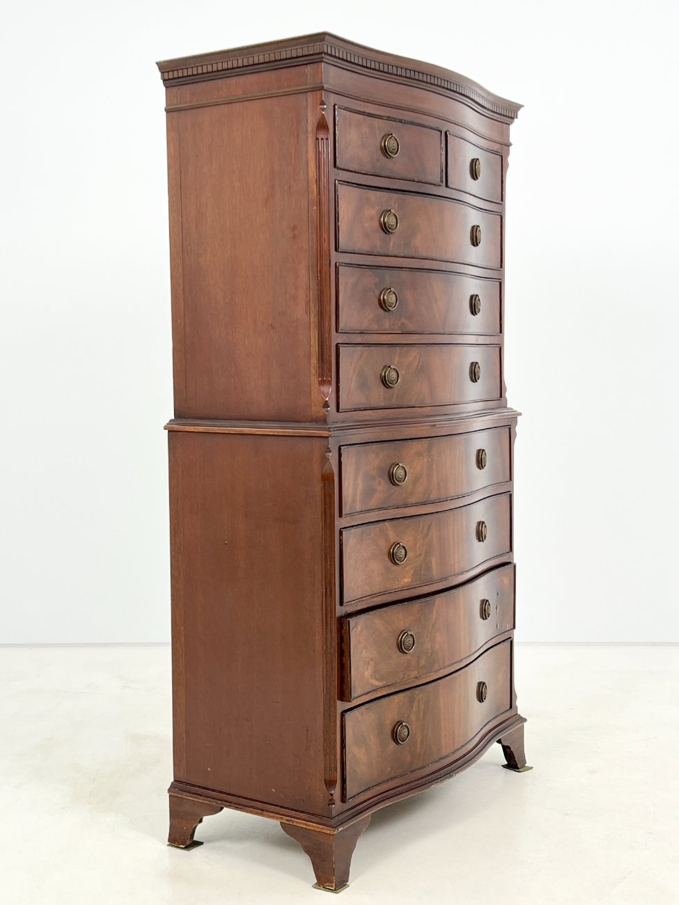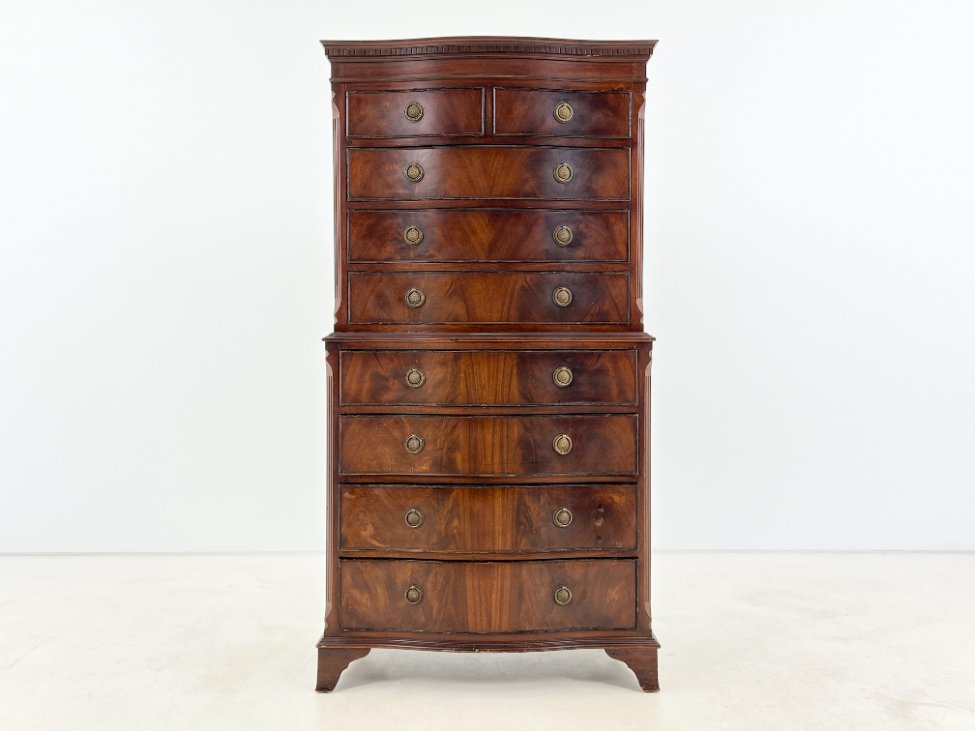 Britiško stiliaus, raudonmedžio, devynių stalčių komoda