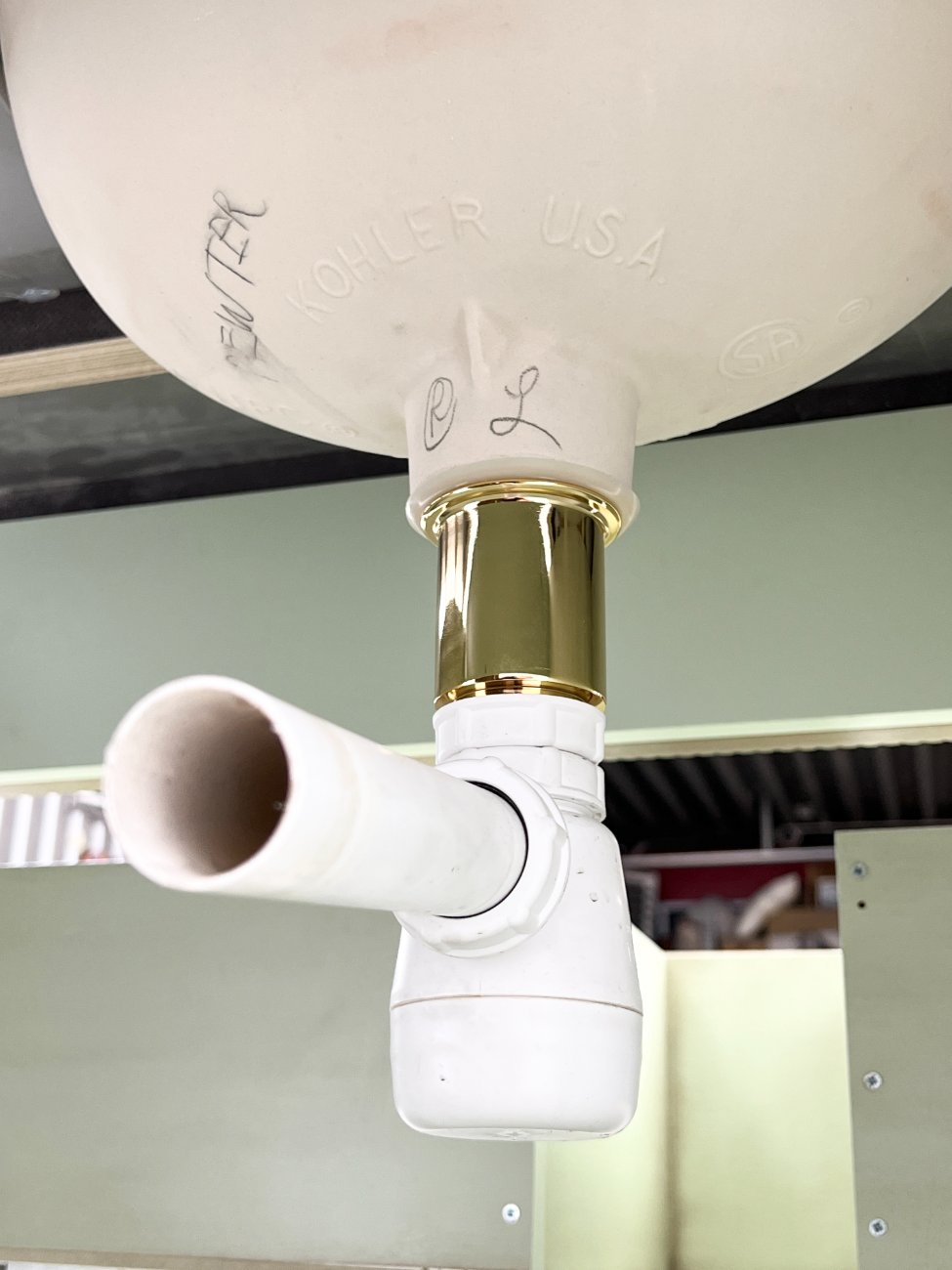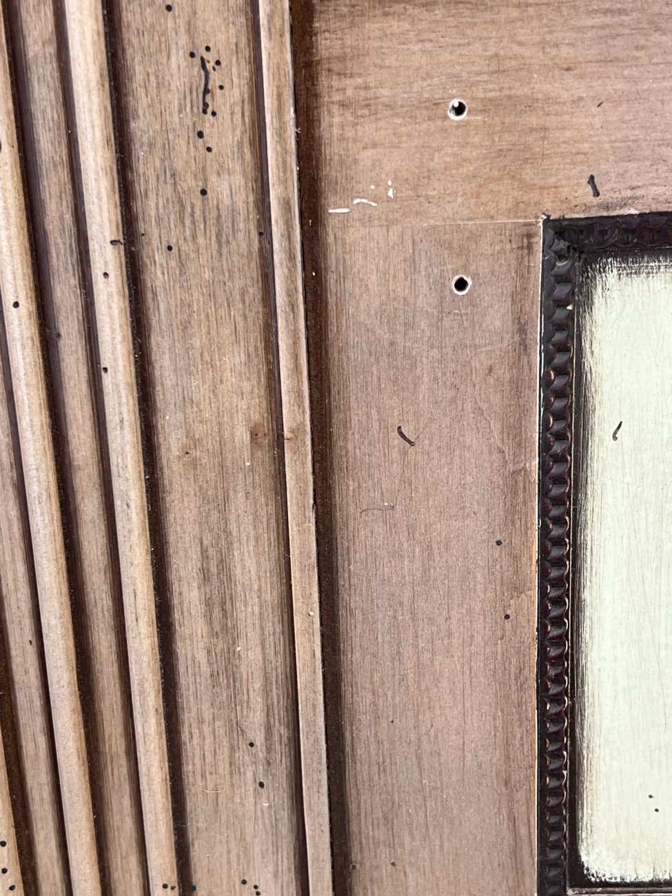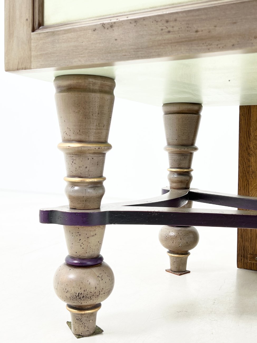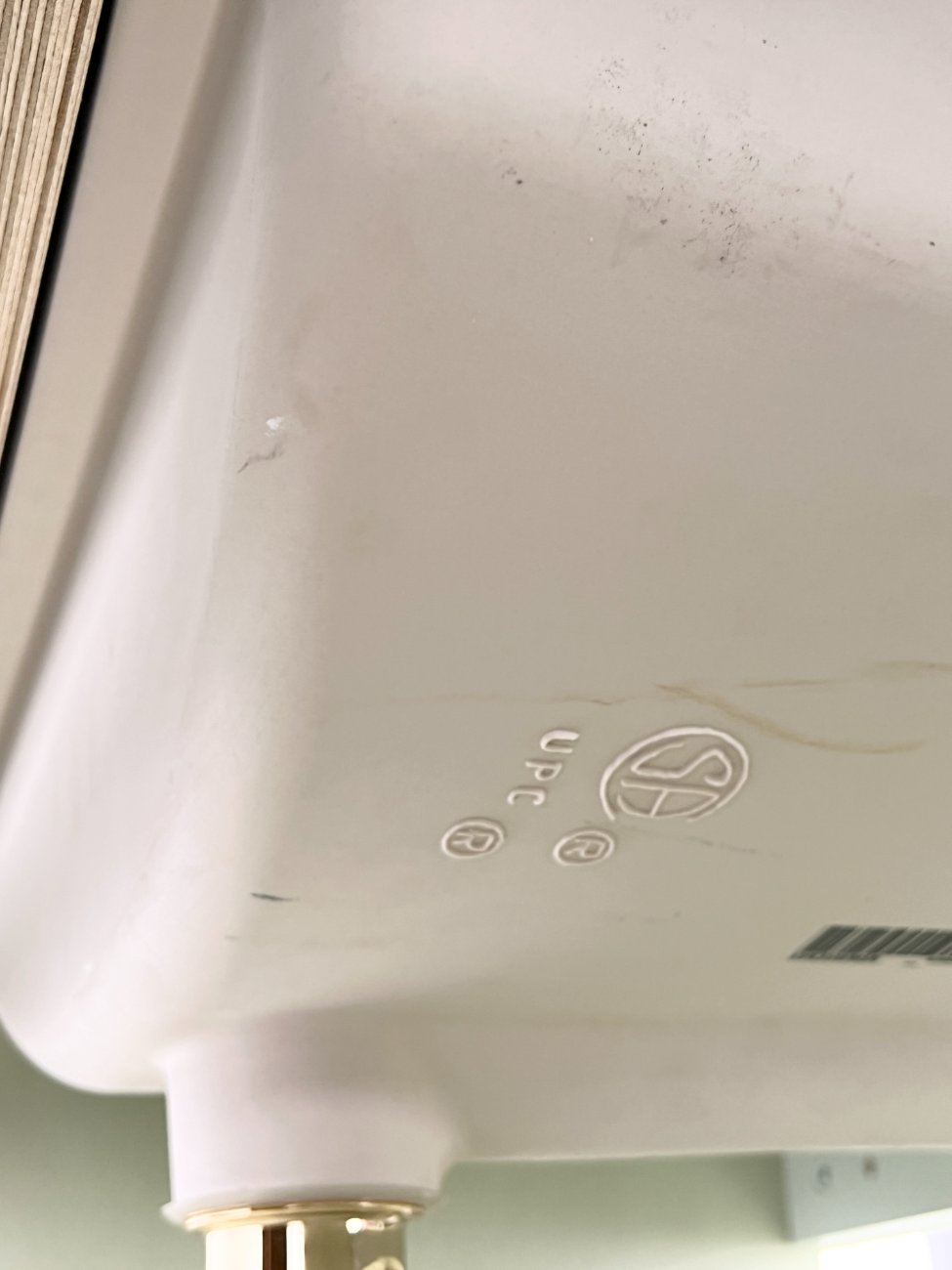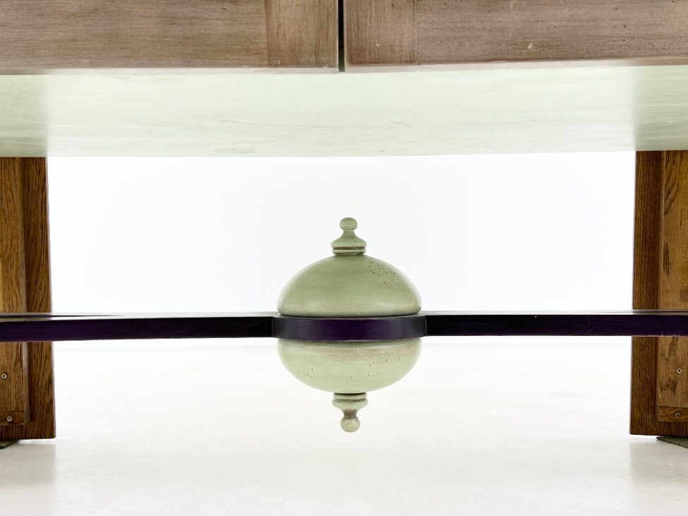 | Papildoma informacija | Matomos naudojimo žymės, vietomis yra pabraižymų, įmušimų, dėmių. Nugarinėje dalyje ir šonų nugarinėse dalyse likę tvirtinimo klijai., Naudota sendinimo technika. Stalviršio aukštis 85 cm. Keramikiniai praustuvai, kairiojo gamintojas "Kohler", žalvariniai maišytuvai "Graff", epoksidinis stalviršis. |
