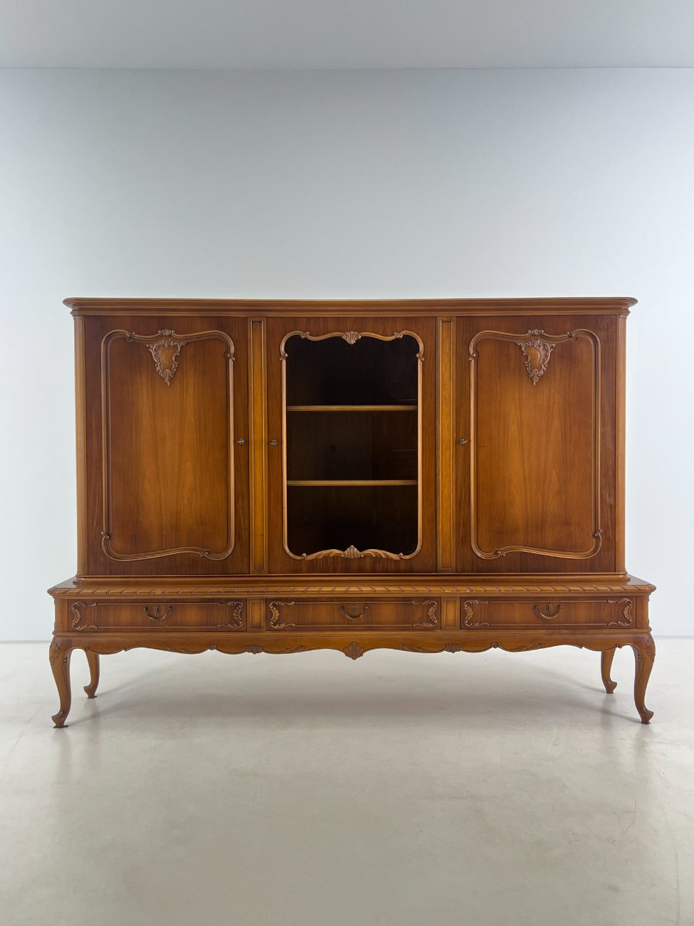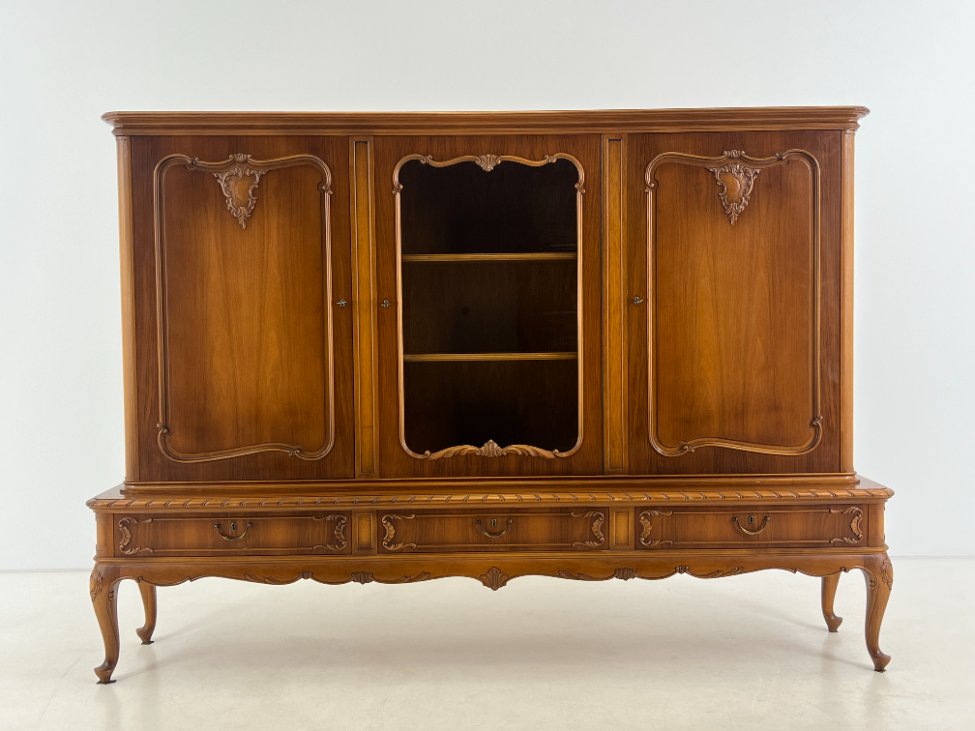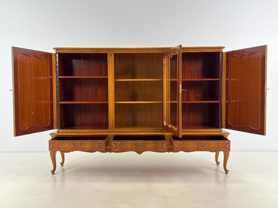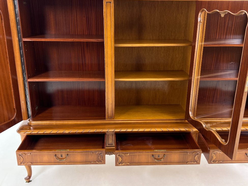 Ilga ąžuolinė komoda su centrinėmis stiklinėmis durimis 47x220x154 cm