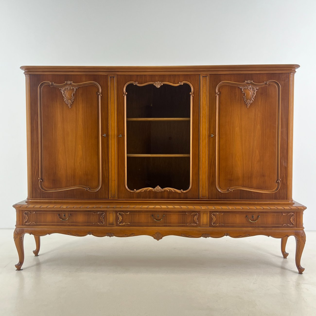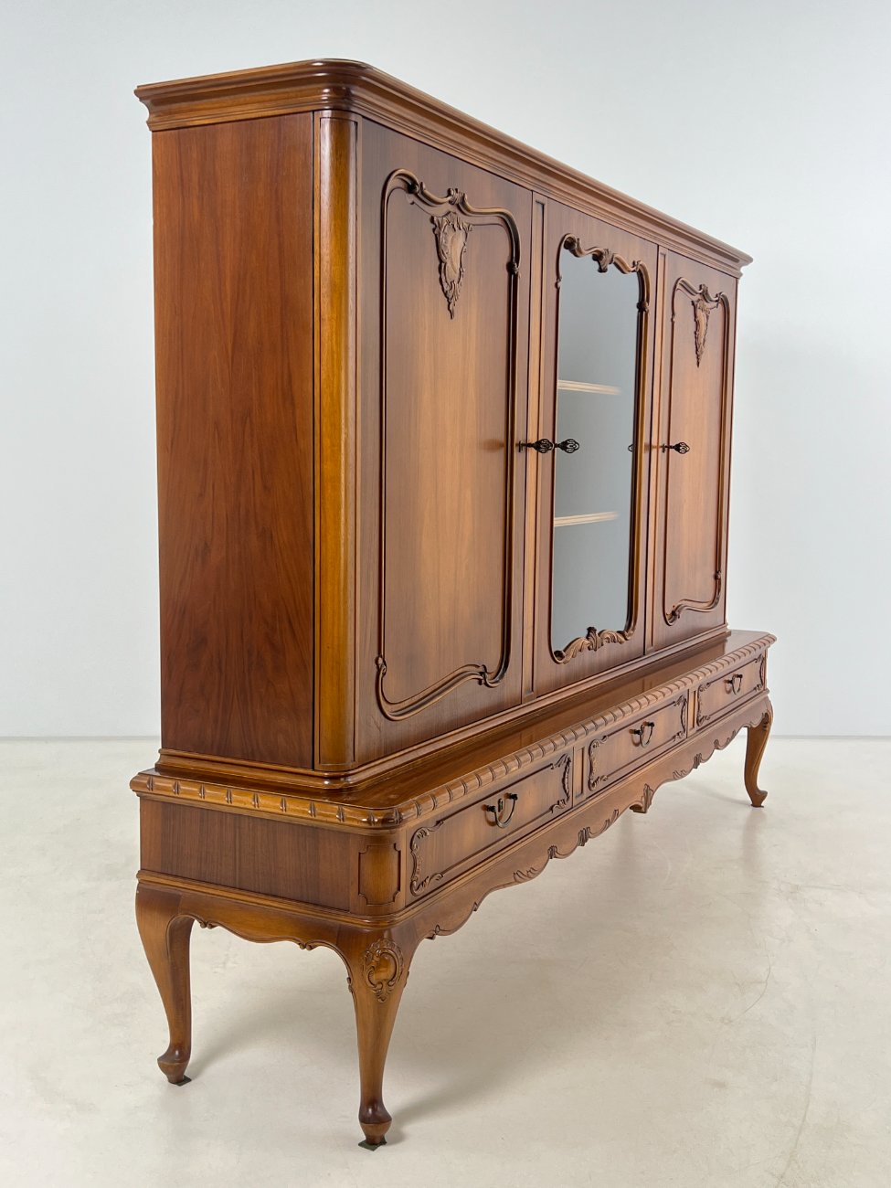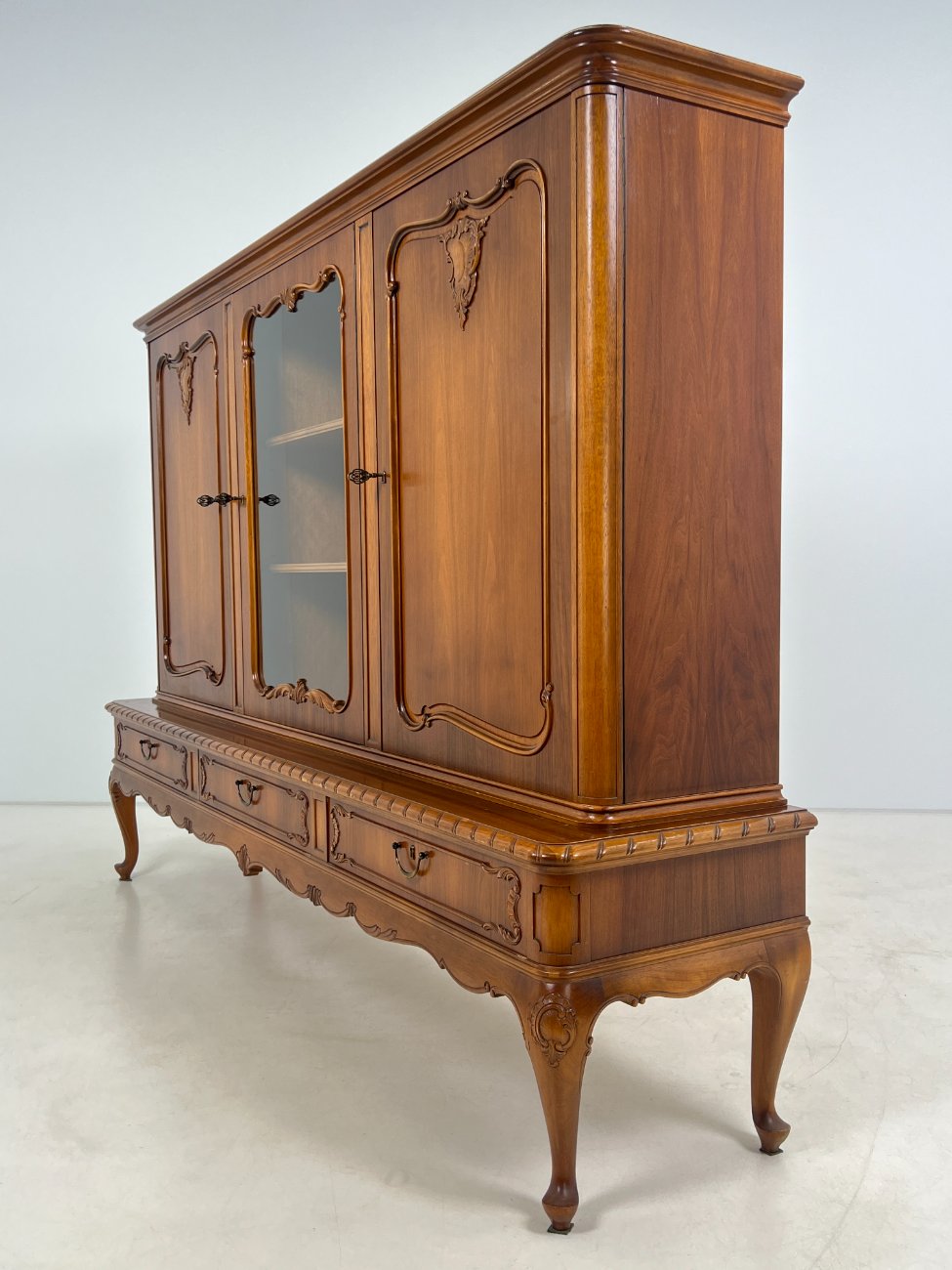 Ilga ąžuolinė komoda su centrinėmis stiklinėmis durimis 47x220x154 cm