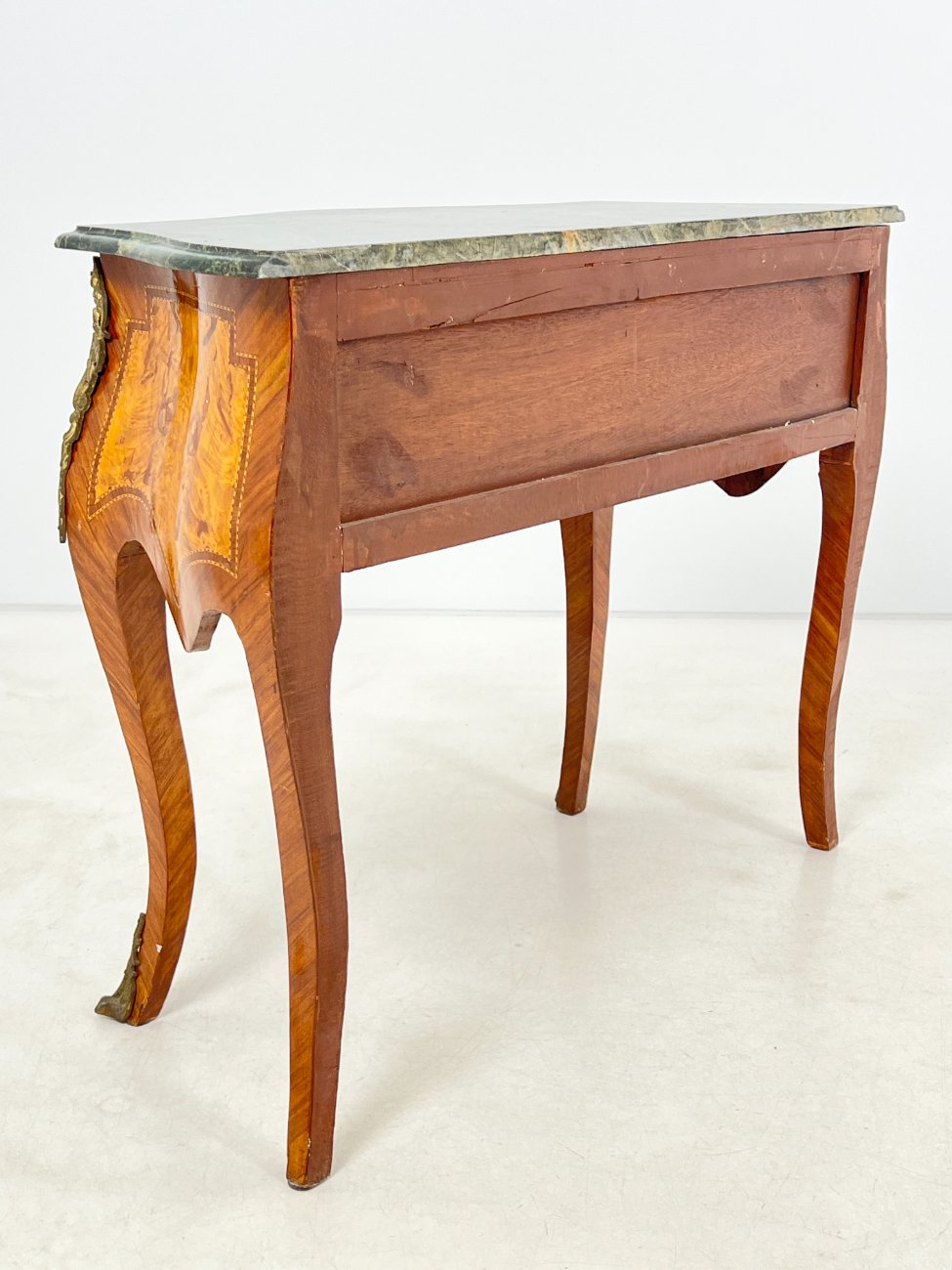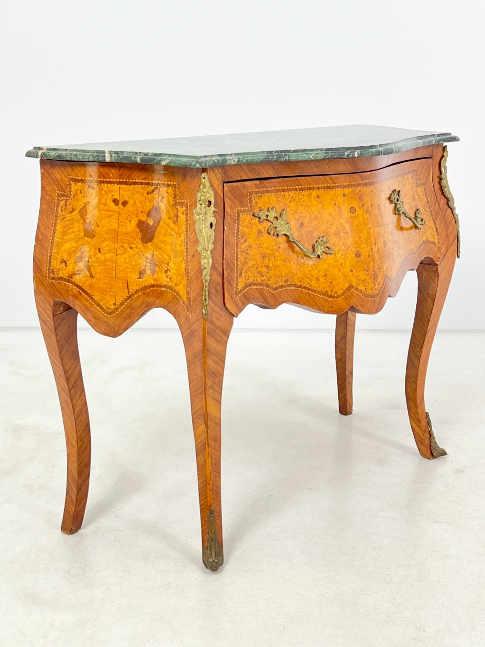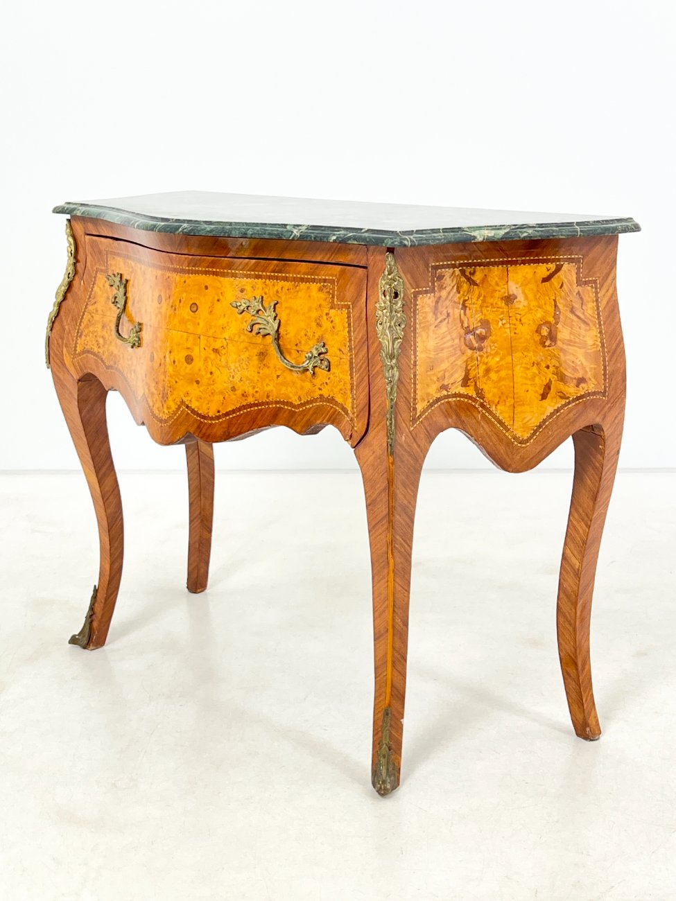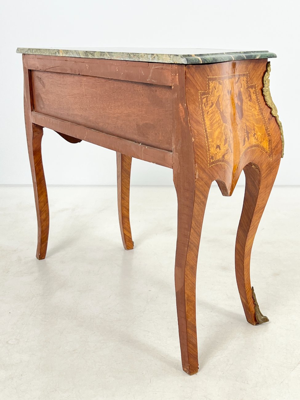 Liudviko XV laikotarpio stiliaus inkrustuota komoda su marmuru ir žalvario detalėmis 45x103x78,5 cm