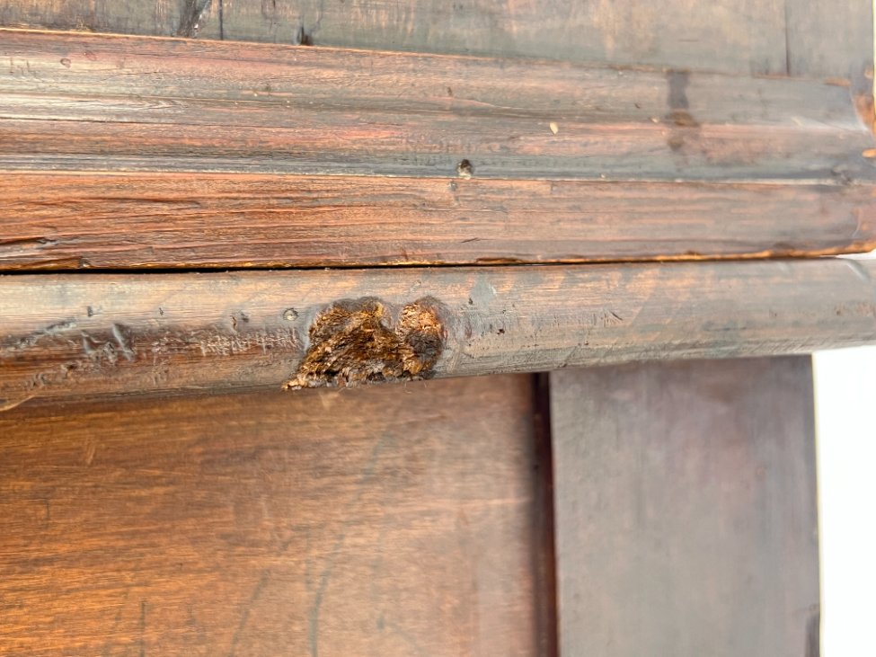 | Papildoma informacija | Matomos naudojimo žymės, per visą paviršių yra pabraižymų, įmušimų, medienos skilimų. Yra kinivarpų pažeidimų. |