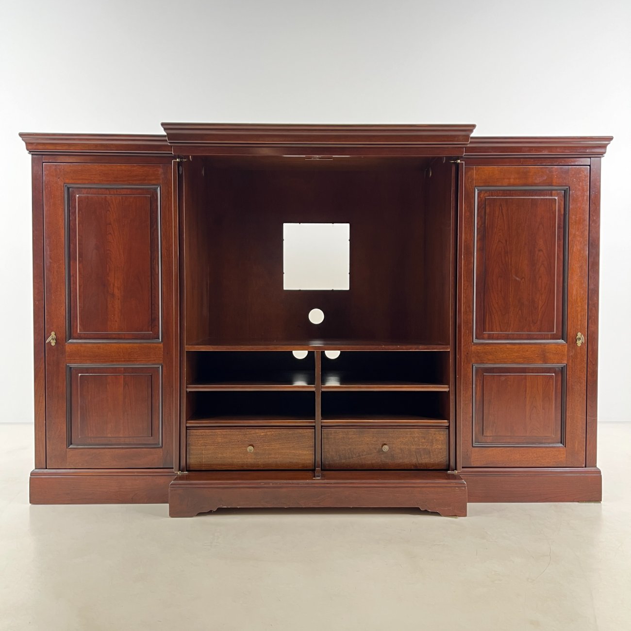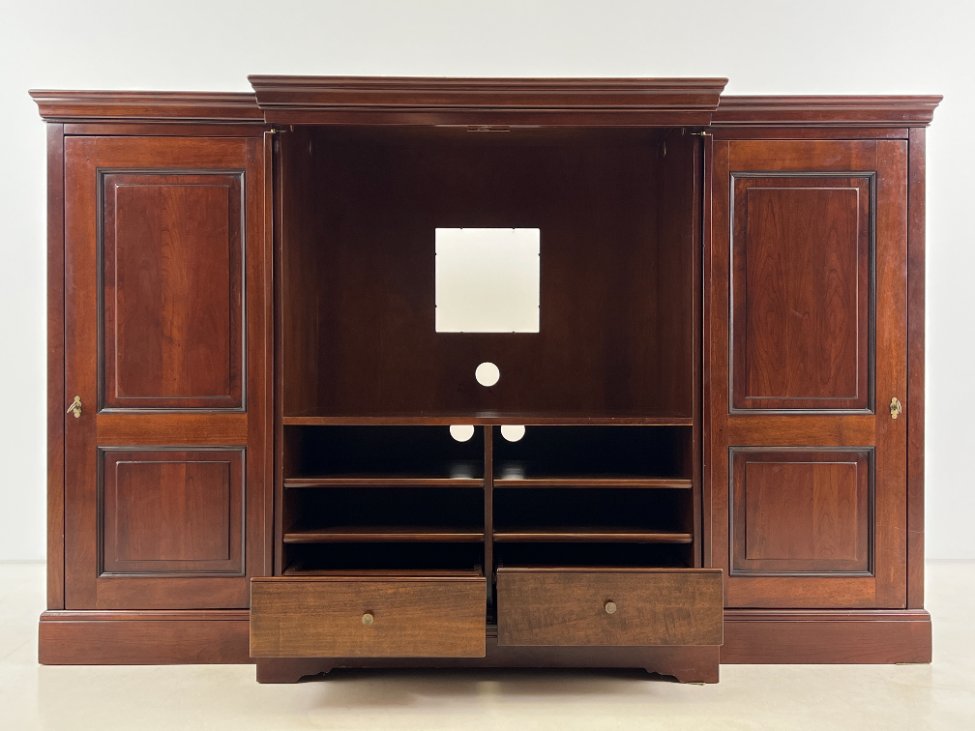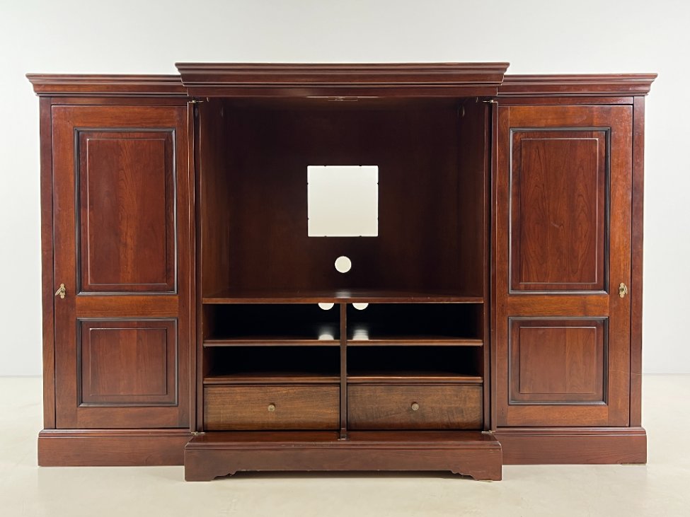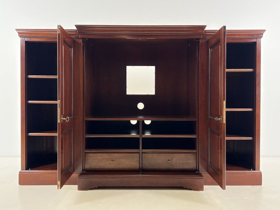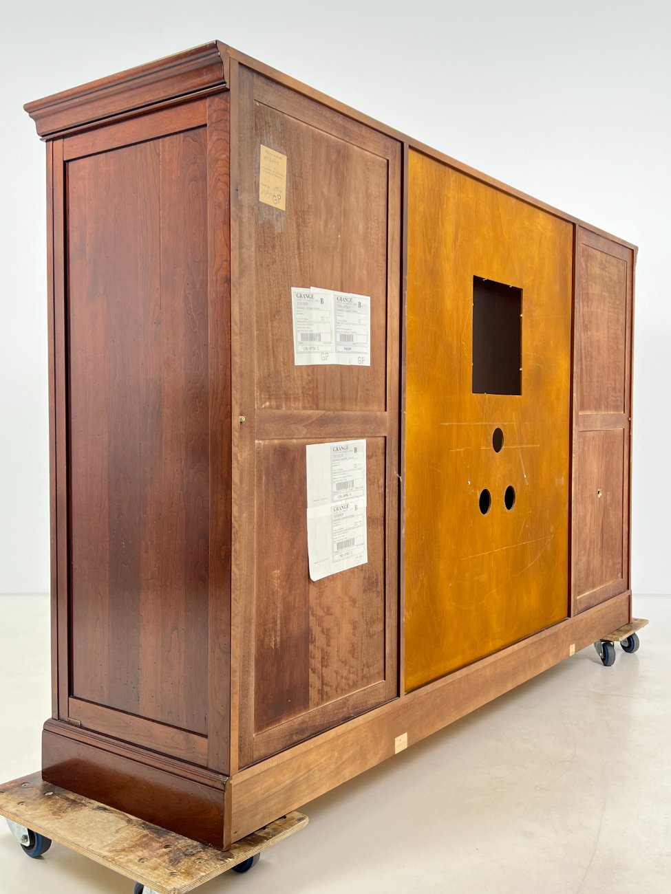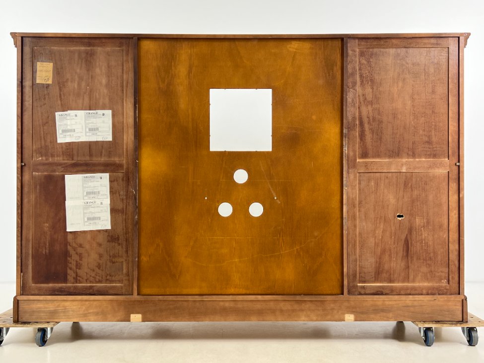 Prancūziška “Grange” TV komoda su transformuojamomis durimis.