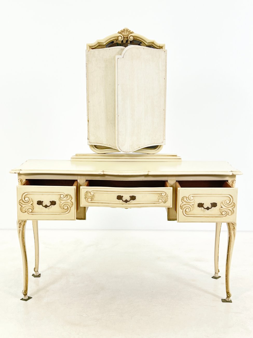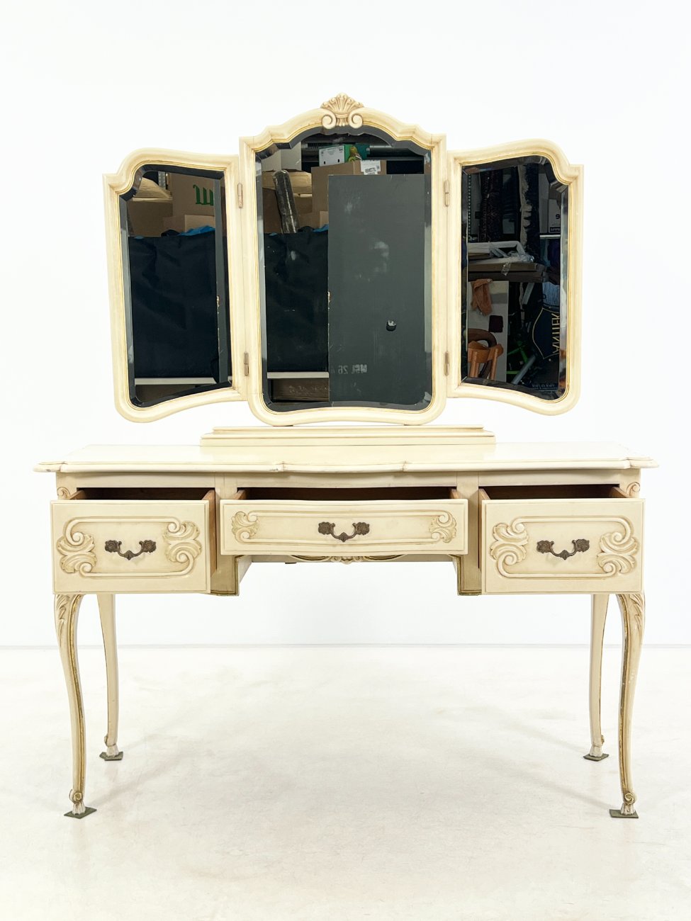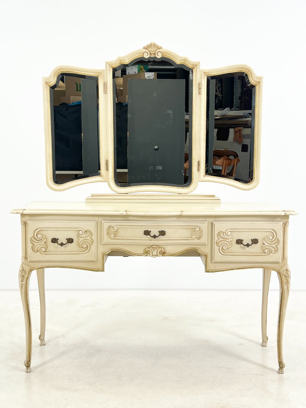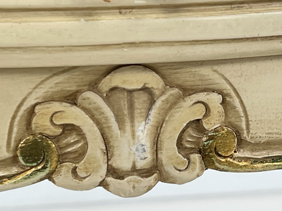 | Papildoma informacija | Matomos naudojimo žymės, per visą paviršių yra pabraižymų, dažų pažeidimų. Ant centrinio veidrodžio yra stiklo gaminimo broko. |