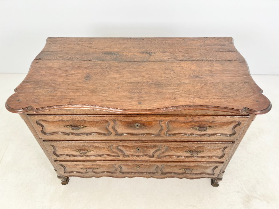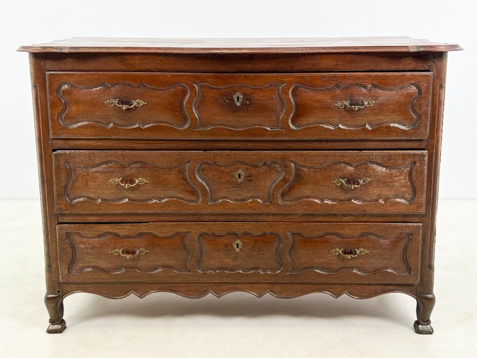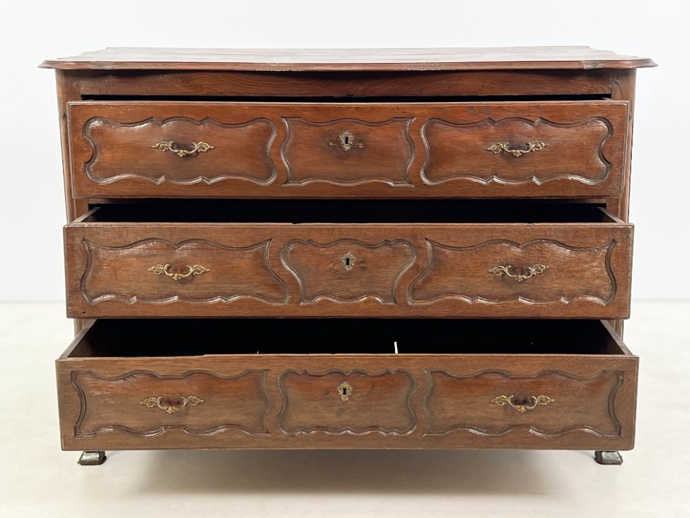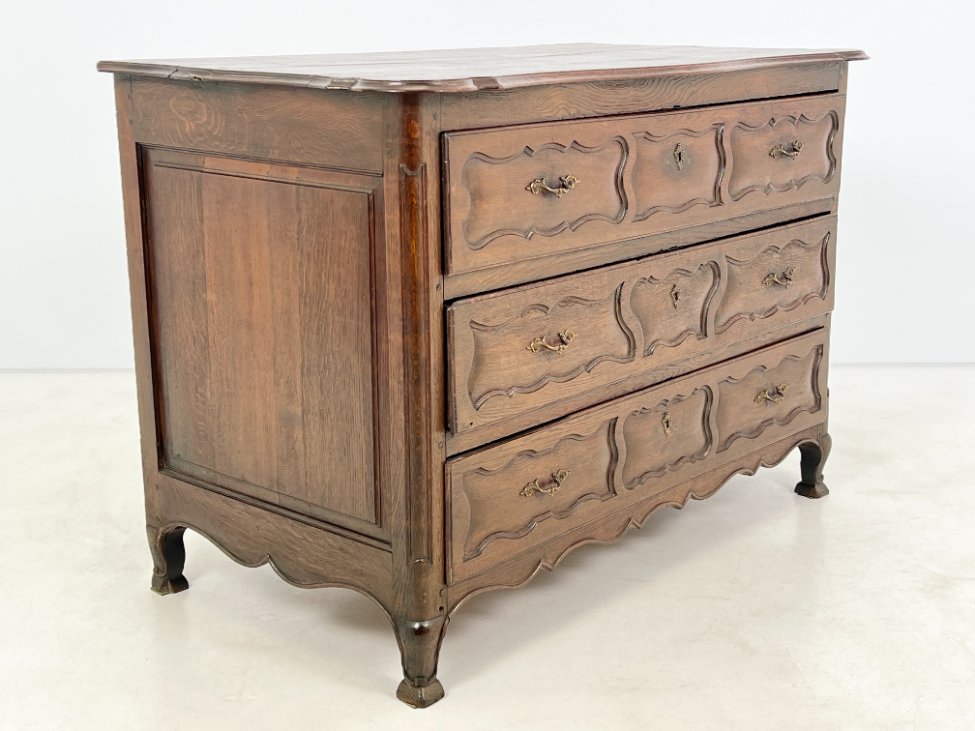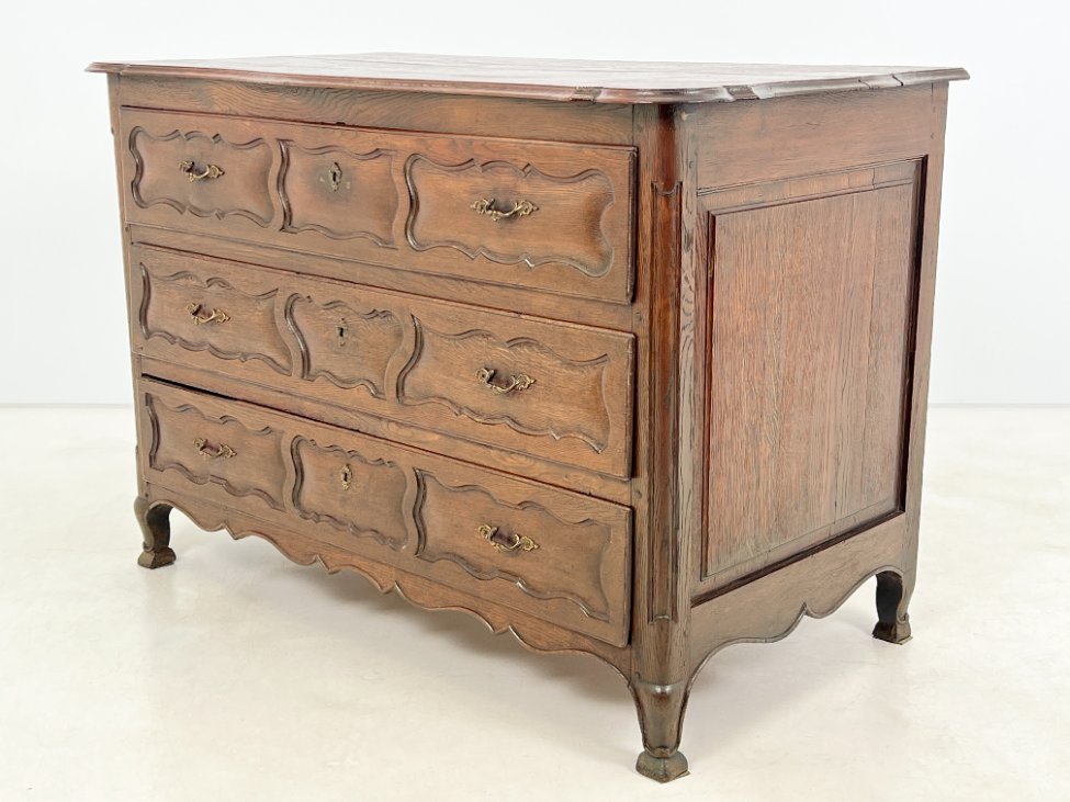 Senovinė ąžuolinė trijų stalčių komoda.