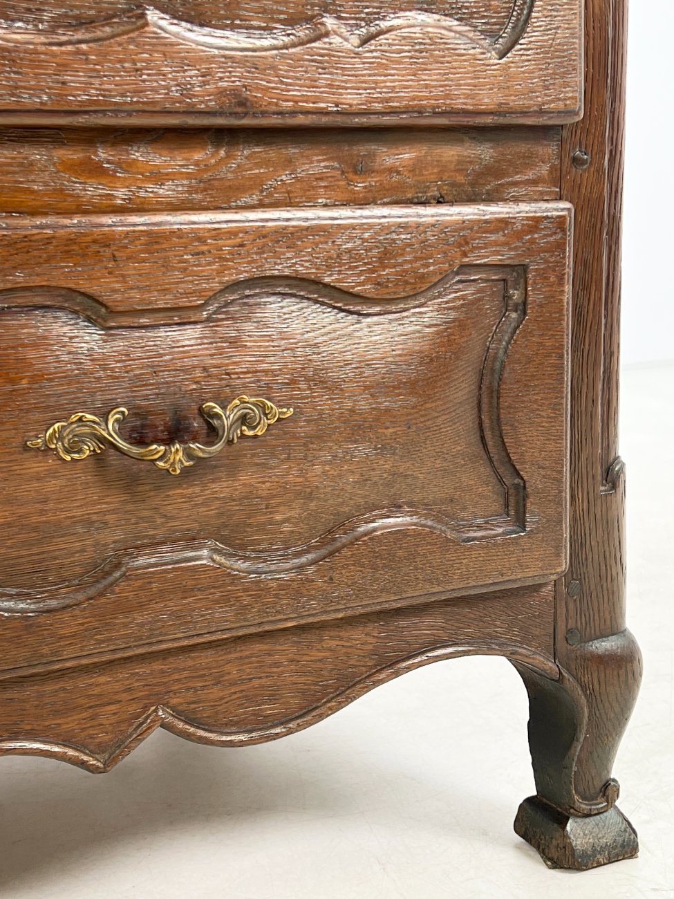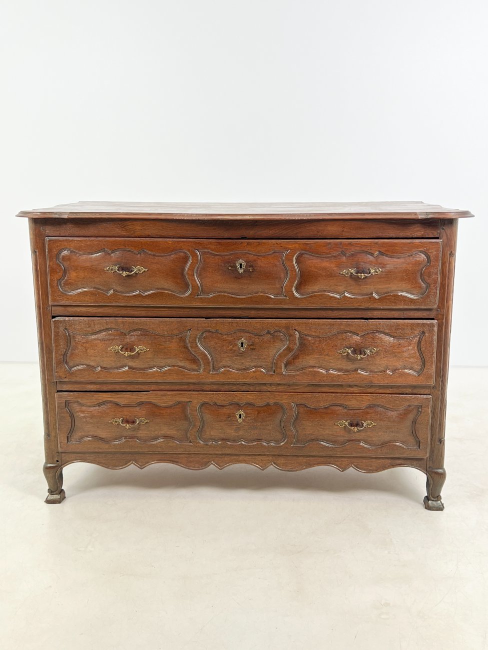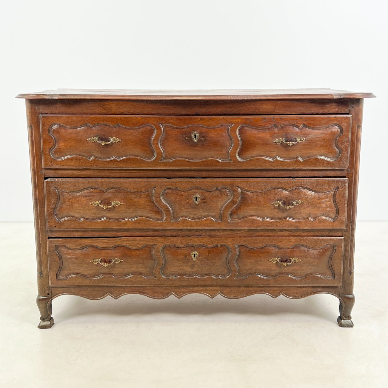 Senovinė ąžuolinė trijų stalčių komoda.