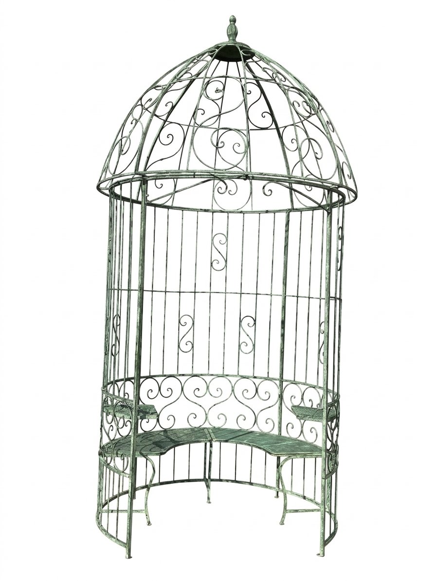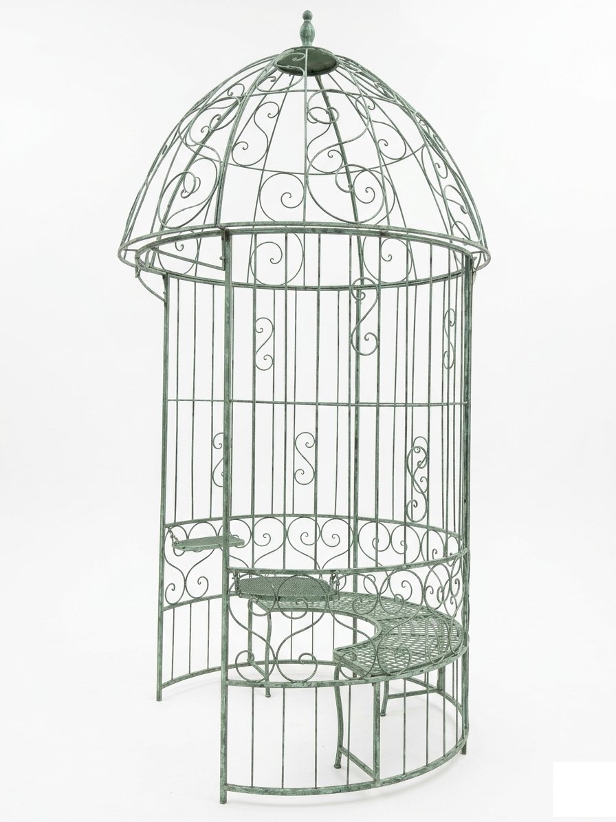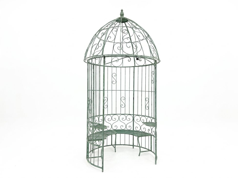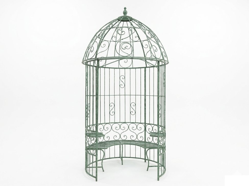 Metalinė sodo pavėsinė su integruotais staliukais ir suoliuku 166x166x330 cm