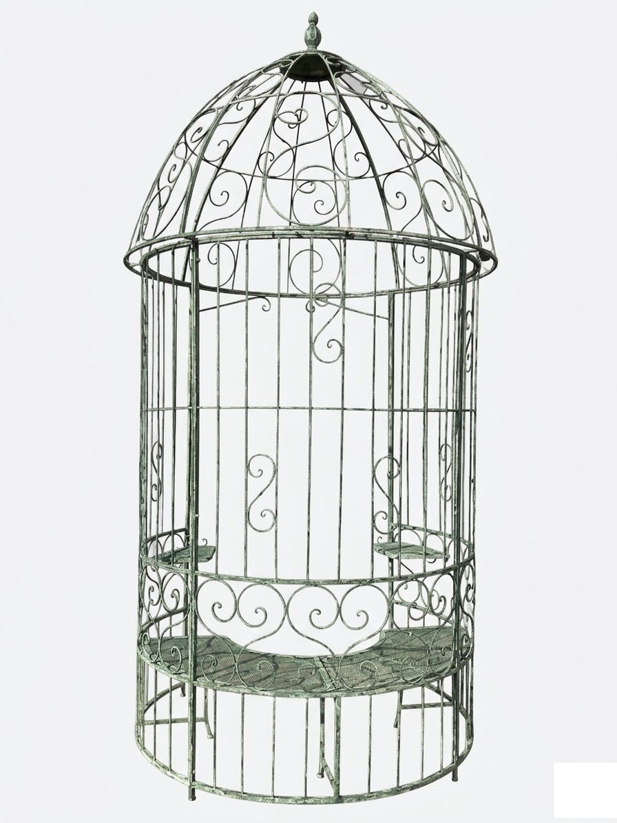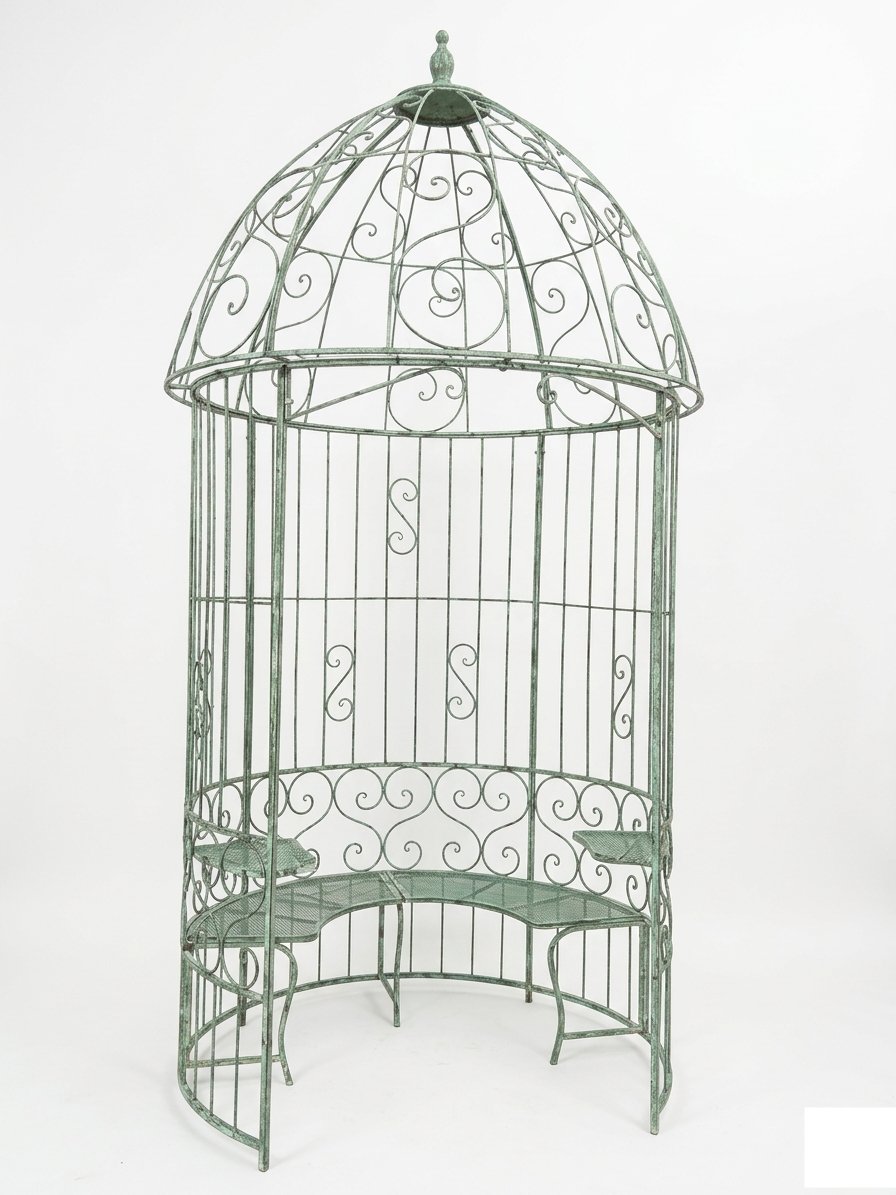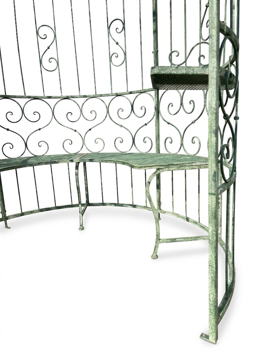 Metalinė sodo pavėsinė su integruotais staliukais ir suoliuku 166x166x330 cm