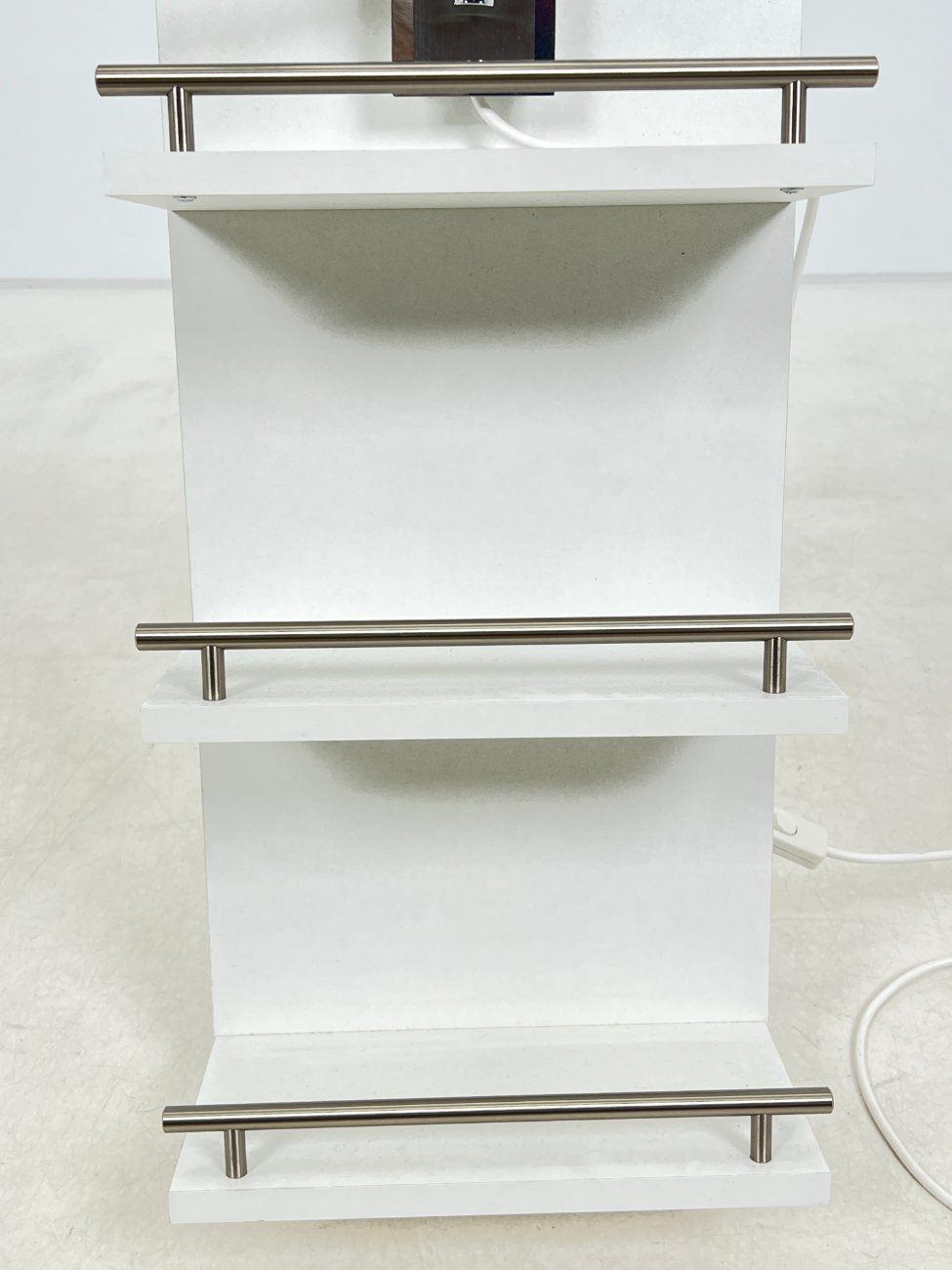 Pakabinama baltos spalvos lentyna su apšvietimu 17x36x70 cm