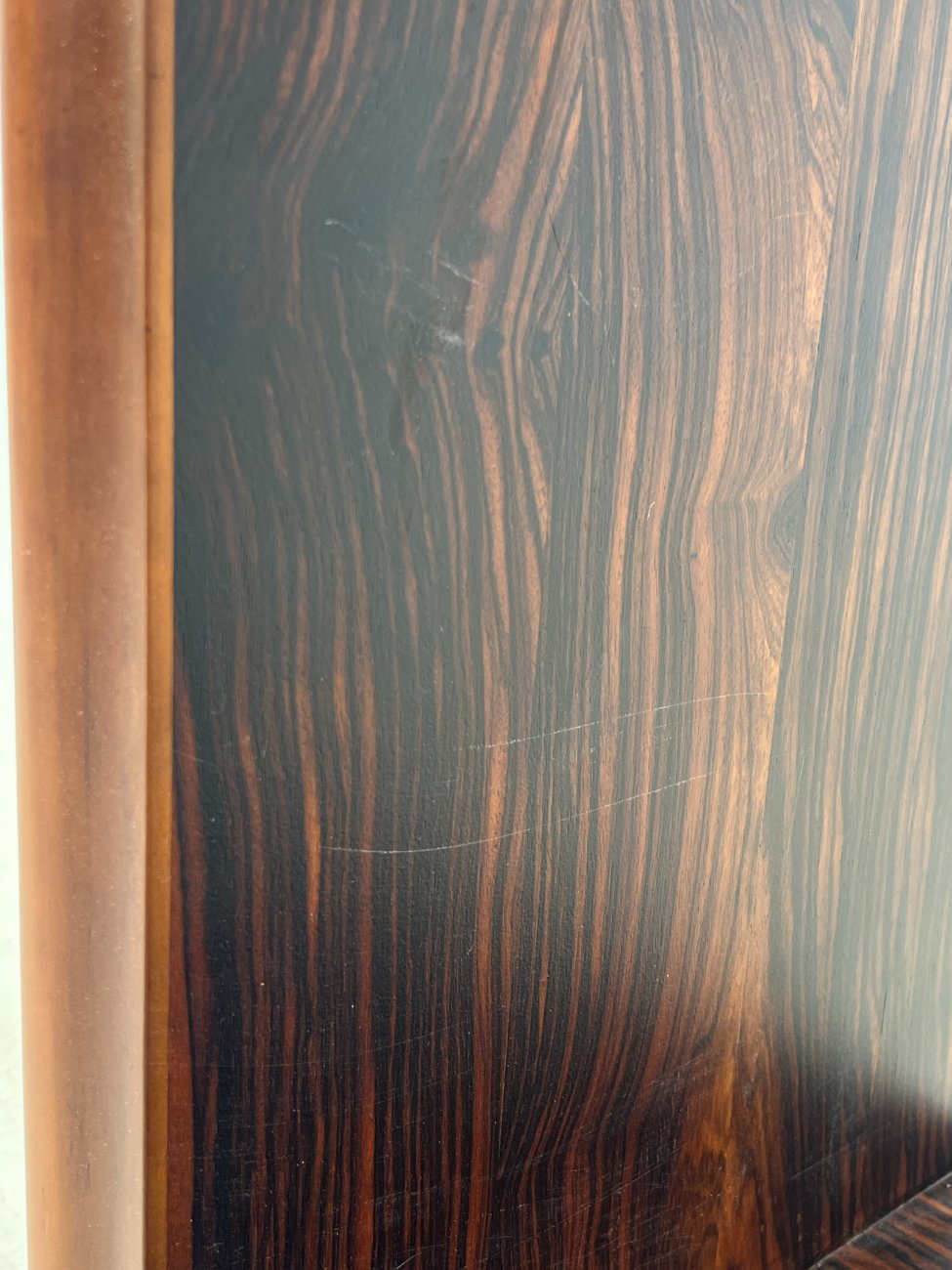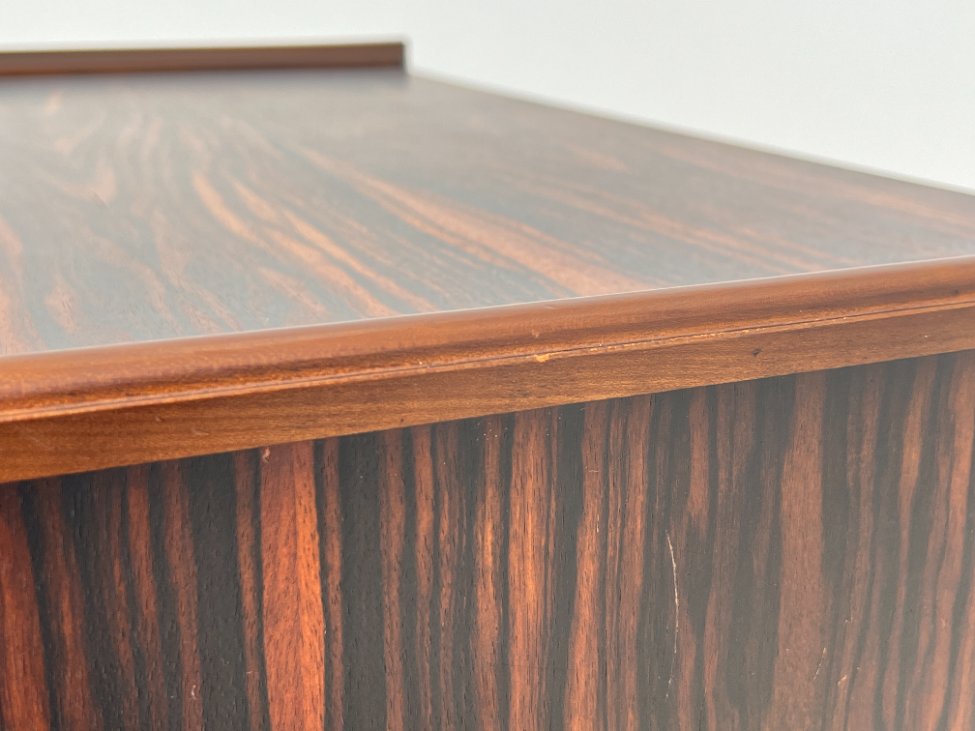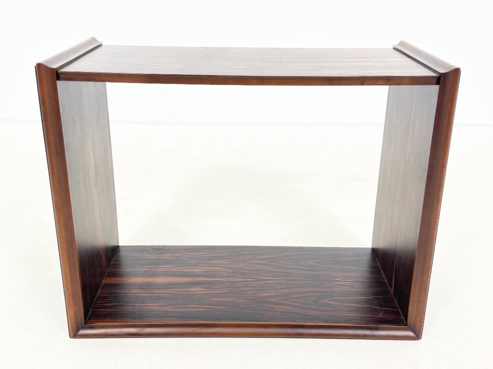 Mid Century juodmedžio lukšto pastatoma lentyna.