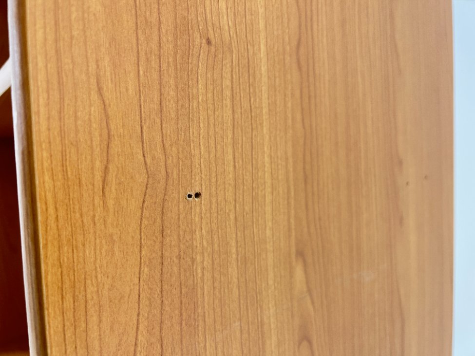 | Papildoma informacija | Abiejose šonuose yra skylių, apatinėje dalyje yra atšokusios faneruotės, pabraižymai, dėmių |