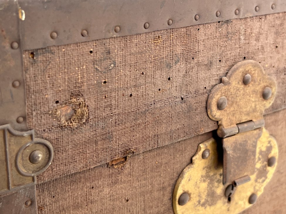 Senovinė kelioninė skrynia su rankenomis šonuose 51x86x43 cm