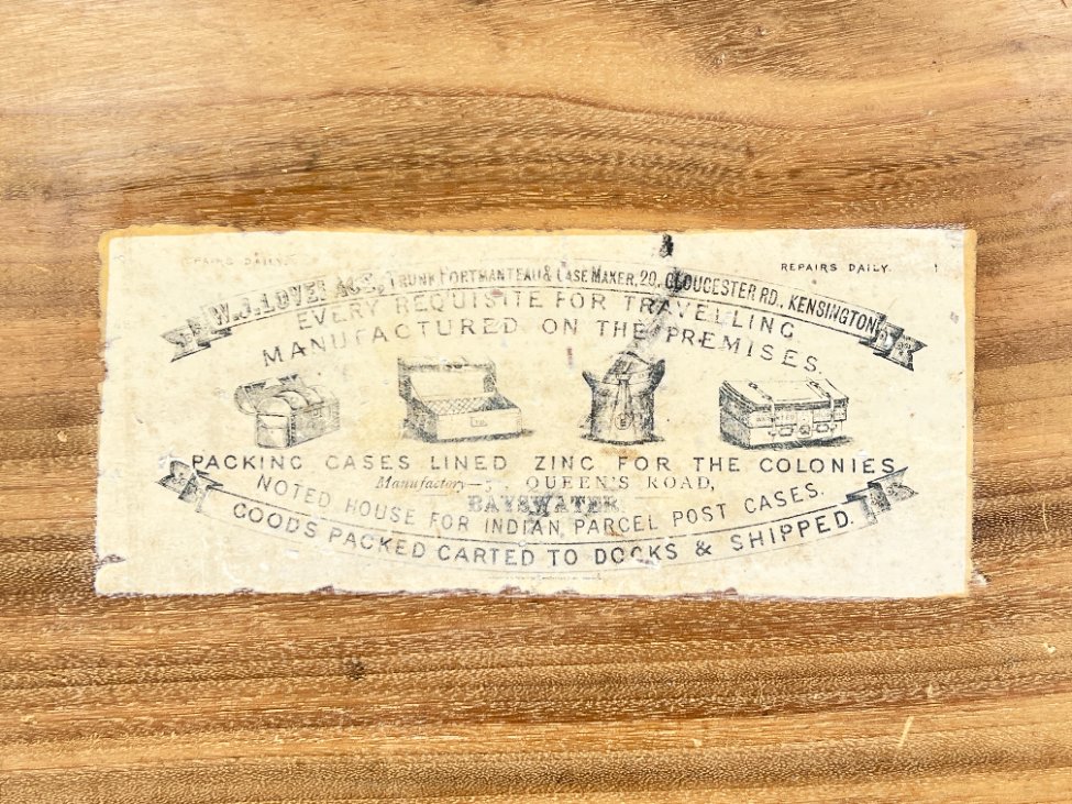 Senovinis W. J. Lovelace raudonmedžio lagaminas – skrynia. Lovelace, William J. 1881 m. įkūrė savo verslą kaip lagaminų ir portfelių gamintojas.