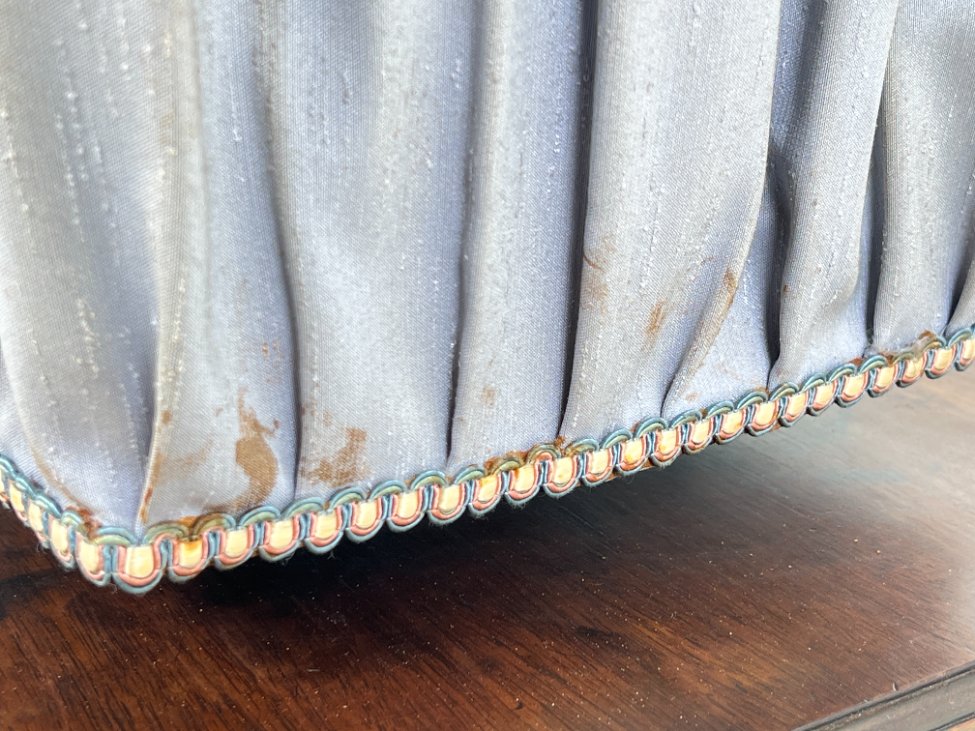 | Papildoma informacija | Matomos naudojimo žymės, per visą paviršių yra pabraižymų, įmušimų, dėmių, medienos įskilimų. Ant tekstilinio maišelio yra dėmių. |