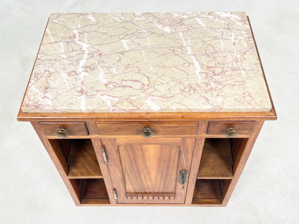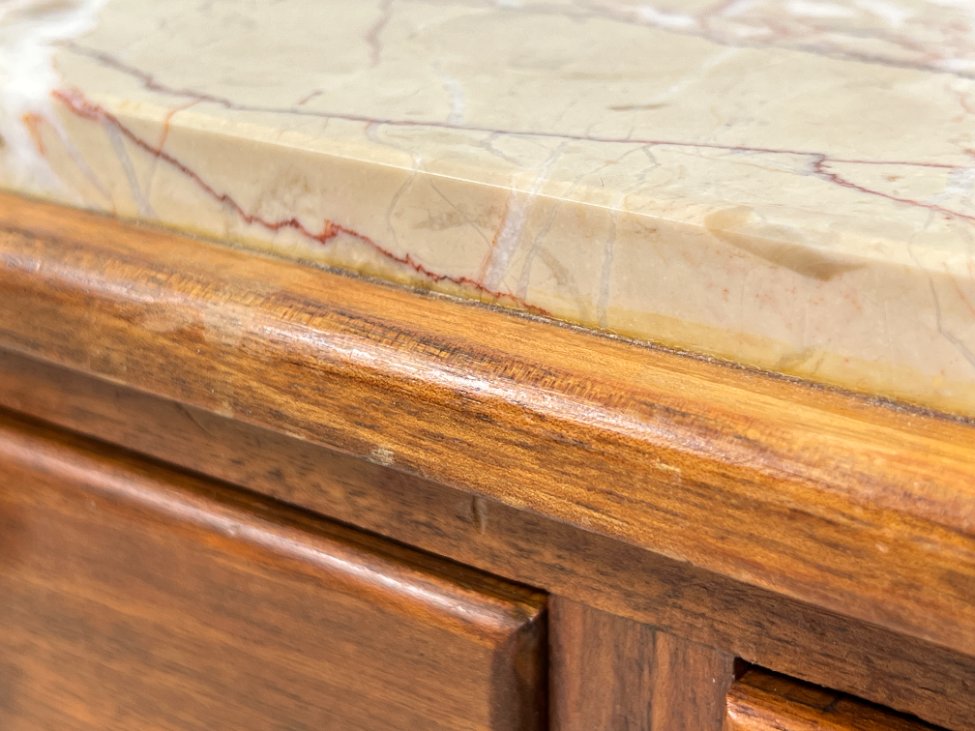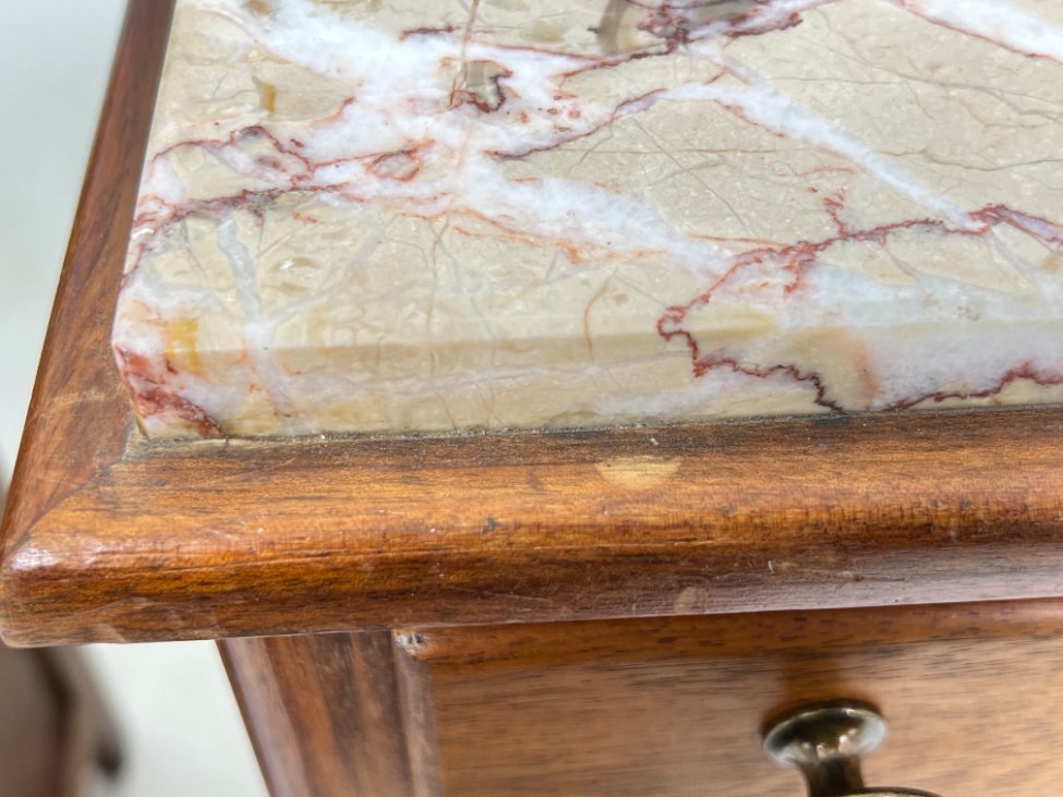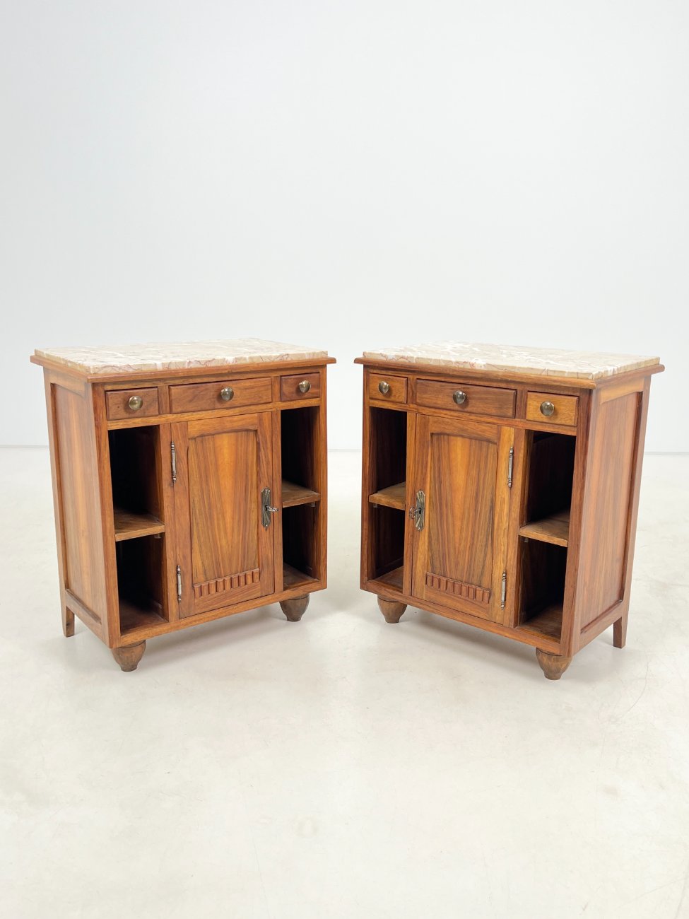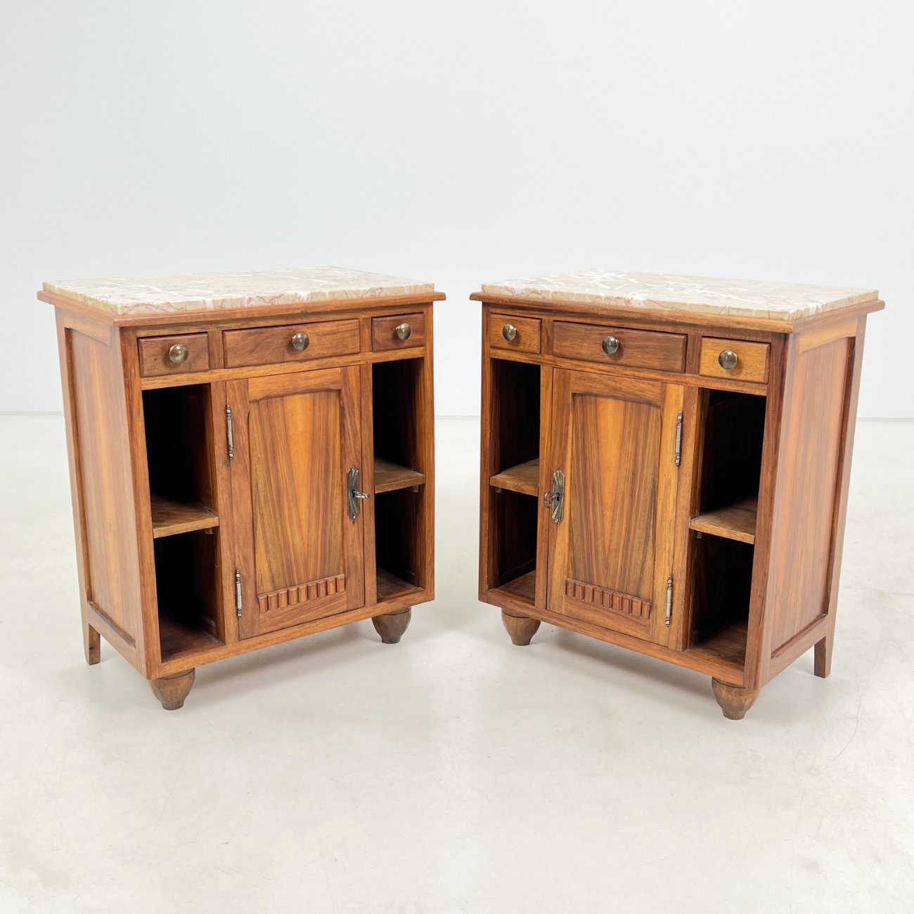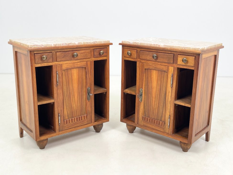 Art Deco medinės spintelės akmeniniais stalviršiais 2 vnt. komplektas.