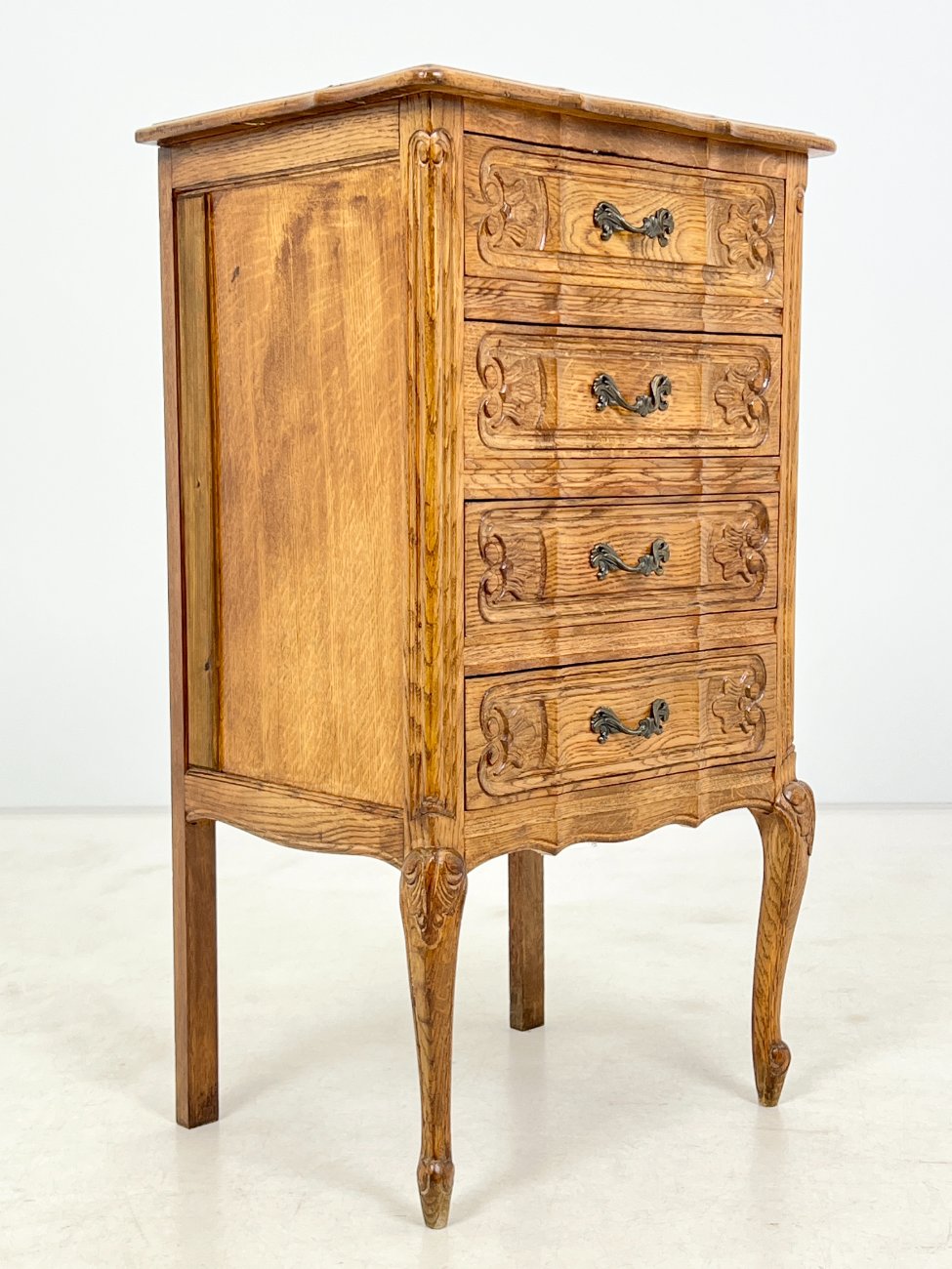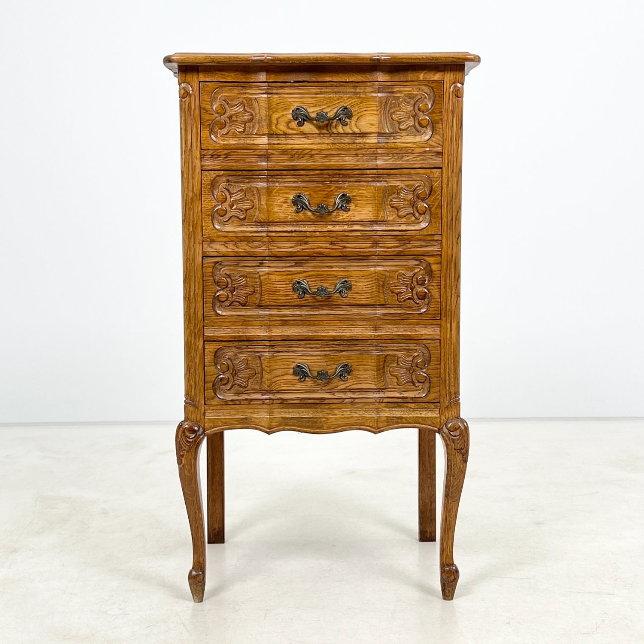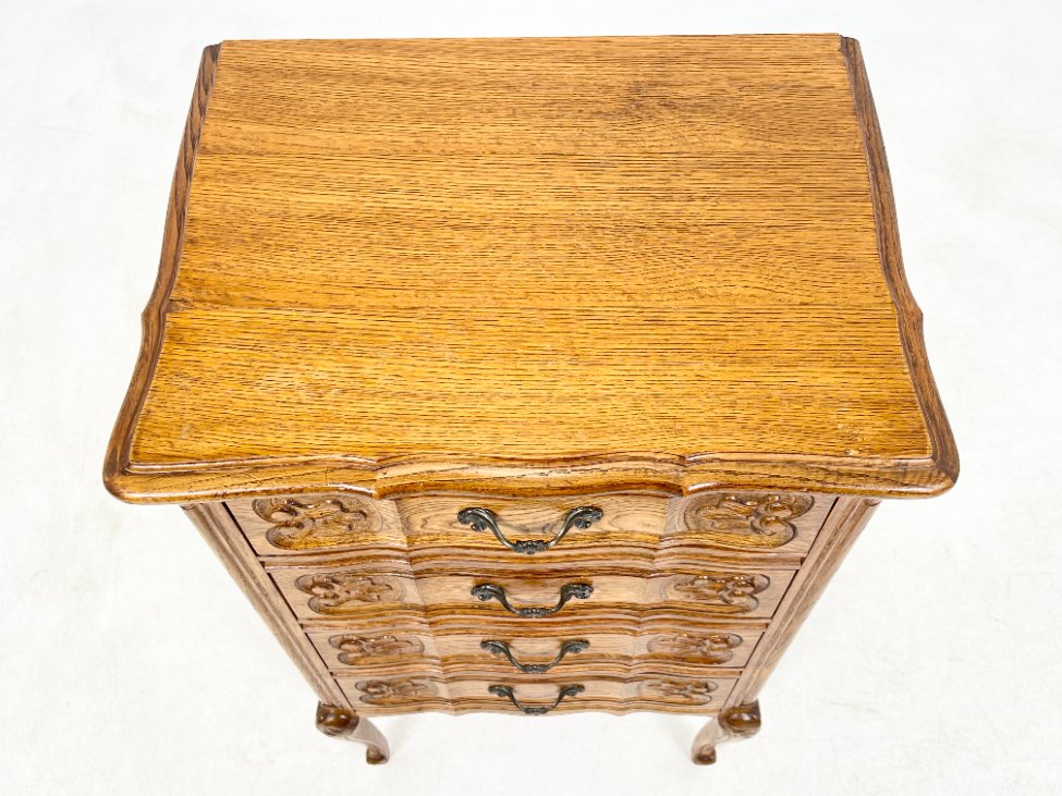 Ąžuolinė keturių stalčių spintelė.