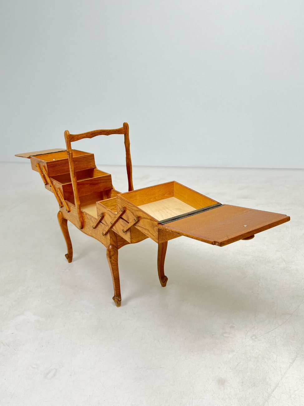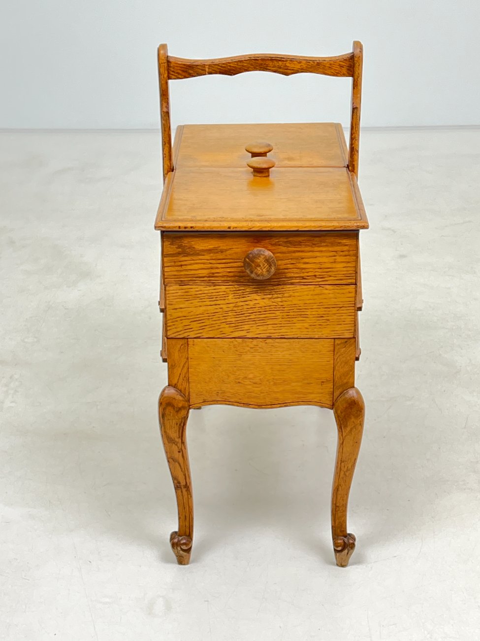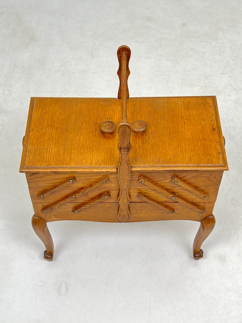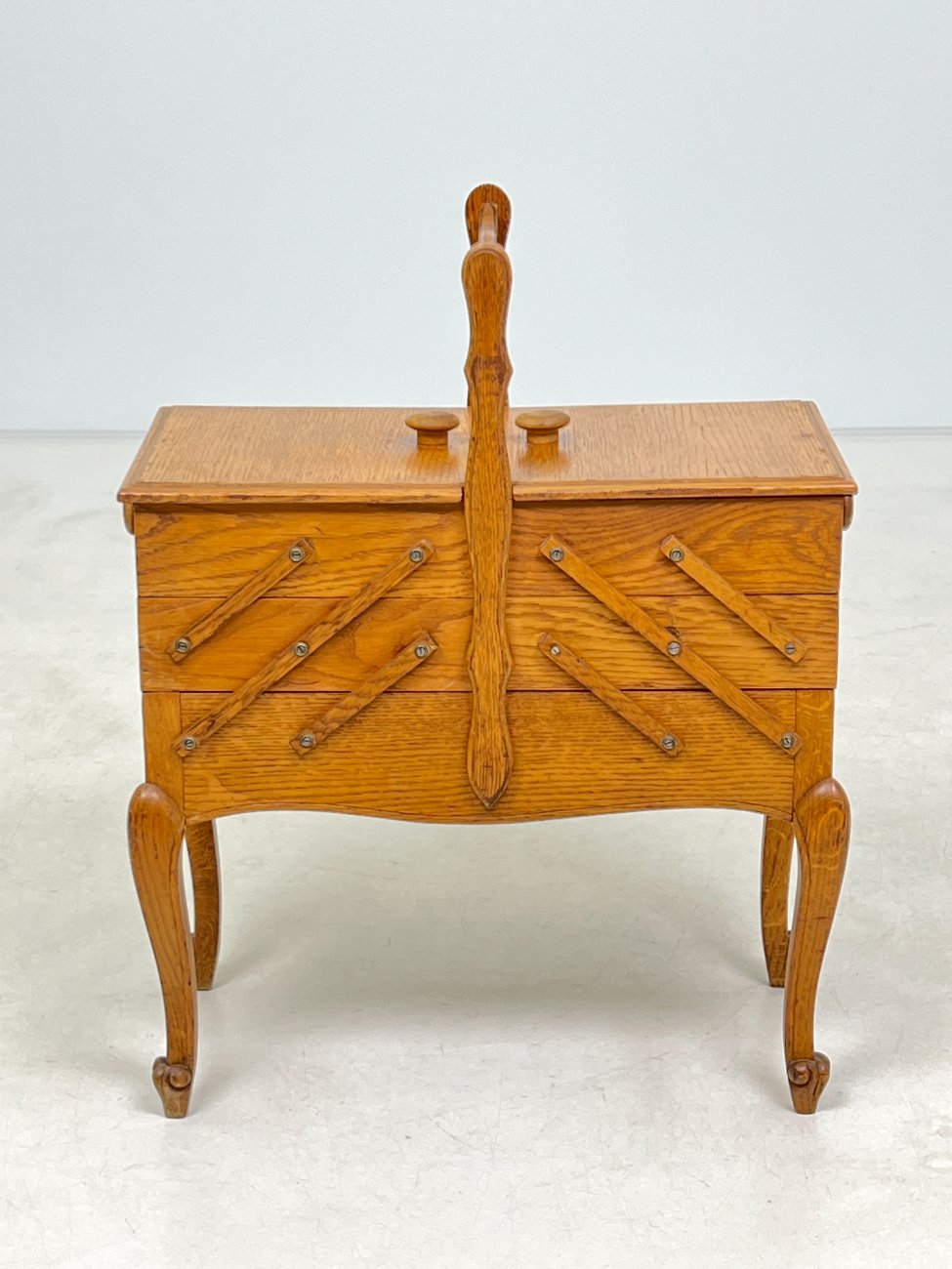 Ąžuolinė siuvinėjimo reikmenų spintelė.