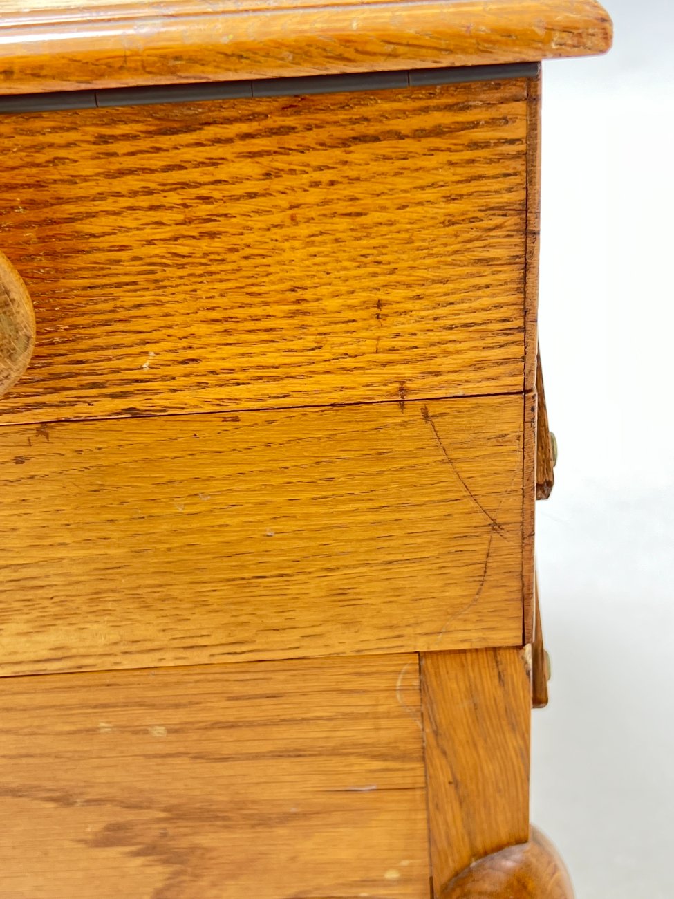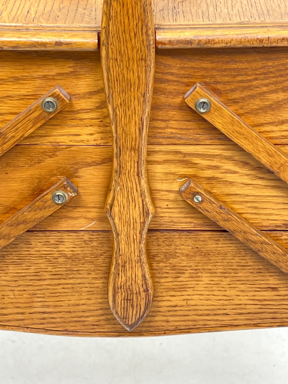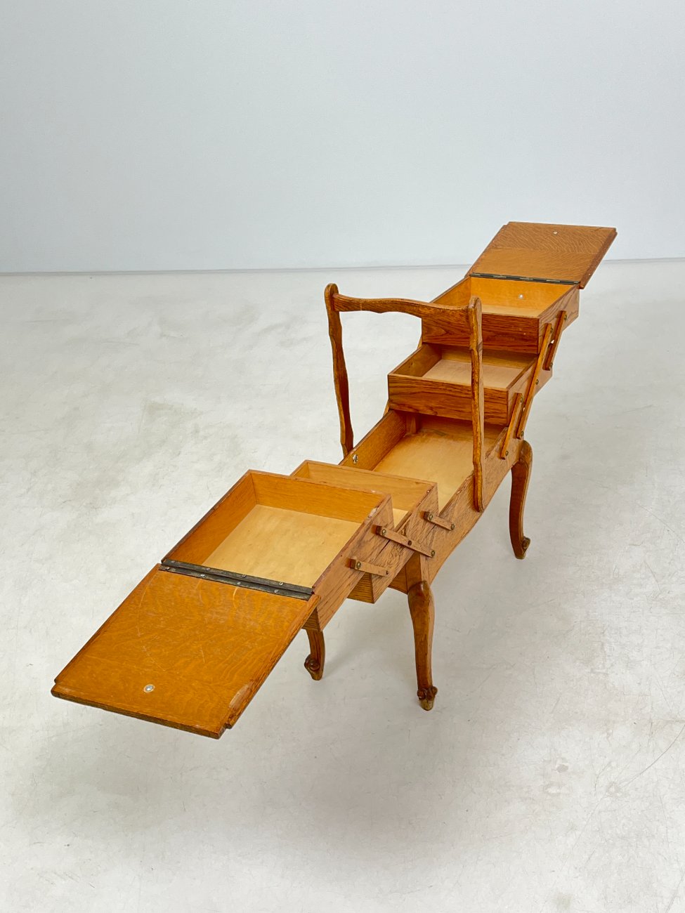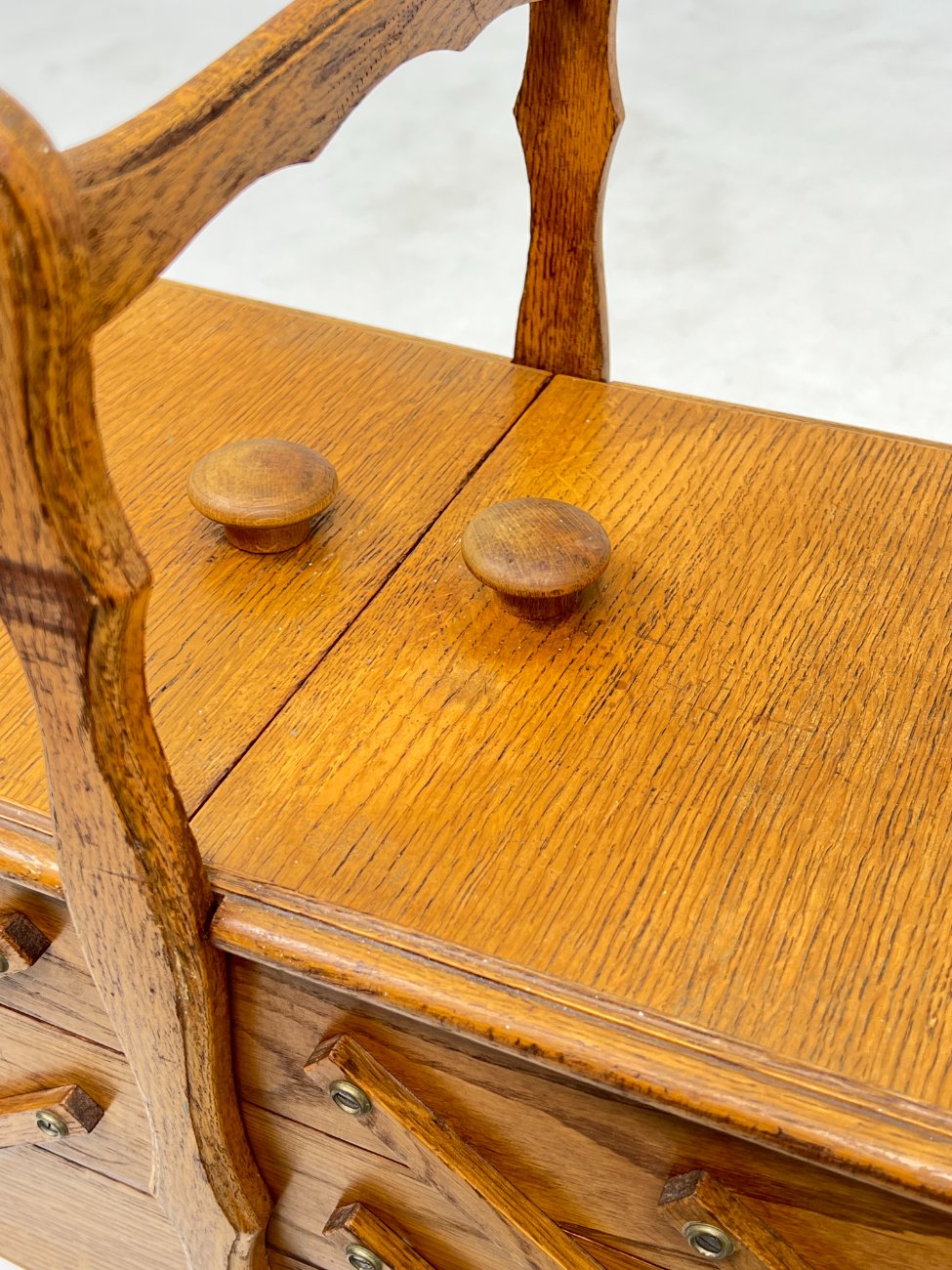 Ąžuolinė siuvinėjimo reikmenų spintelė.