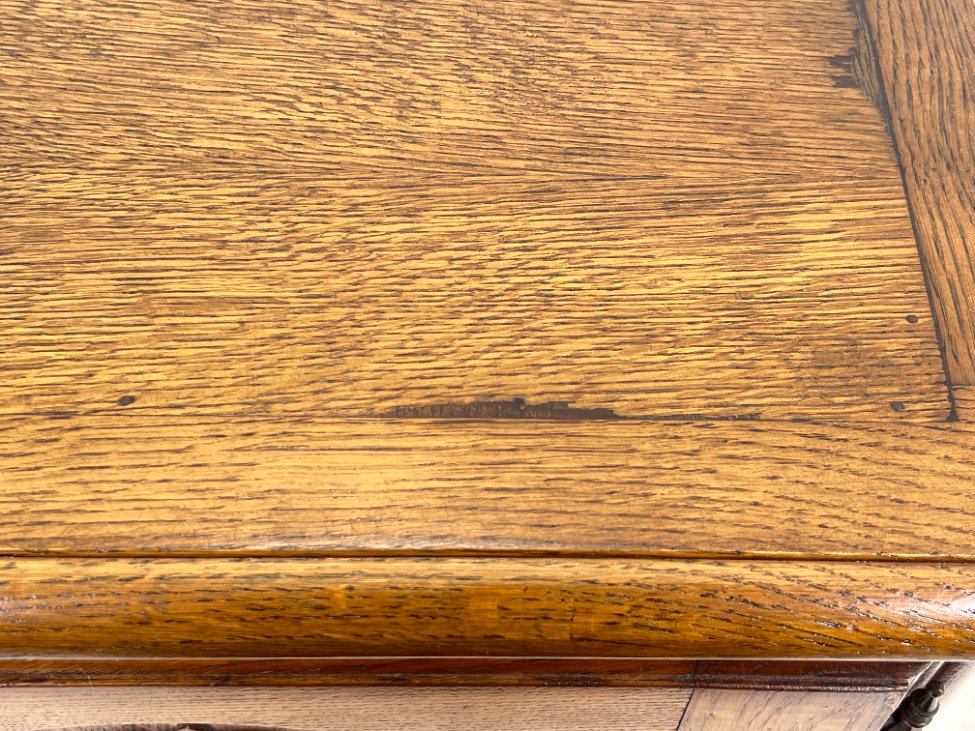 | Papildoma informacija | Matomos naudojimo žymės, yra pabraižymų, dėmių. Kairiajame šone yra medienos įskilimas. |