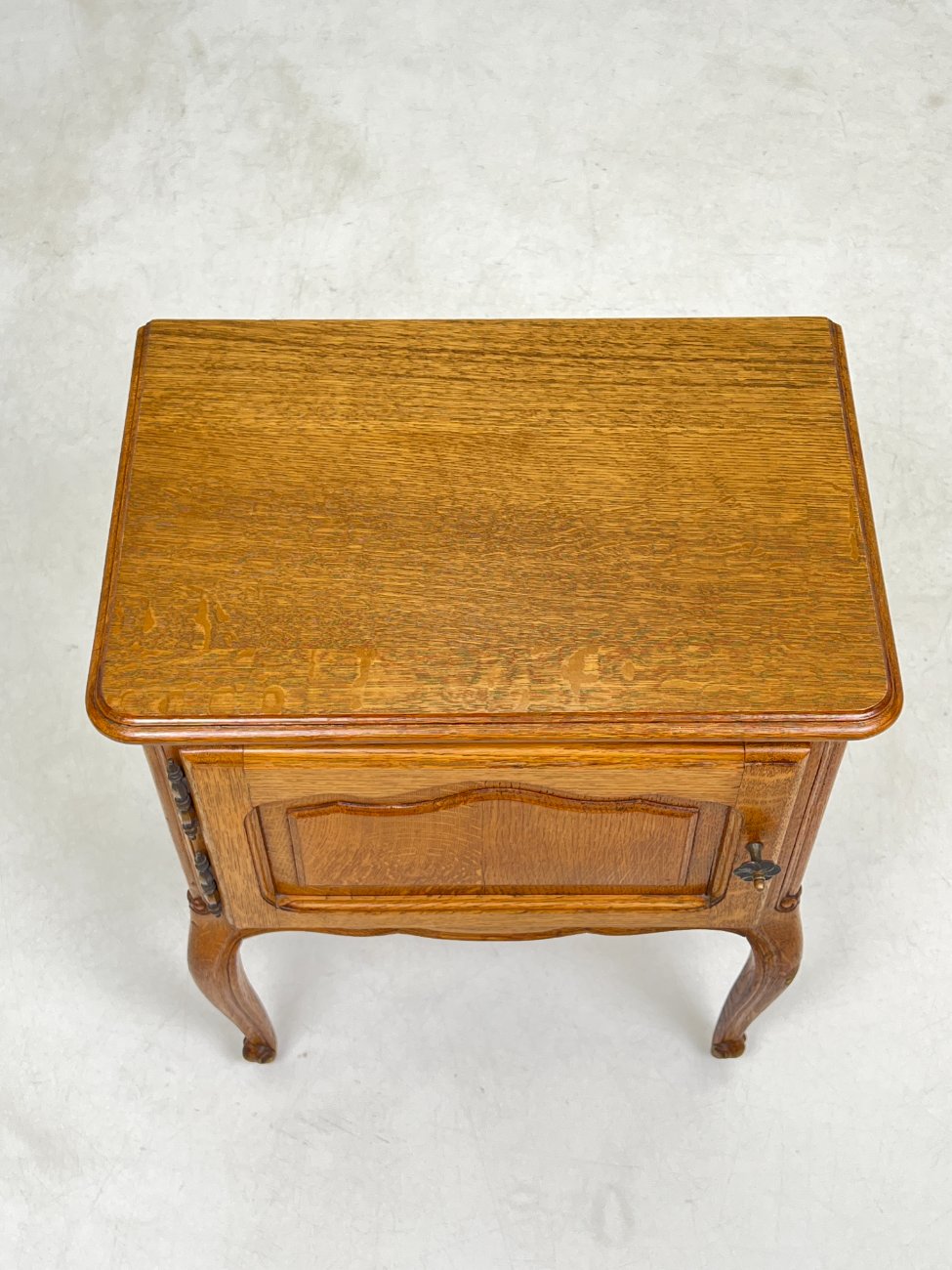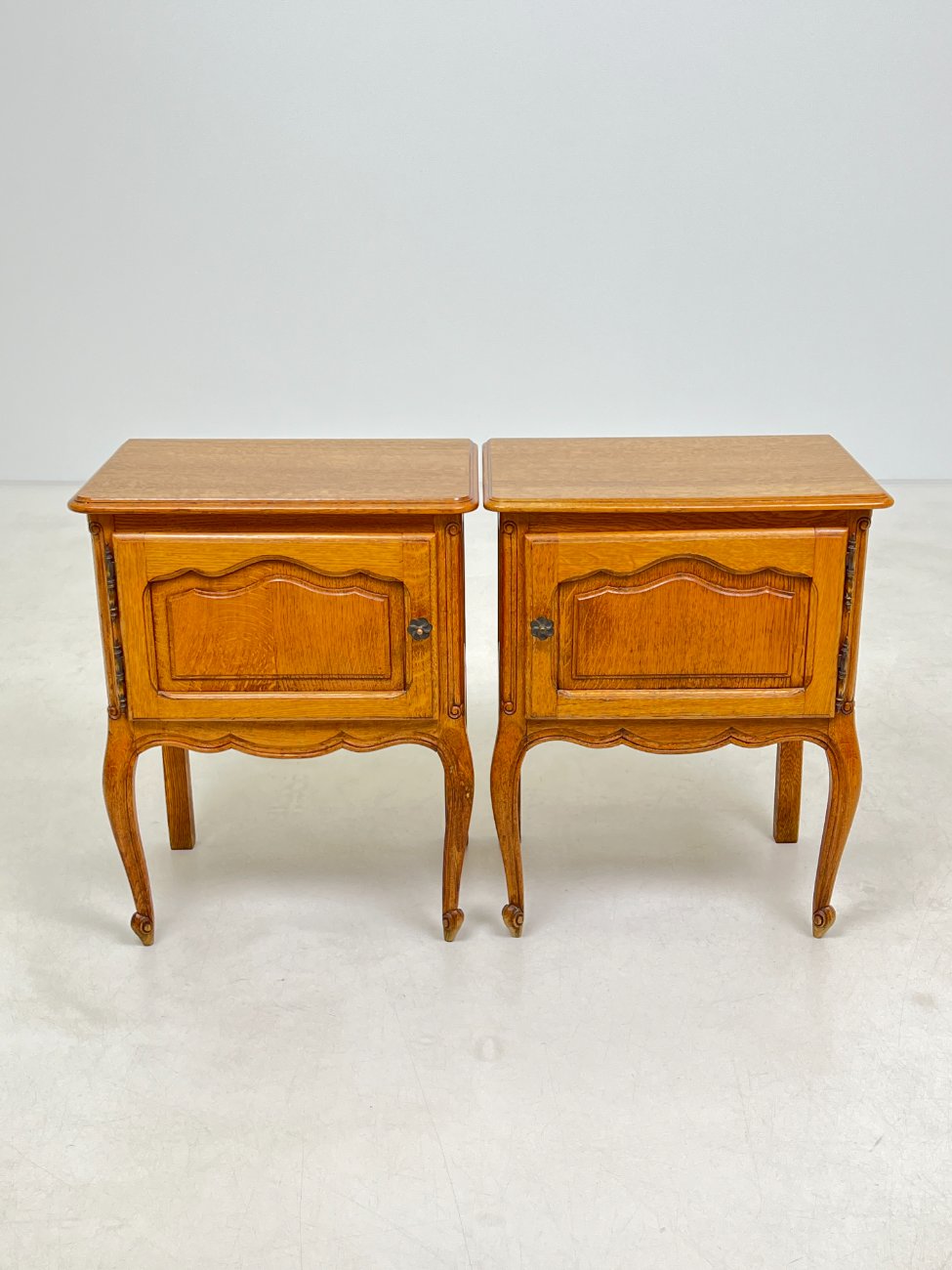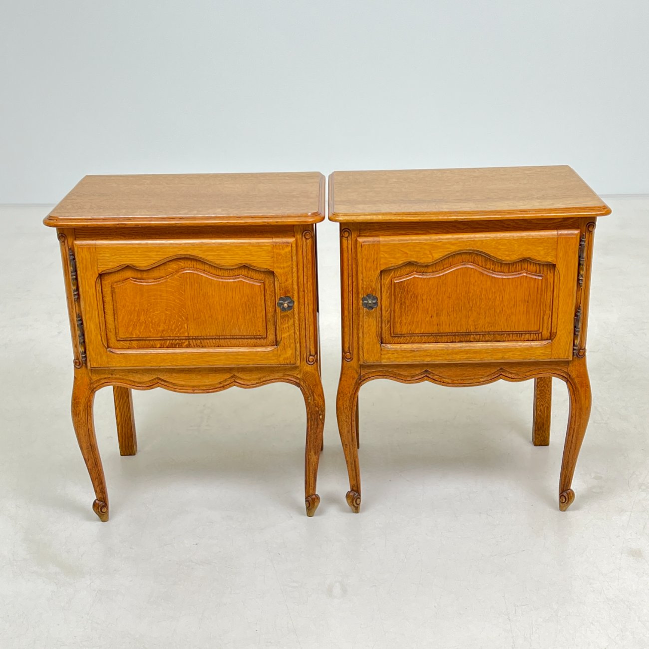 | Papildoma informacija | Abiejų spintelių priekinių kojų apačių pakitusi spalva. Ant vienos spintelės priekinės dešinės kojos yra dėmių. |