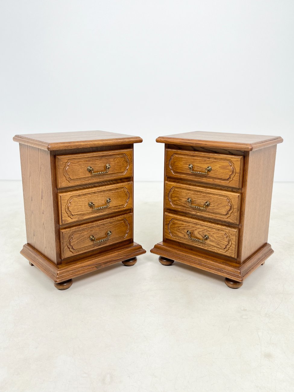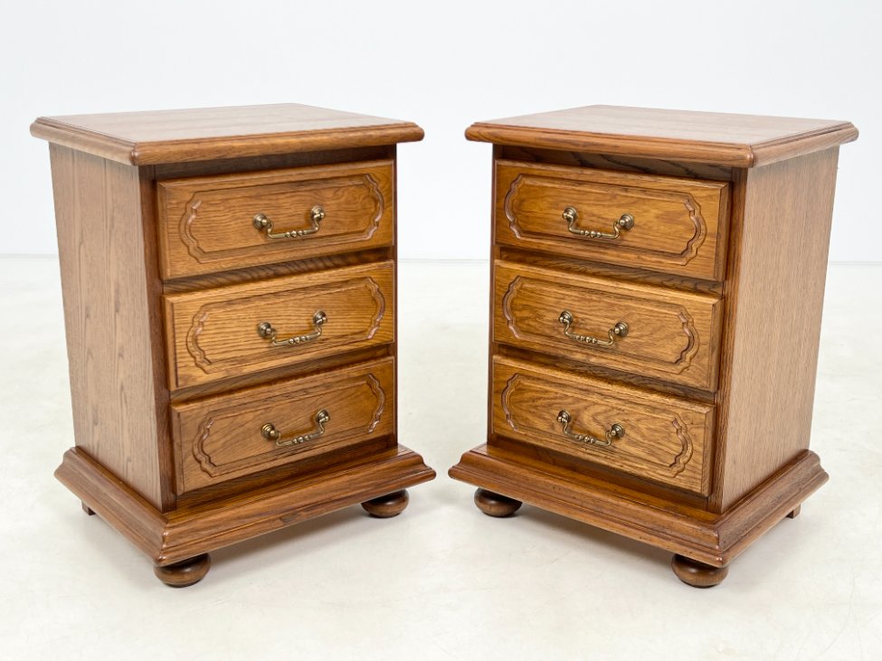 Ąžuolinės trijų stalčių spintelės 2 vnt. komplektas.