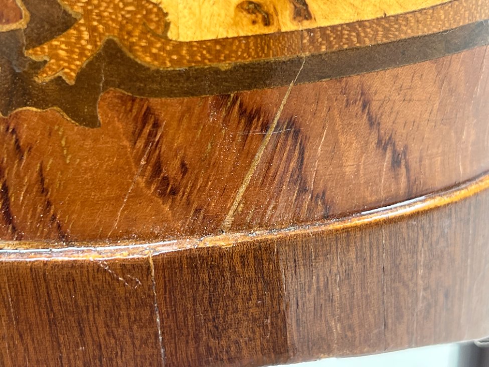 | Papildoma informacija | Yra paviršiaus pabraižymų ir įmušimų. Nugarinėje dalyje įskilusi faneruotė. |