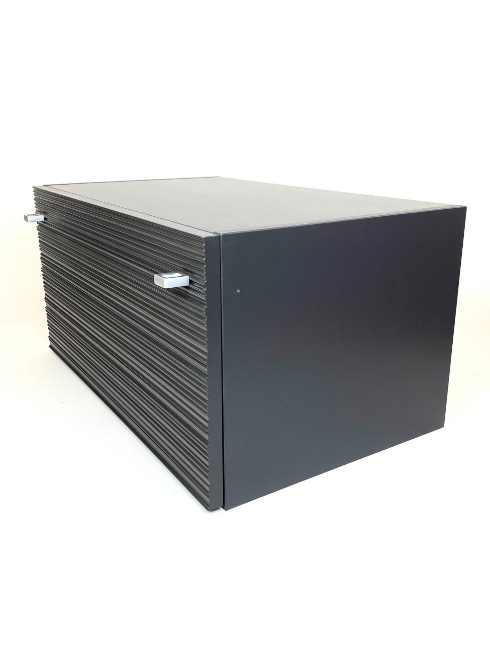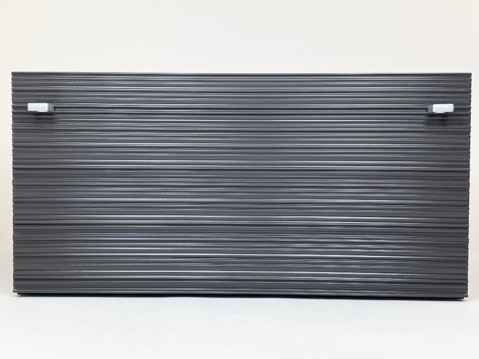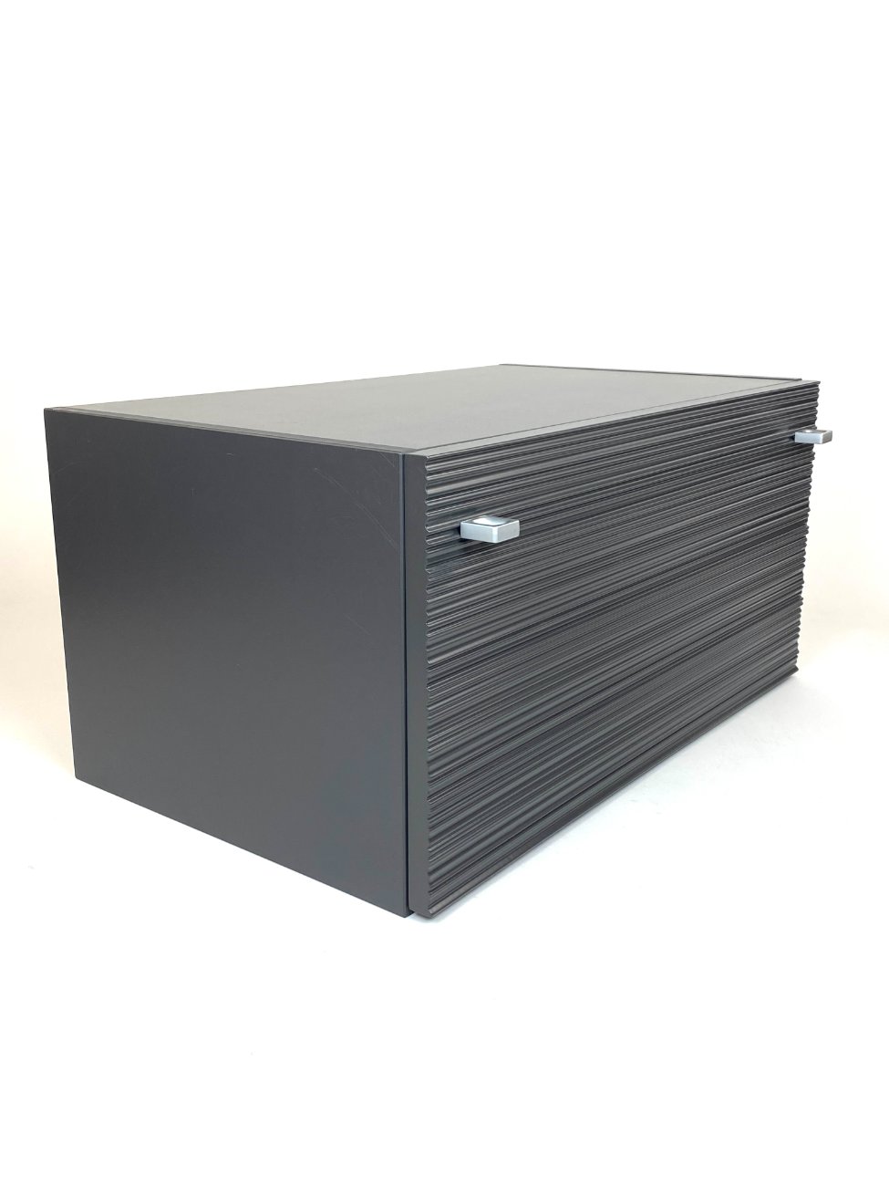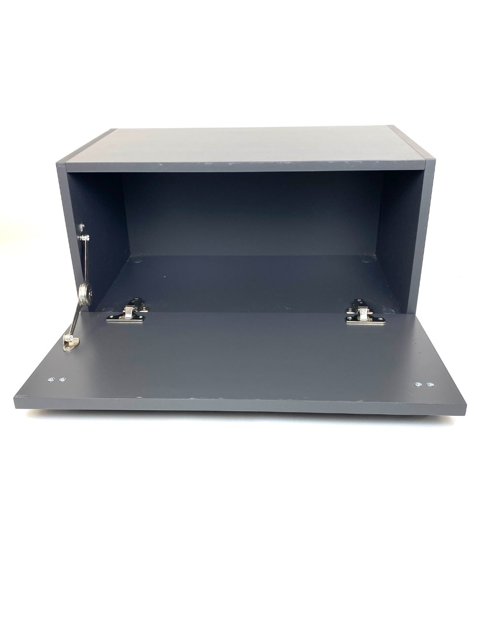 Modernaus stiliaus pakabinama spintelė atveriamomis durimis.