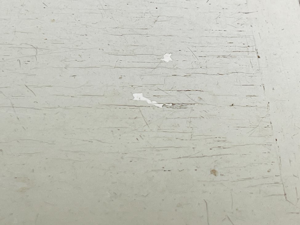 | Papildoma informacija | Ant abiejų spintelių yra dėmių, pabraižymų. Matomas stalviršių faneruotės smulkus patrūkinėjimas. |