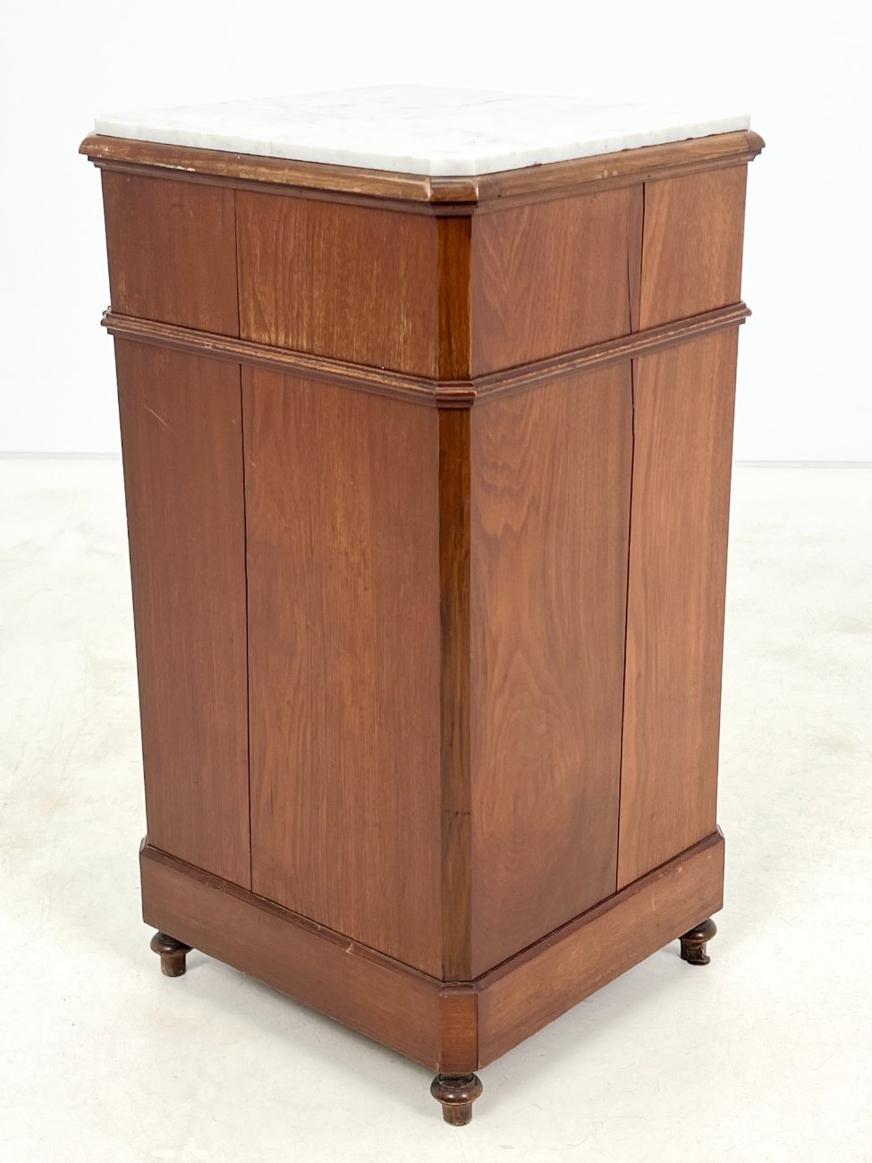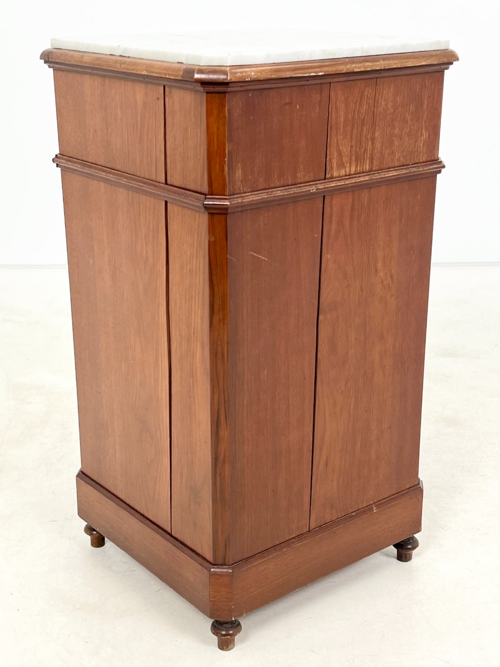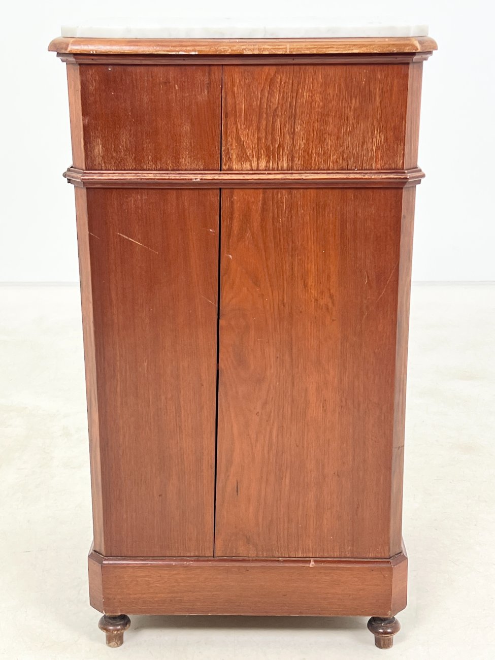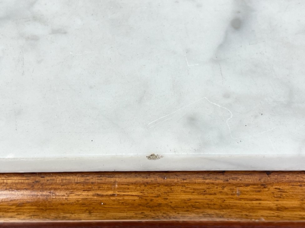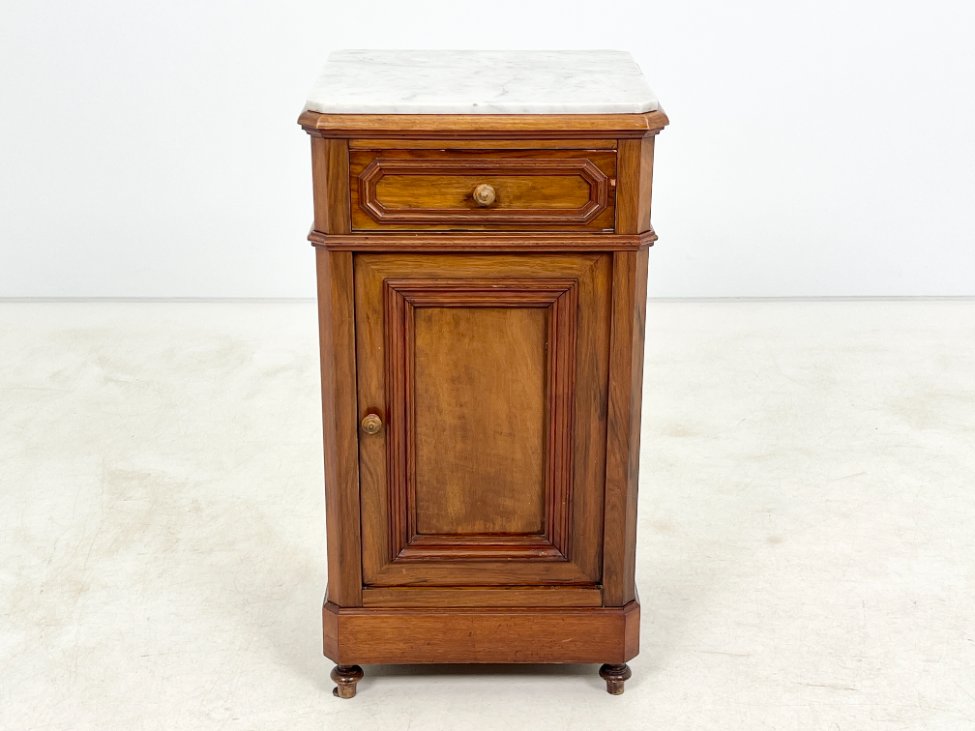 Raudonmedžio spintelė marmuriniu stalviršiumi.