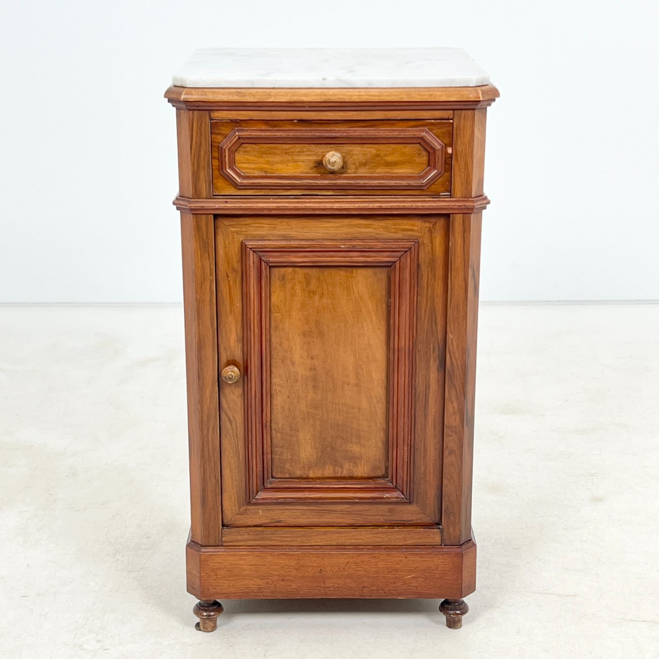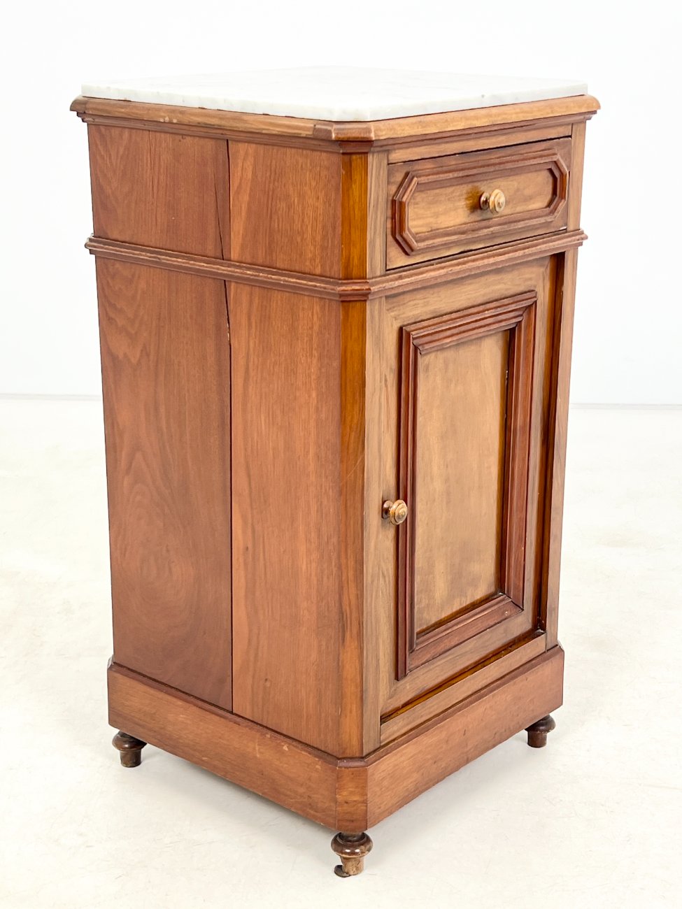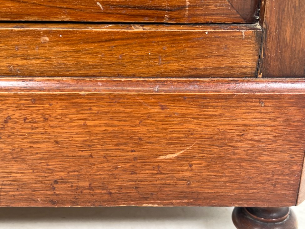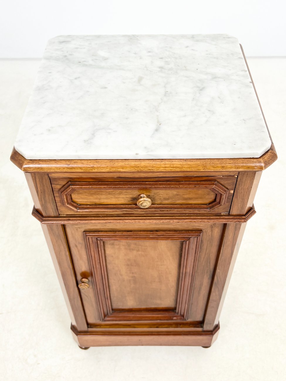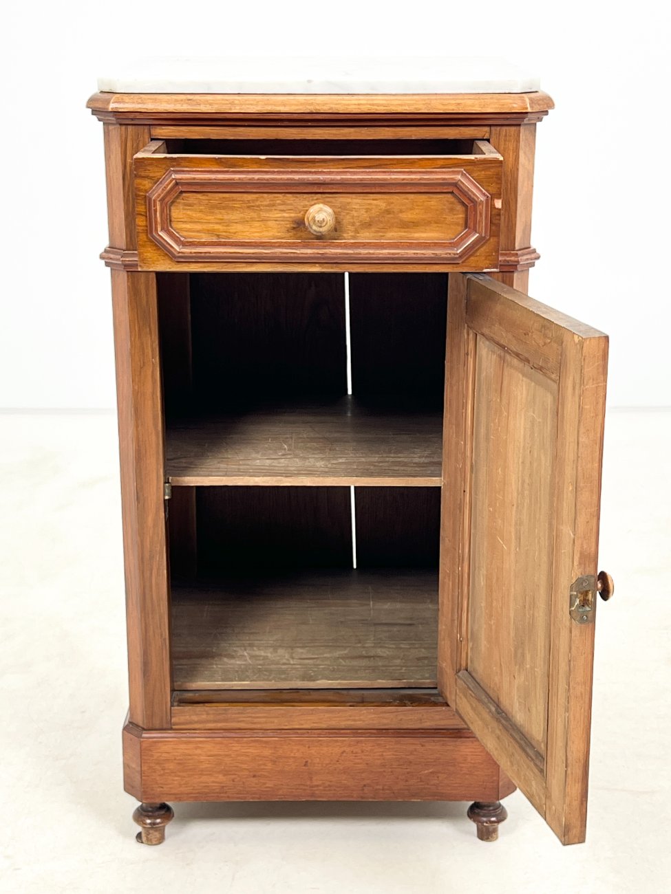 Raudonmedžio spintelė marmuriniu stalviršiumi.