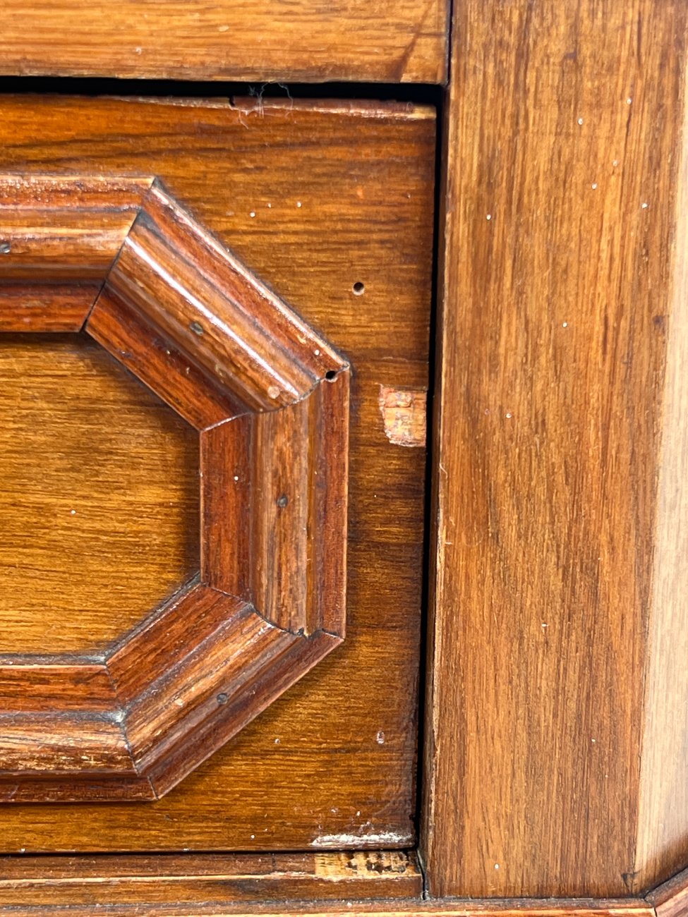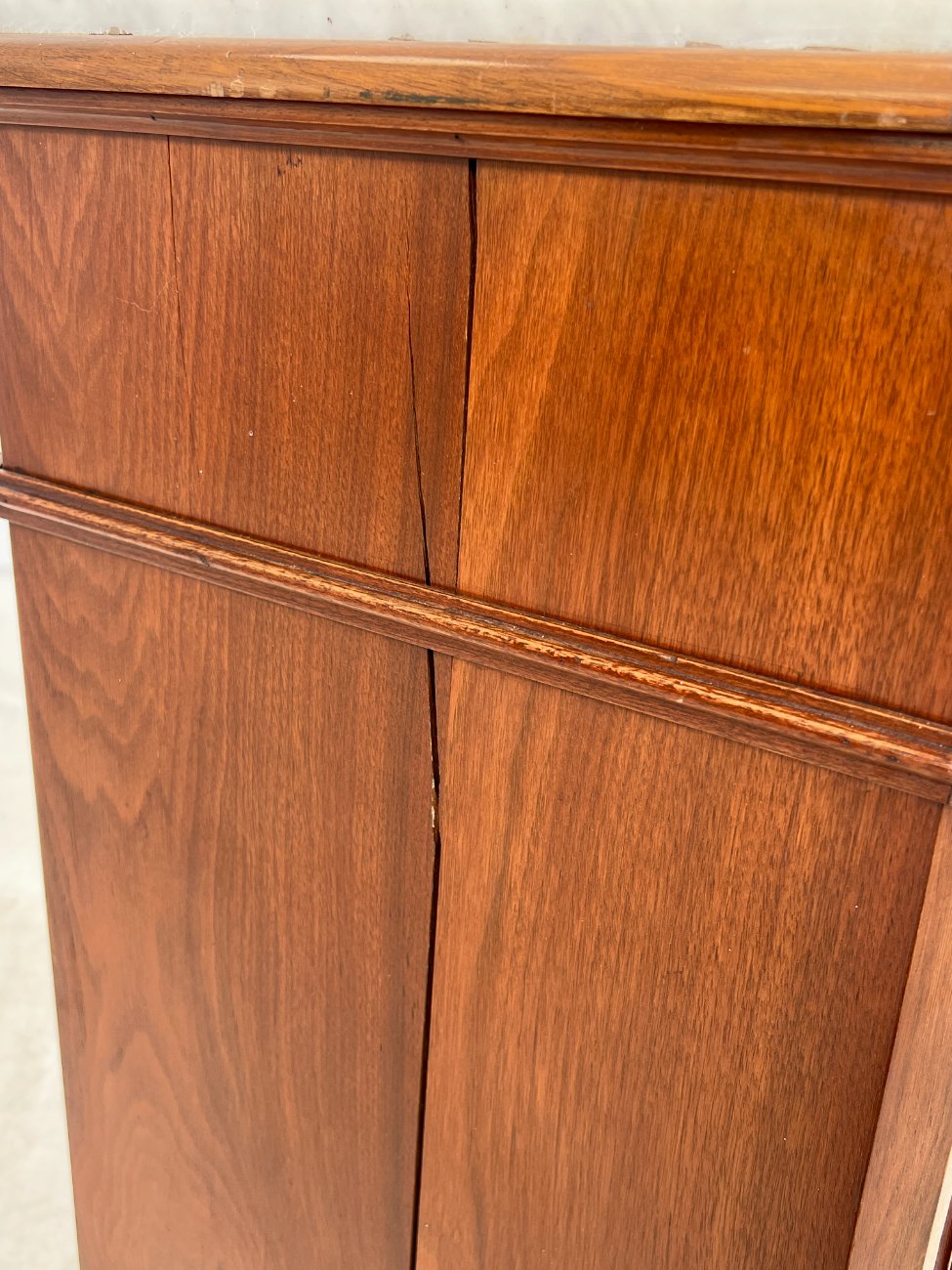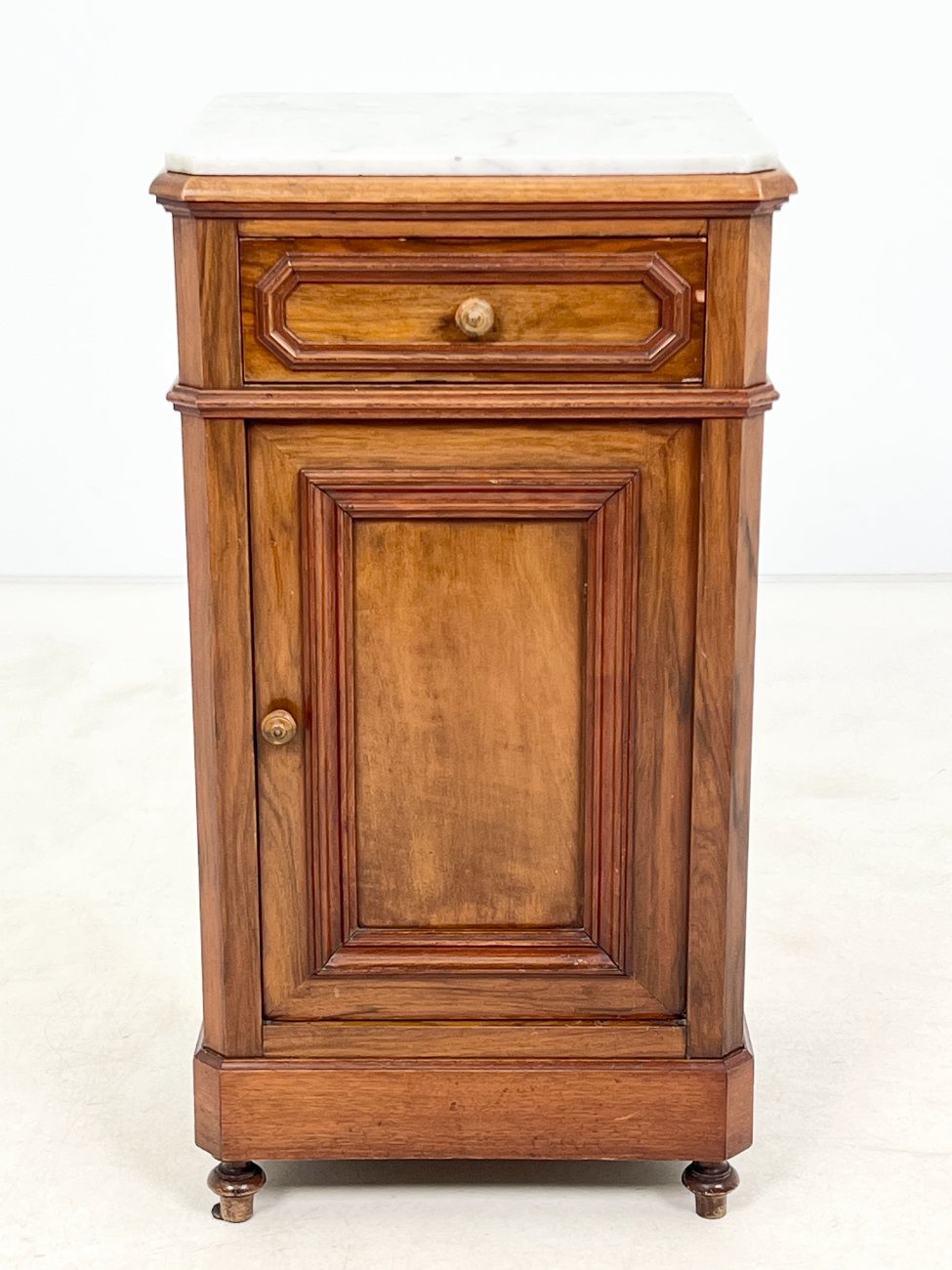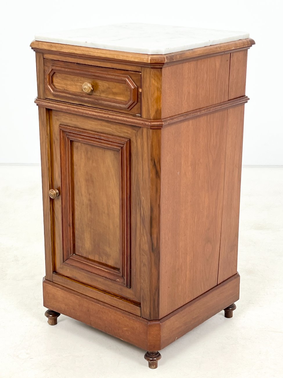 Raudonmedžio spintelė marmuriniu stalviršiumi.