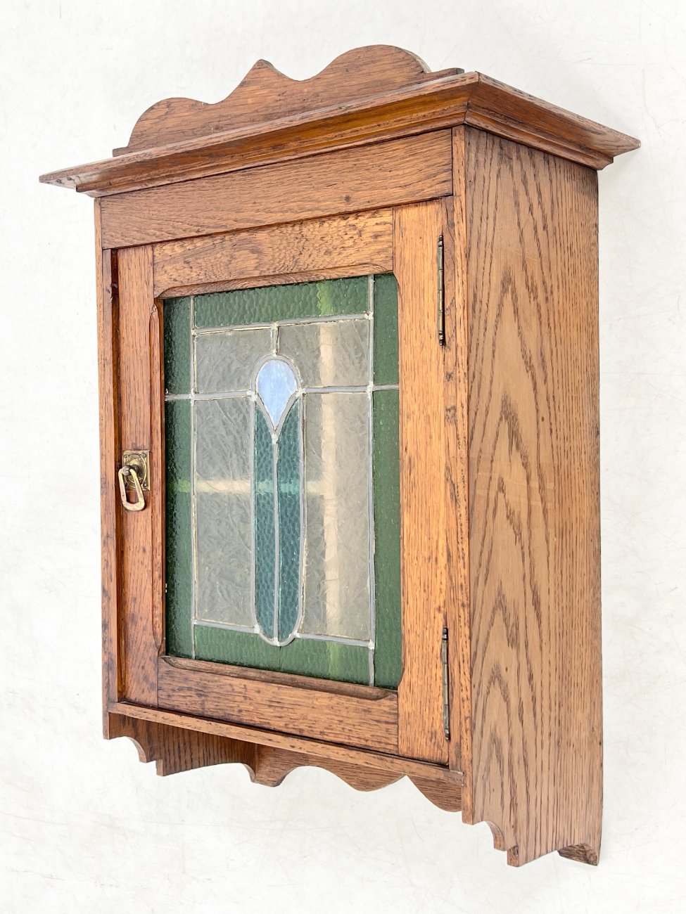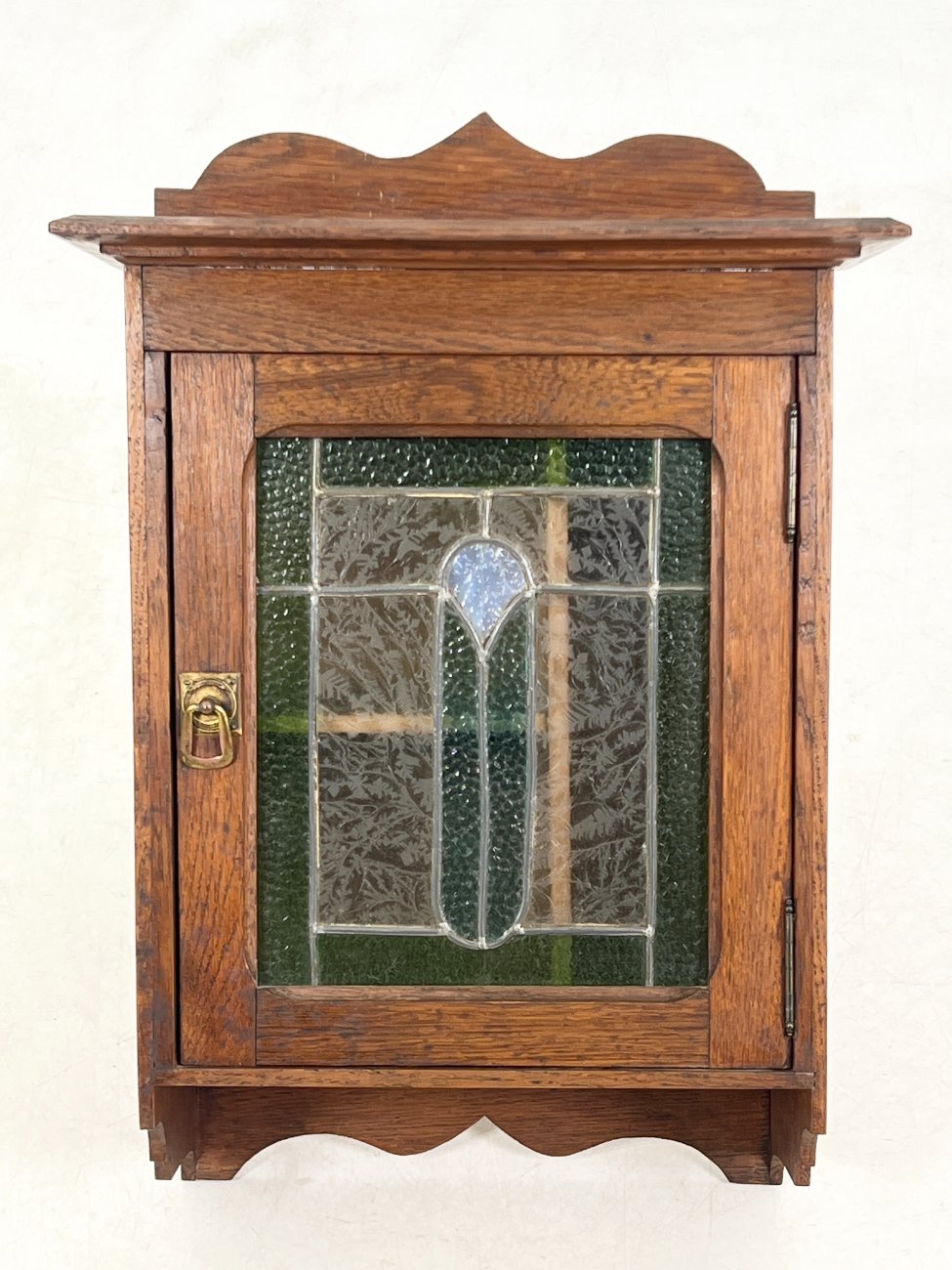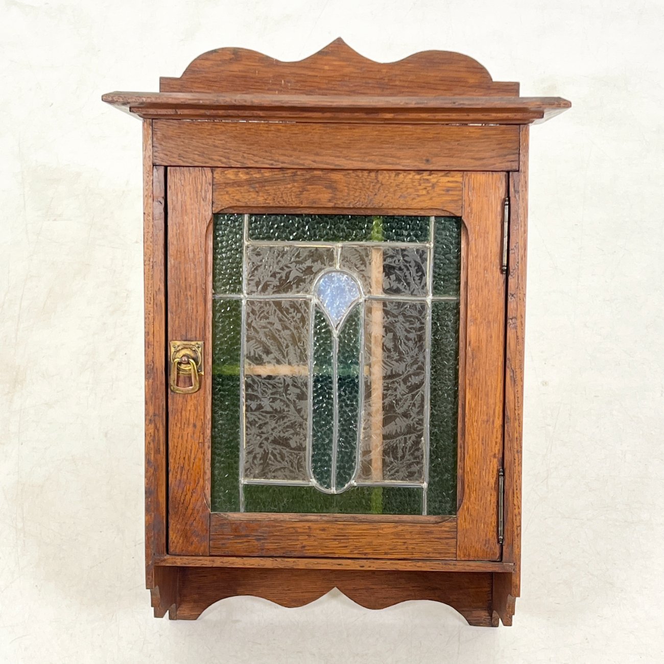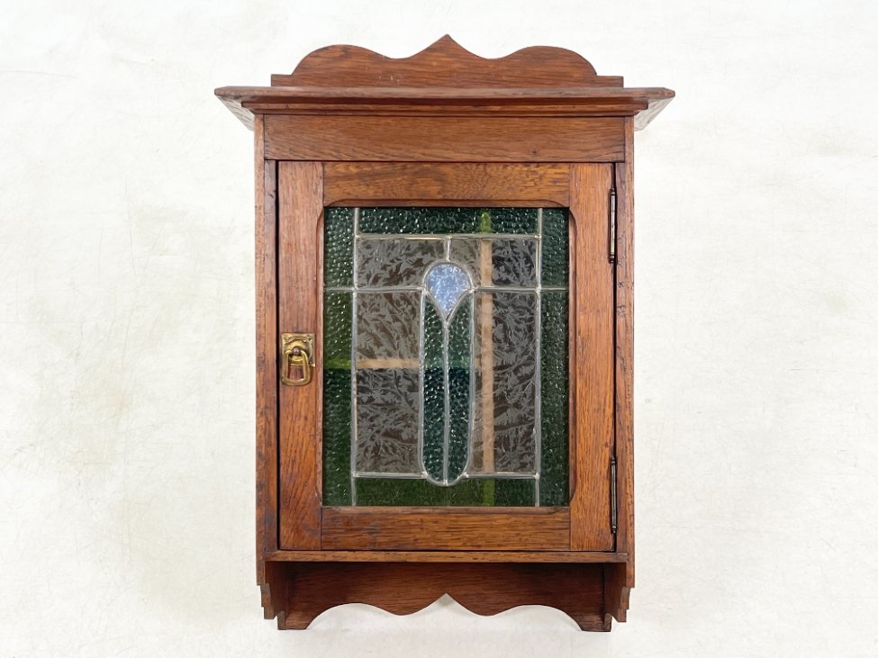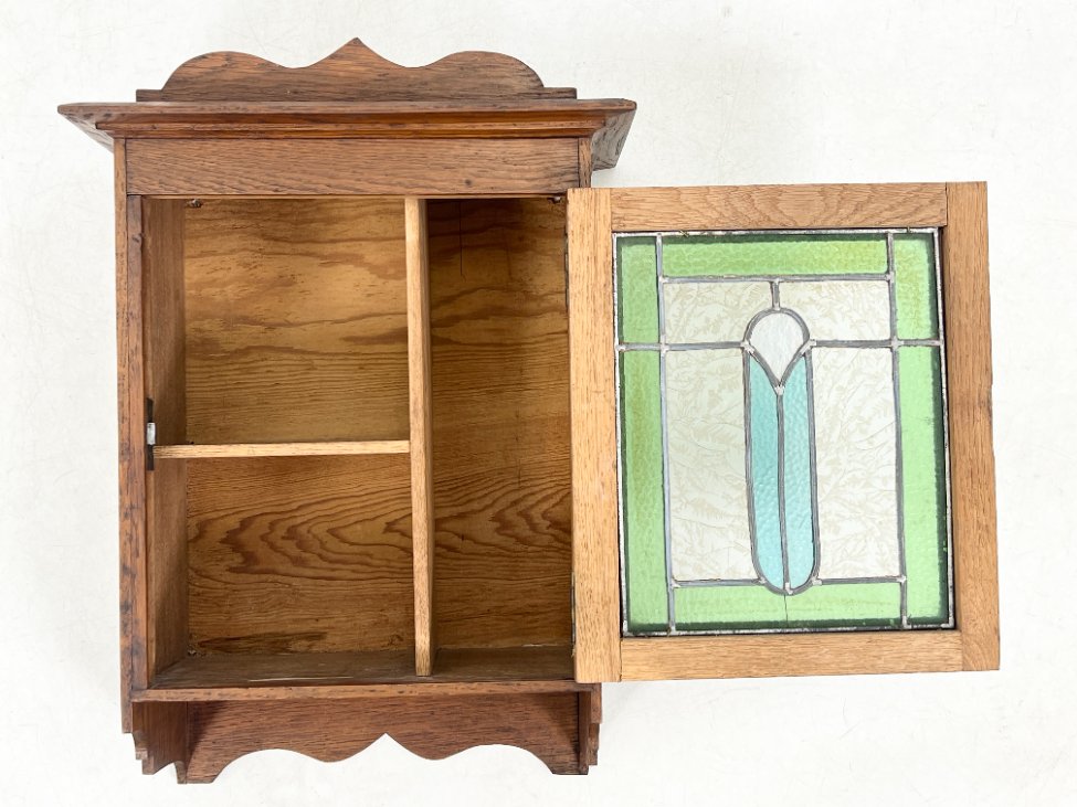 Senovinė ąžuolinė pakabinama spintelė su vitražu 20,5×40,5×58 cm