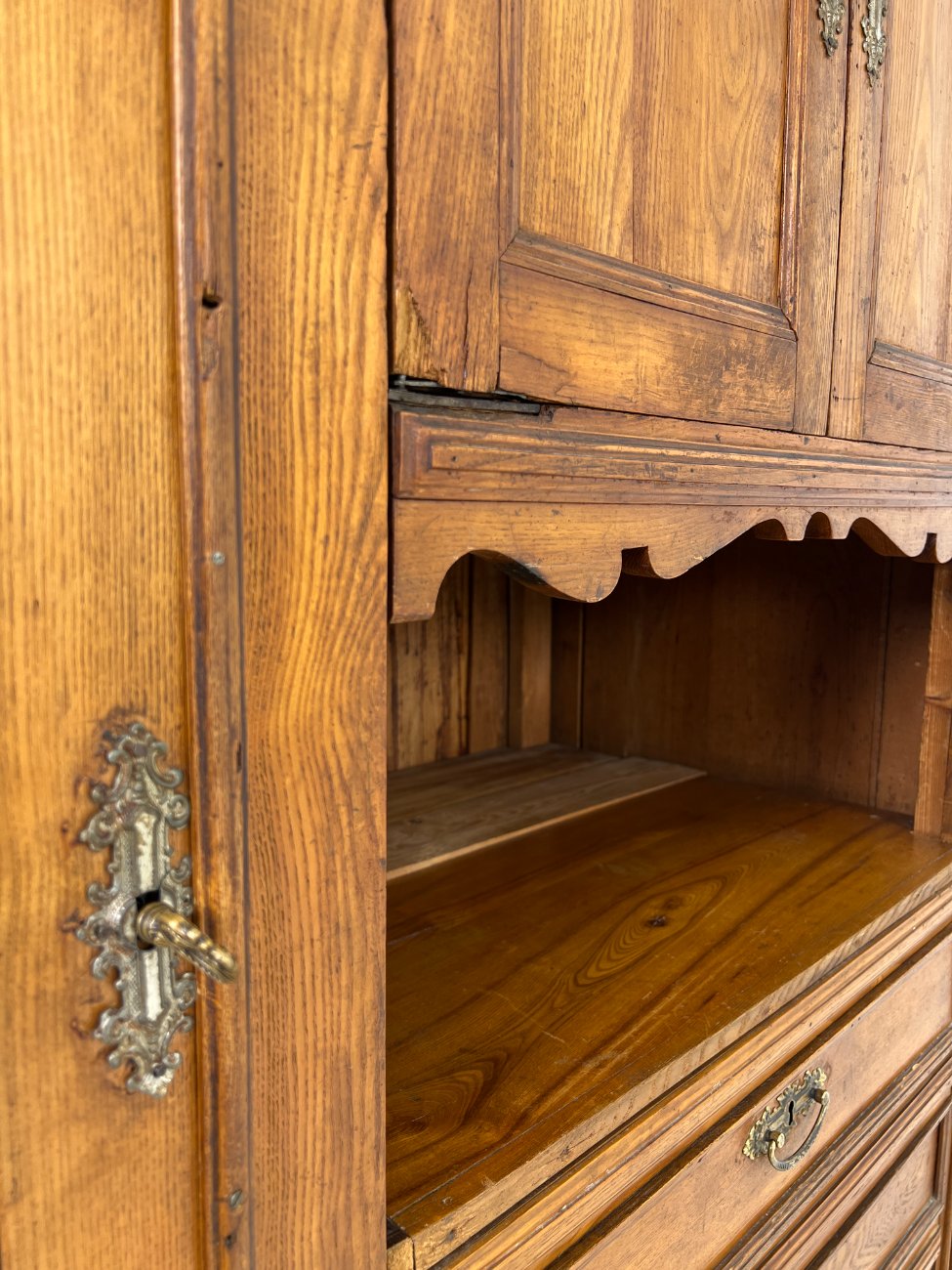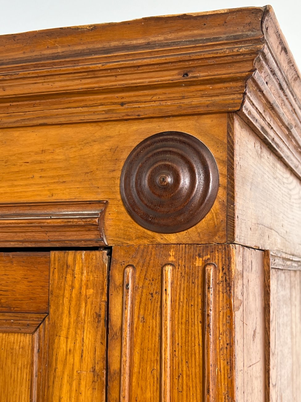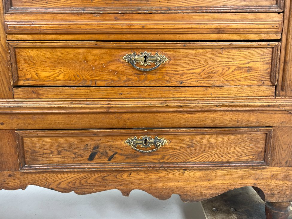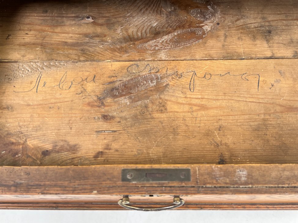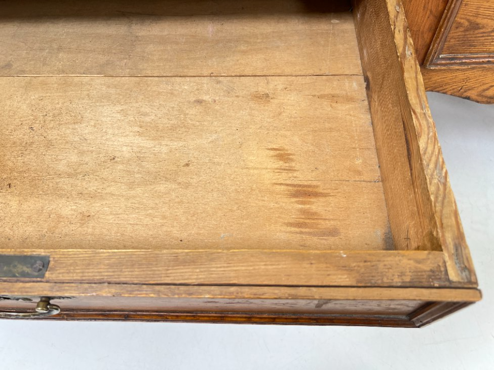 | Papildoma informacija | tarp lentynos ir spintos stalčių neorginali lenta , ant veidrodžio yra senėjimo žymių bei pabraižymų, stalčiuose yra dėmių, dešiniame kampe ties briauna-įmušimas, ant kairių durų trūksta medienos |