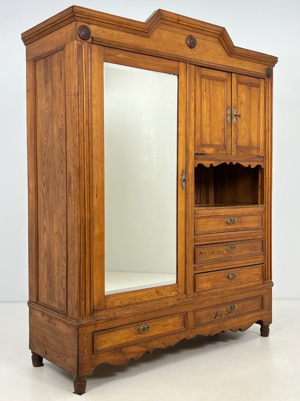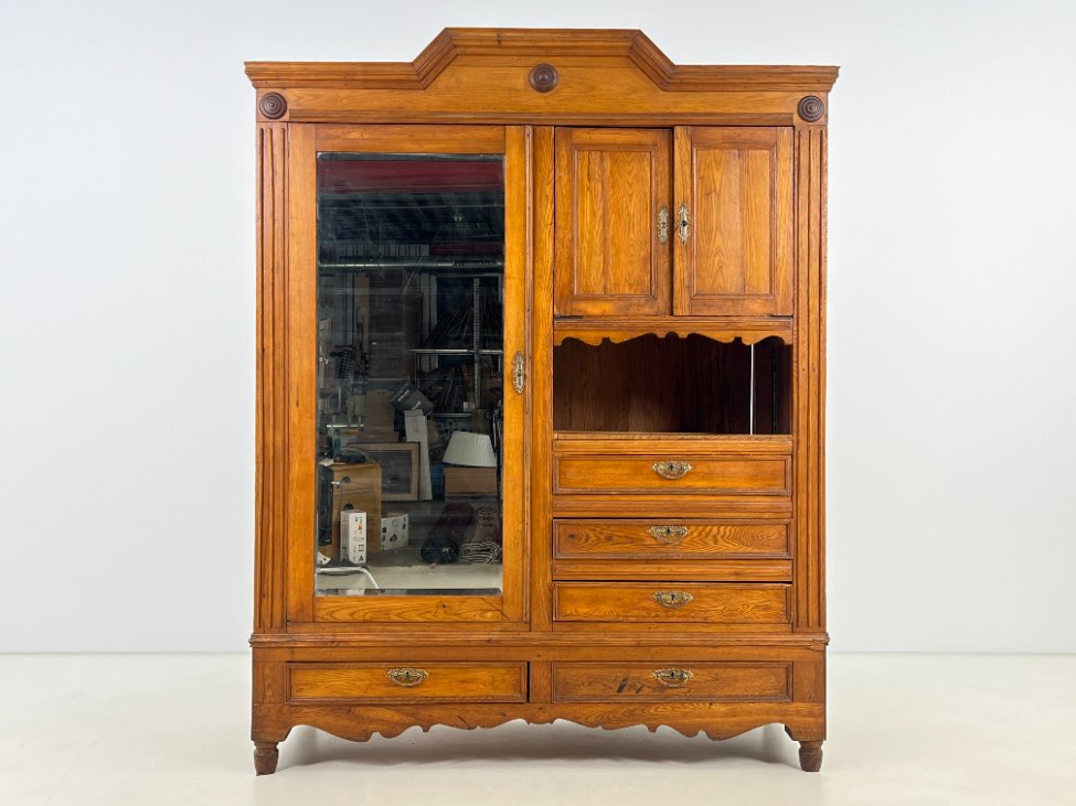 Ąžuolinė spinta su veidrodžiu ir stalčiais