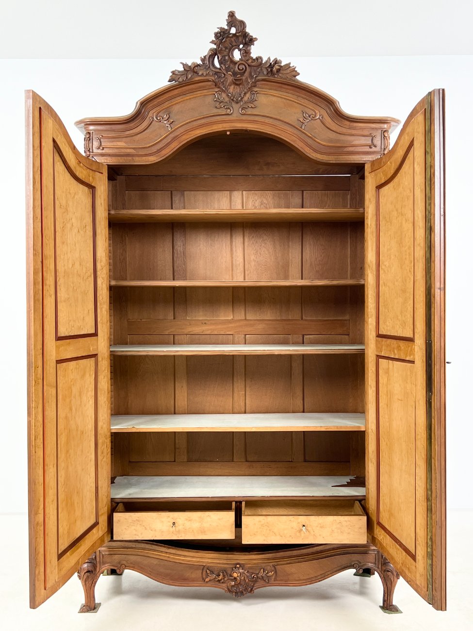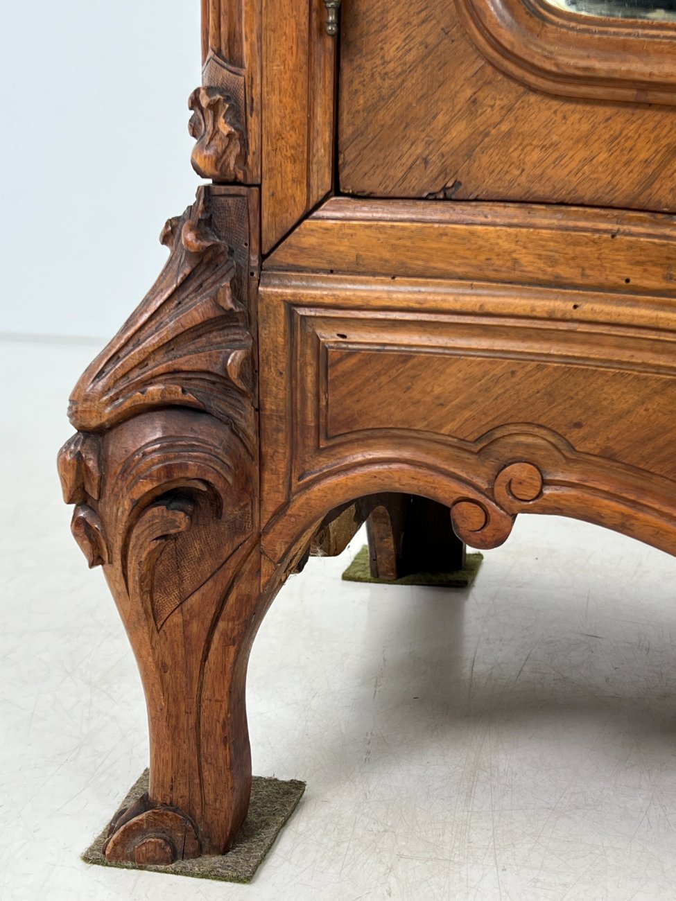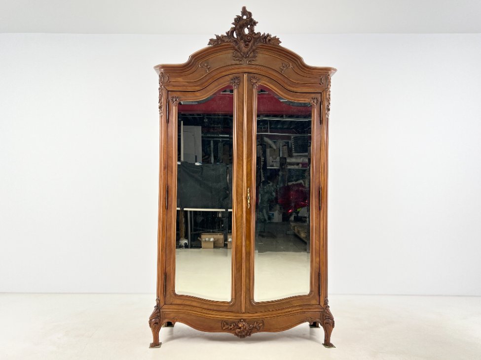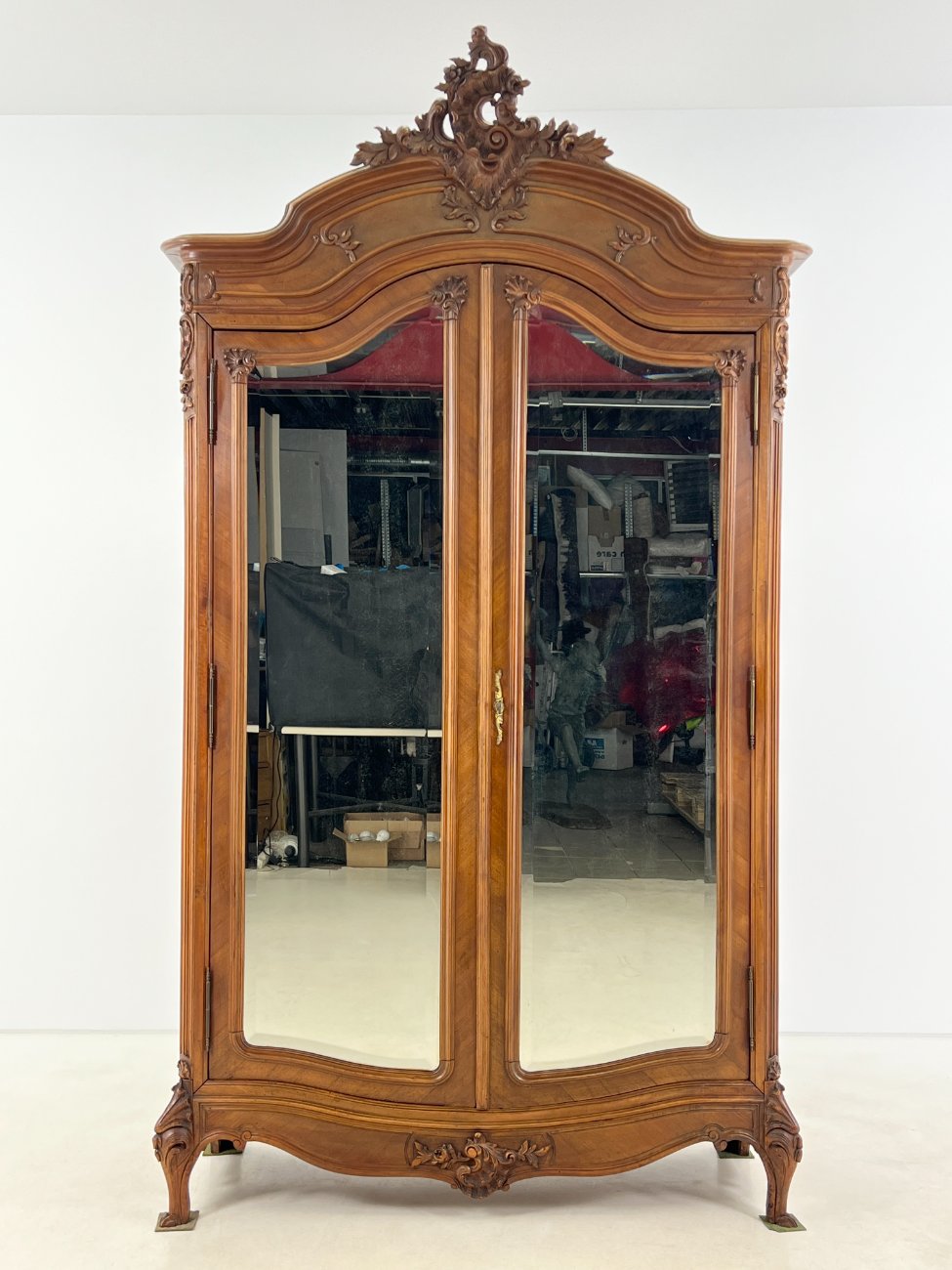 Barokinio stiliaus riešutmedžio dviejų durų spinta su veidrodžiais.