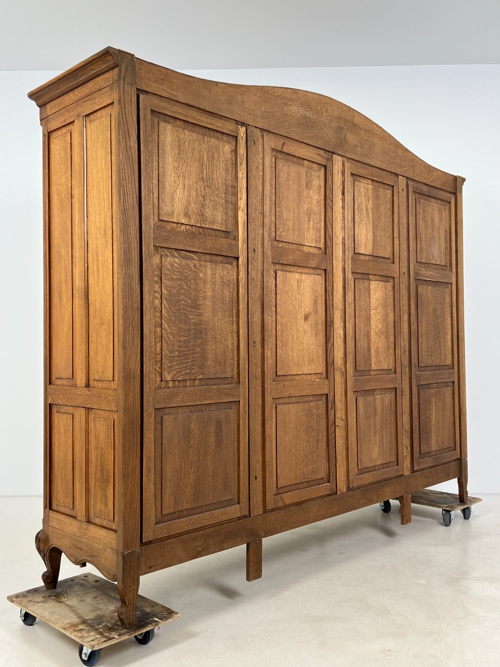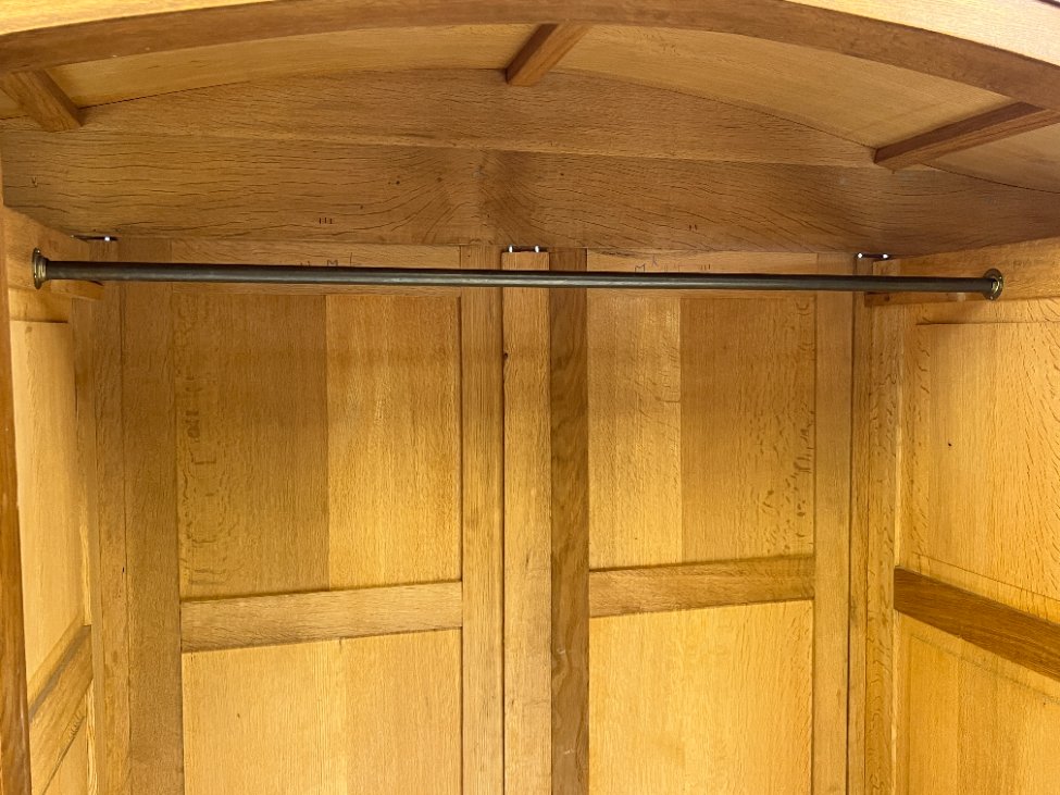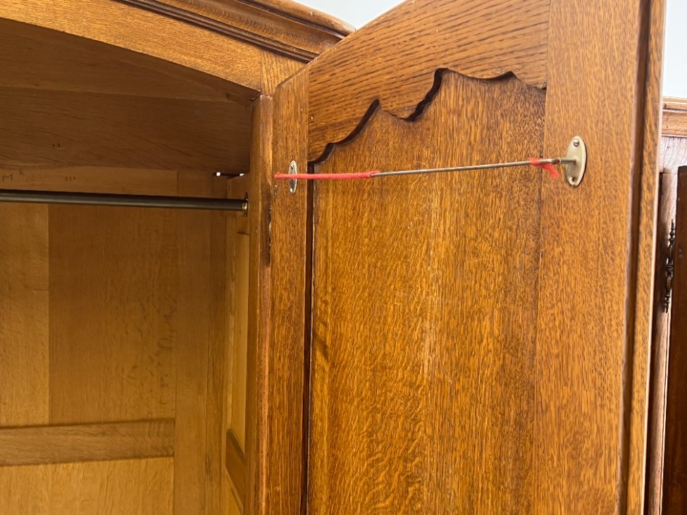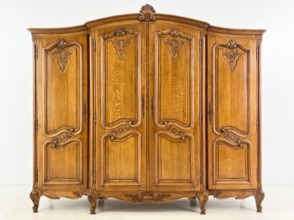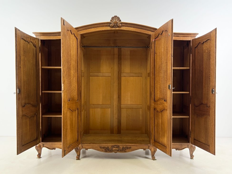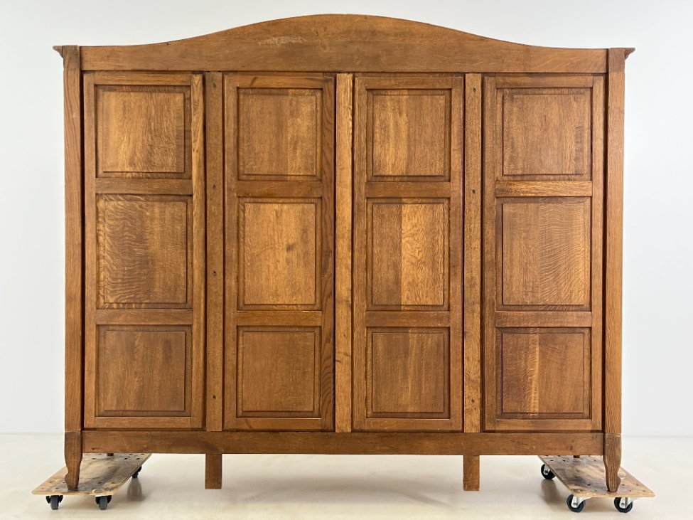 Plati ąžuolinė keturių durų rūbų spinta.