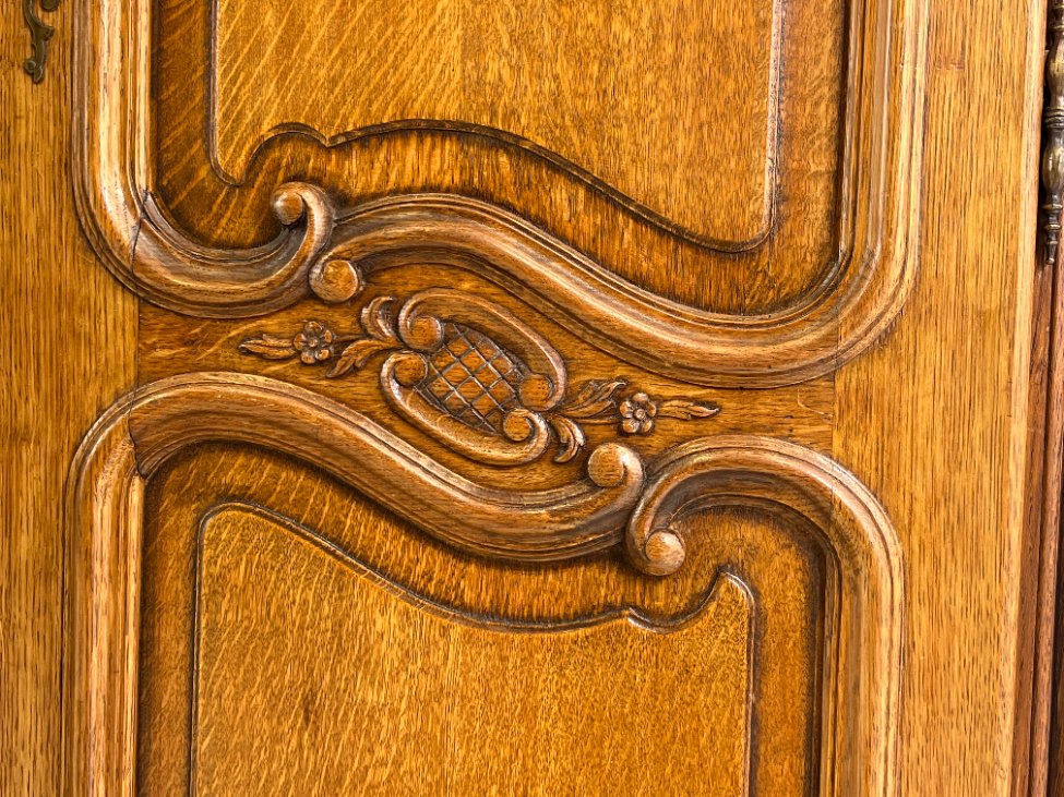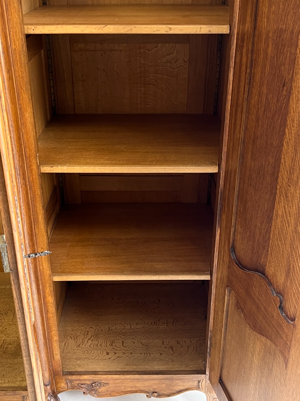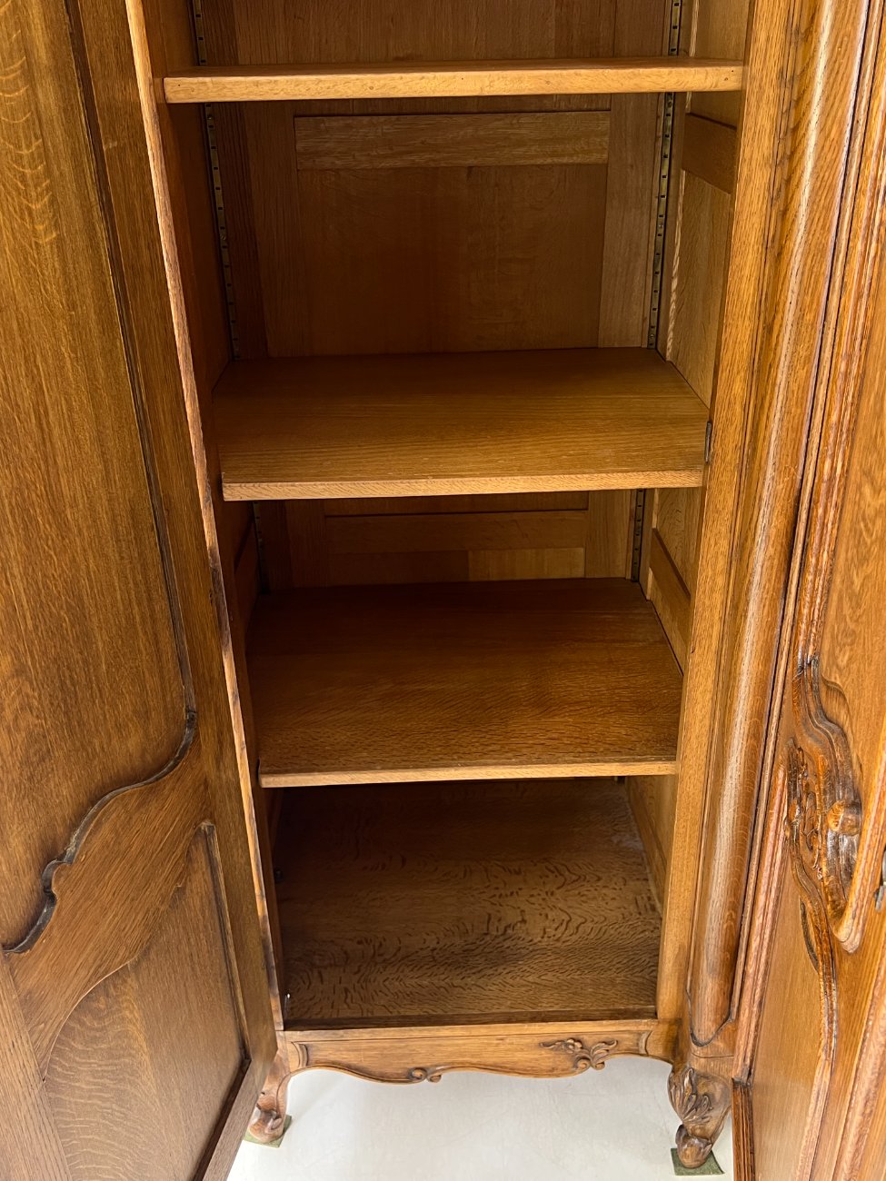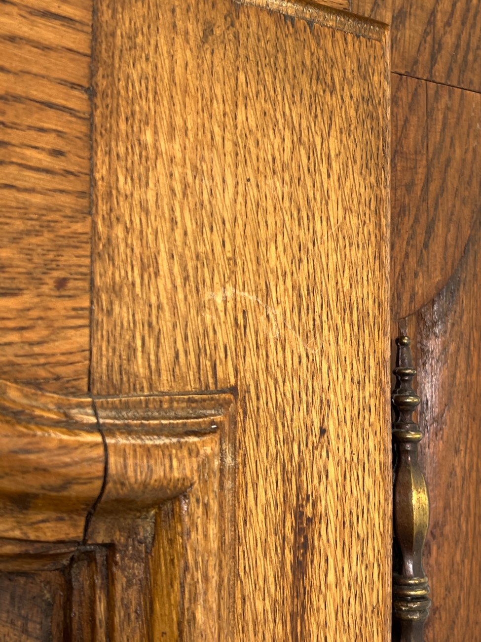 Plati ąžuolinė keturių durų rūbų spinta.