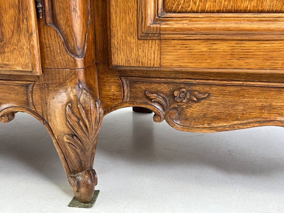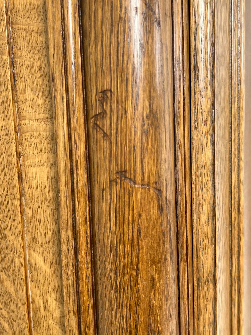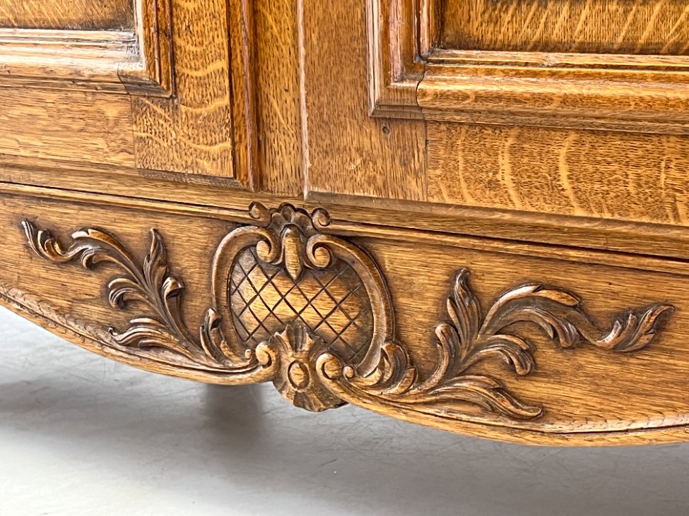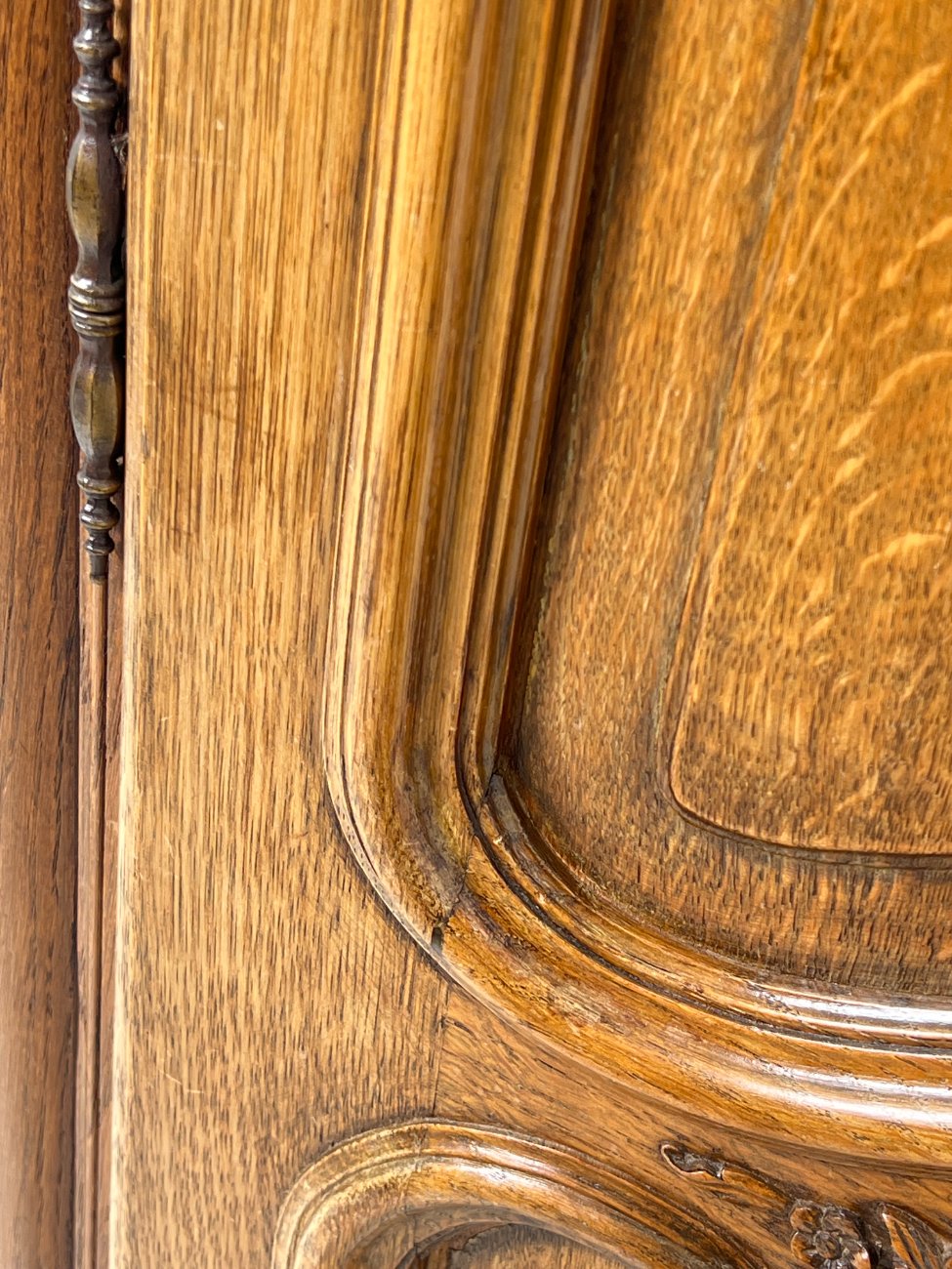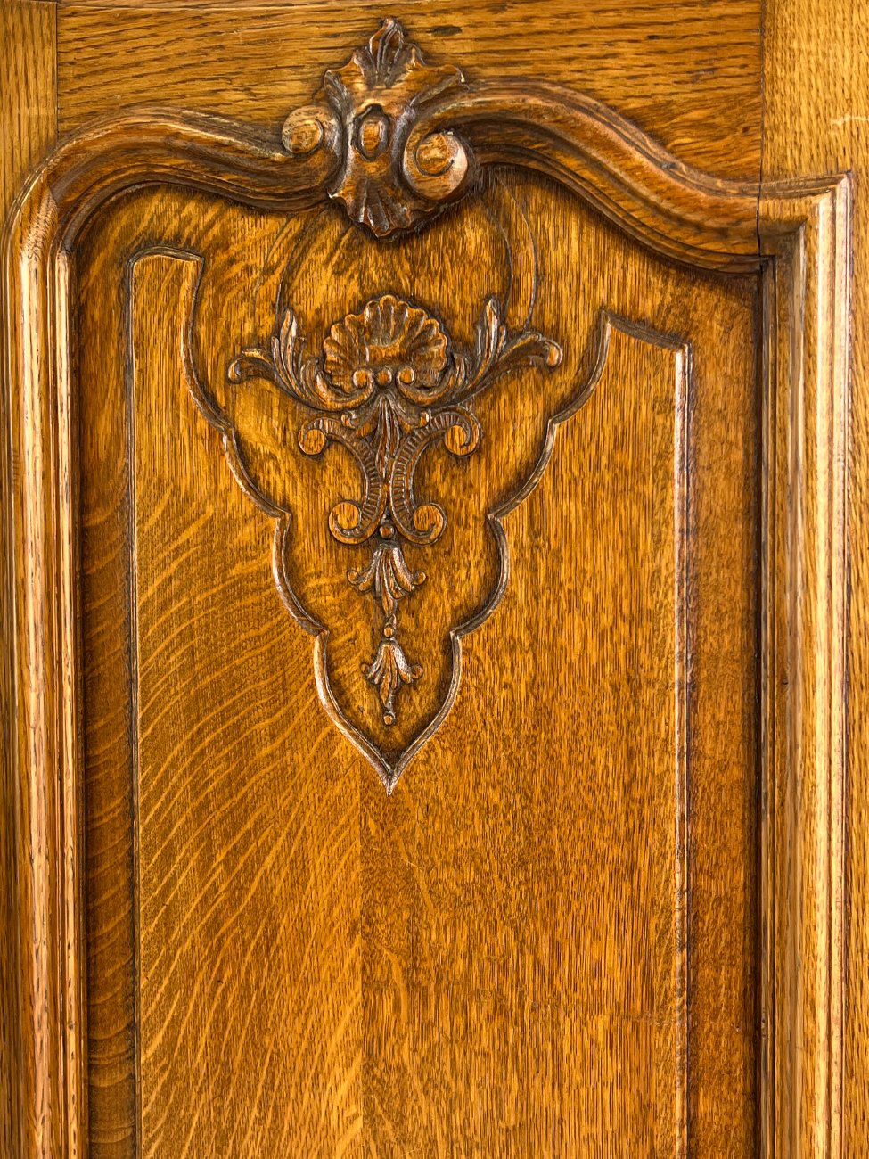 Plati ąžuolinė keturių durų rūbų spinta.
