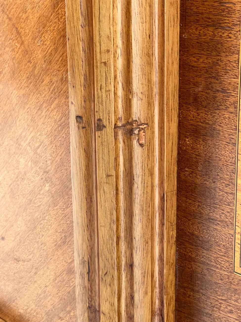 | Papildoma informacija | Matomos naudojimo žymės, per visą paviršių yra pabraižymų, įmušimų, dėmių, vietomis trūksta faneruotės. Ant veidrodžio stiklo yra senėjimo dėmių. |