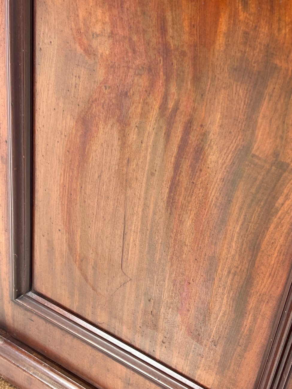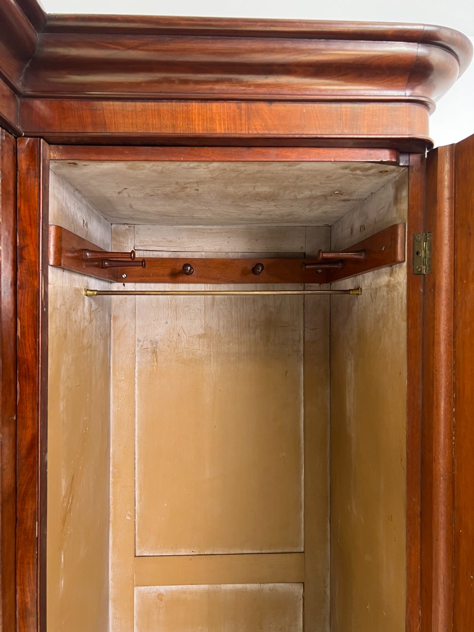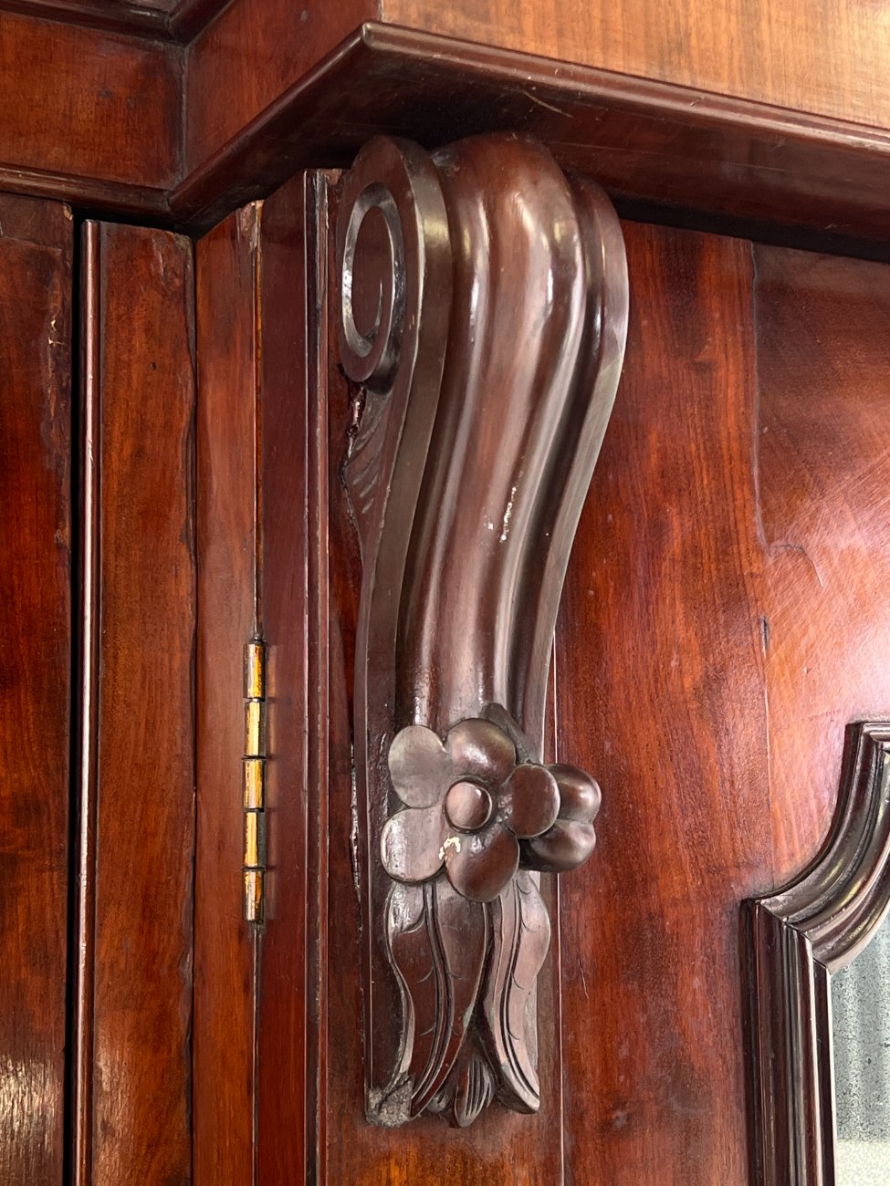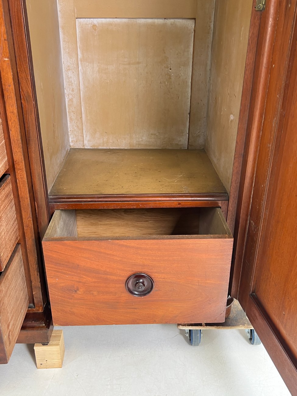 Trijų durų raudonmedžio rūbų spinta su veidrodžiu