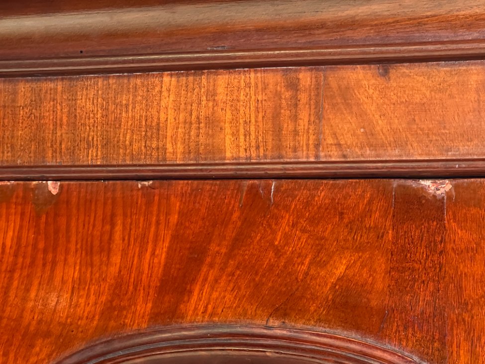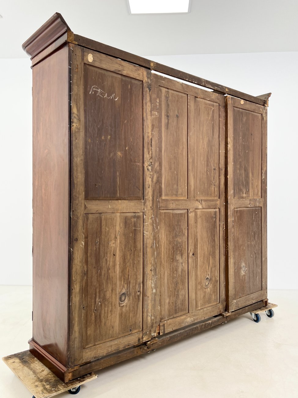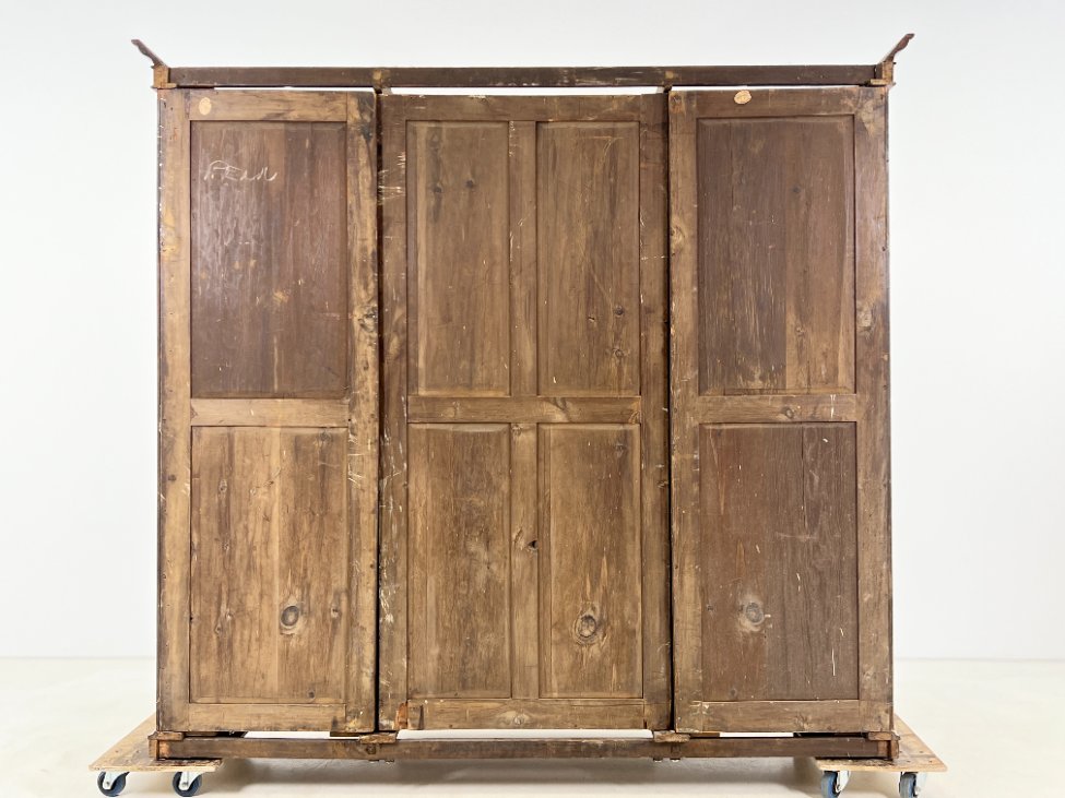| Papildoma informacija | Ant veidrodžio yra senėjimo žymės, dėmės. Ant korpuso pabraižymai, įmušimai, dėmės. Vietomis trūksta faneruotės. Neveikianti centrinių durų spyna. |
