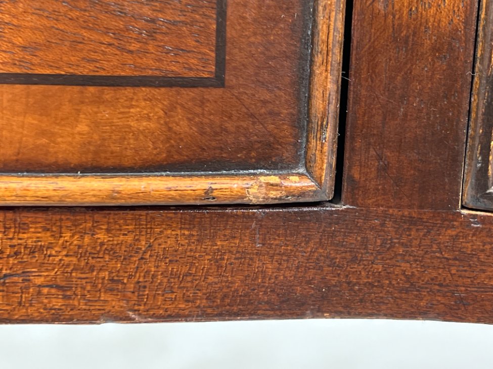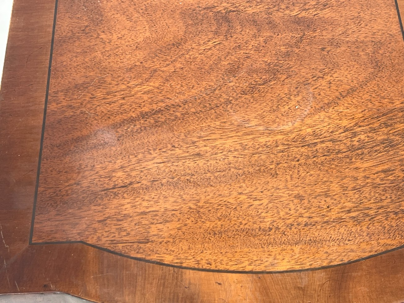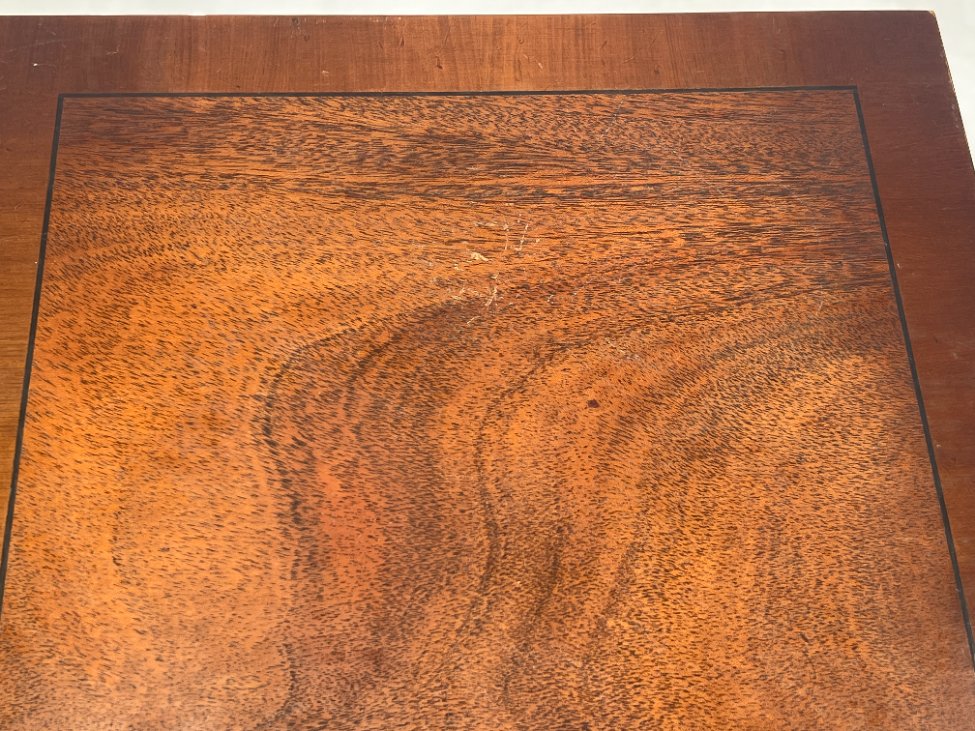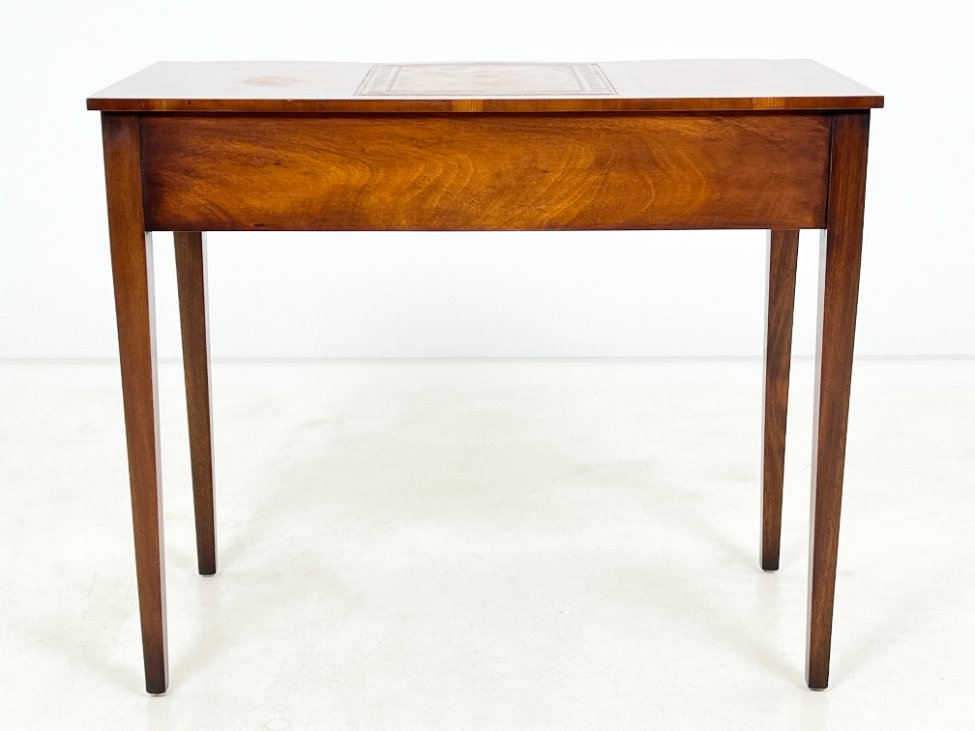 Angliško stiliaus trijų stalčių raudonmedžio rašomasis stalas.
