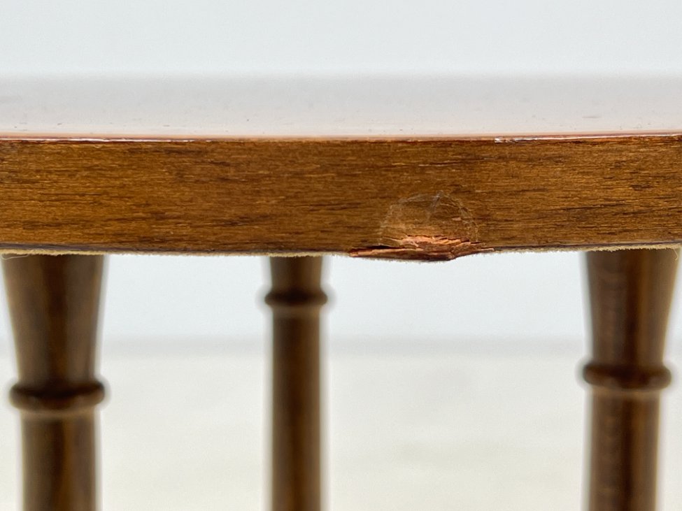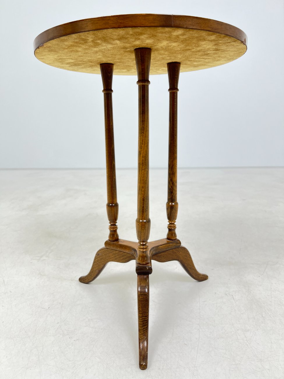 Apvalus riešutmedžio staliukas.