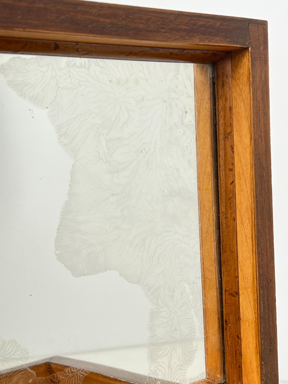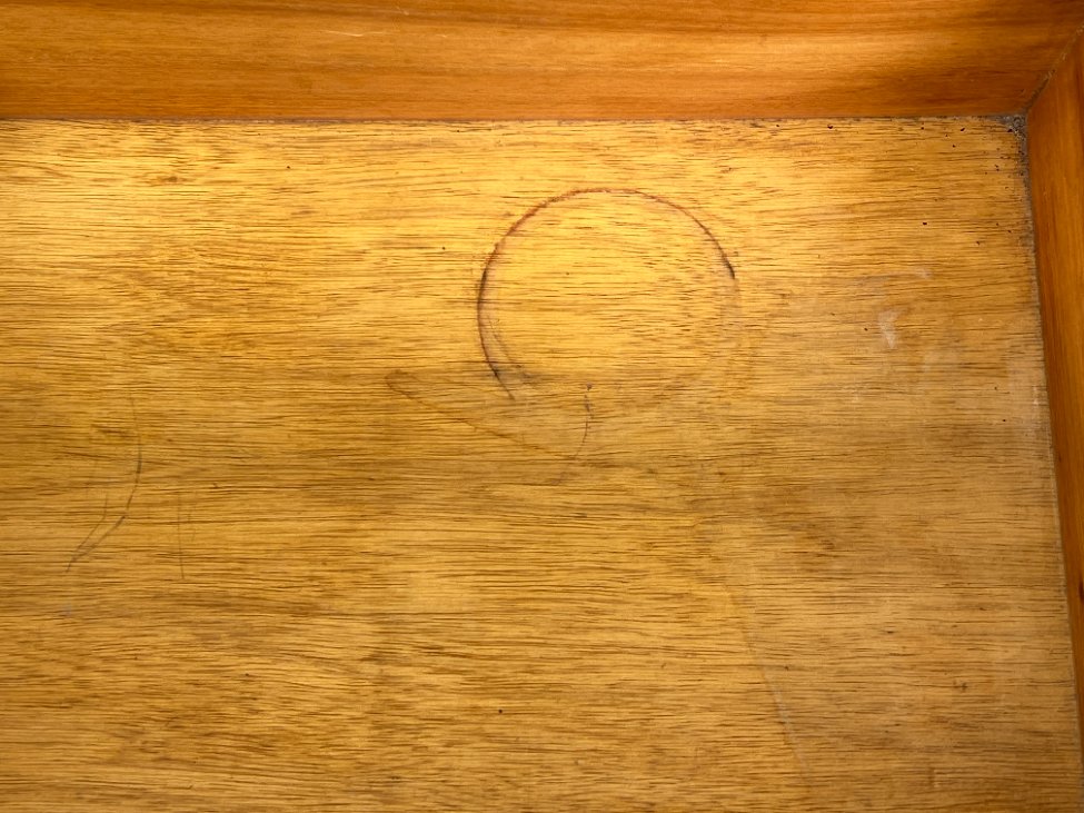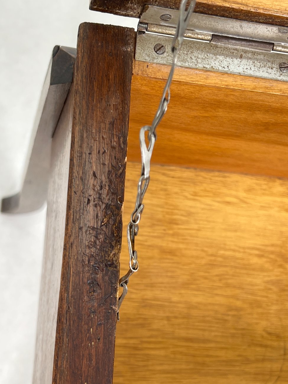 | Papildoma informacija | Matomos naudojimo žymės, per visą paviršių yra pabraižymų, įmušimų, faneruotės įtrūkinėjimų. Matoma metalinių detalių oksdiacija. Ant veidrodžio yra senėjimo dėmių. Vidinėje dalyje yra dėmių. |