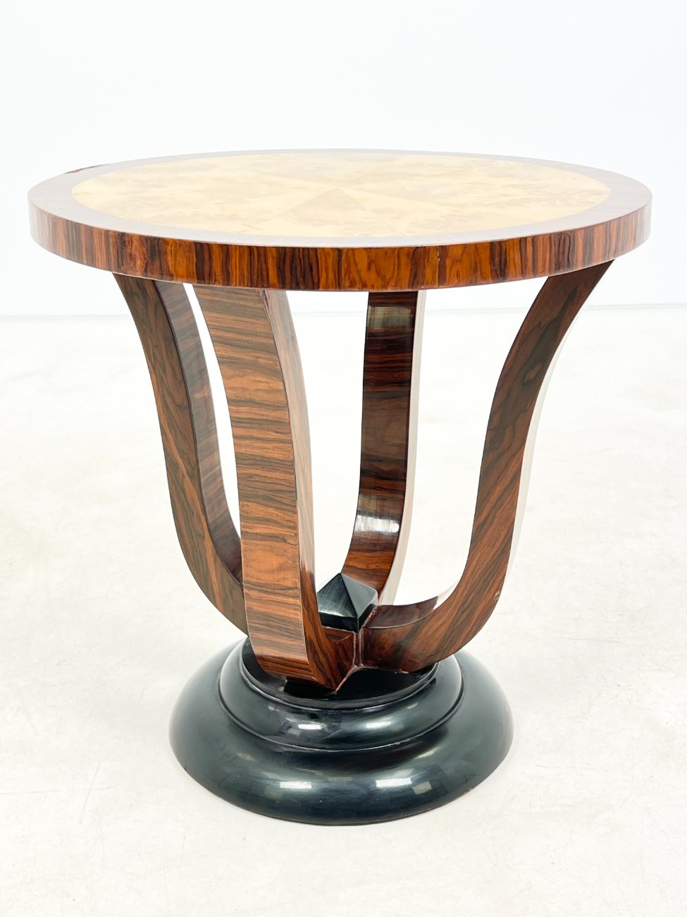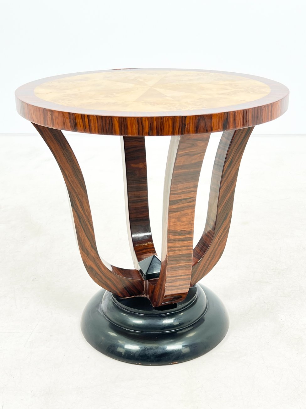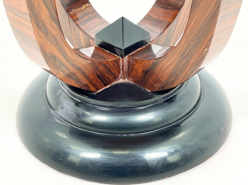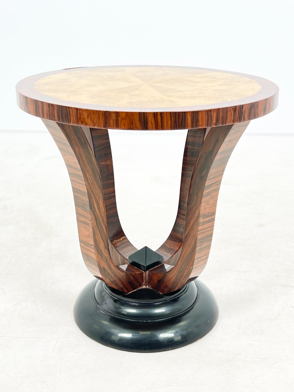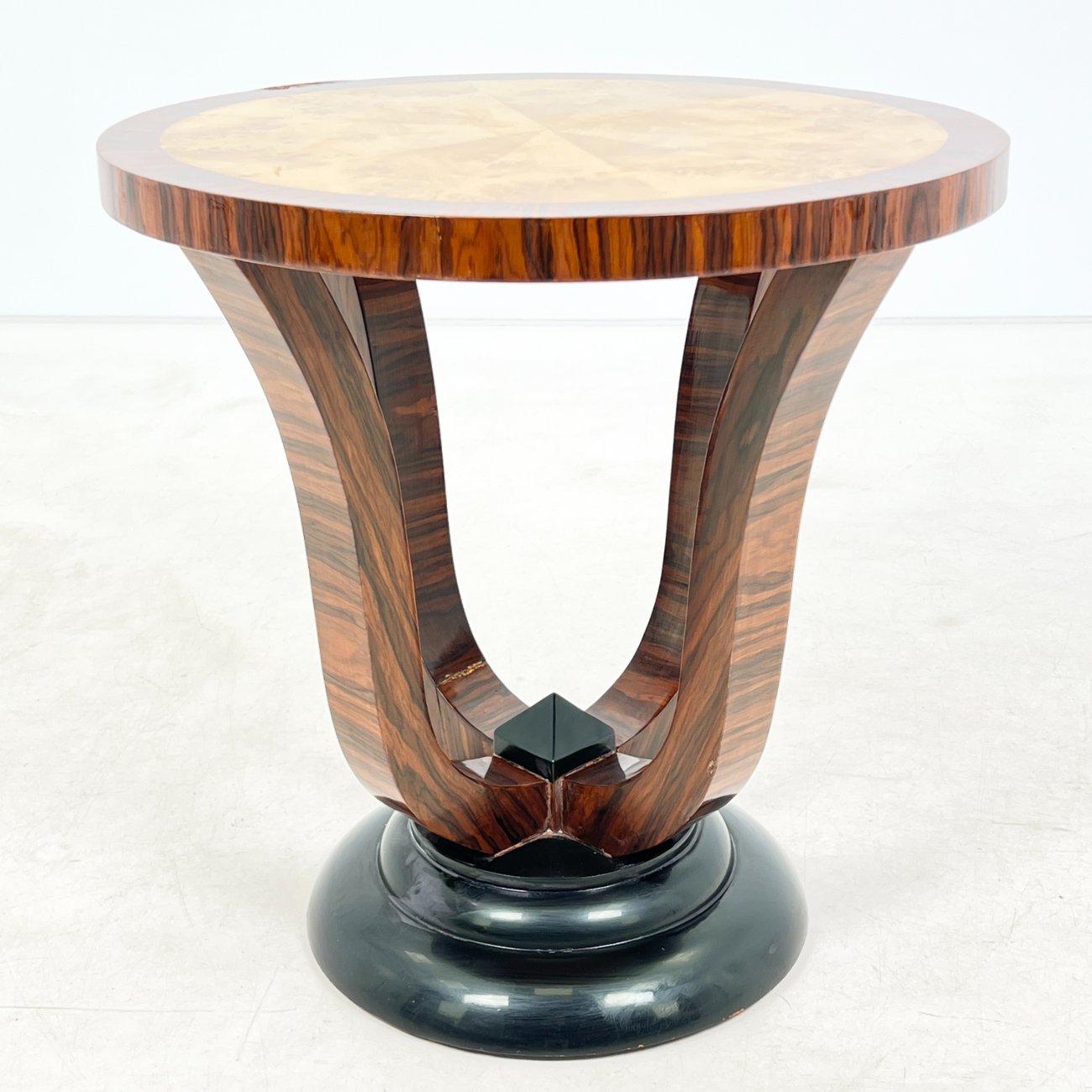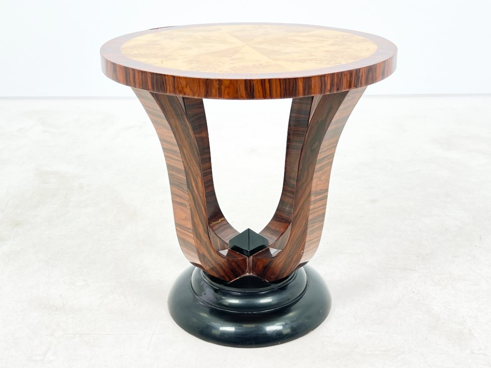Art Deco stiliaus apvalus riešutmedžio lukšto staliukas 59,5×59,5×59,5 cm