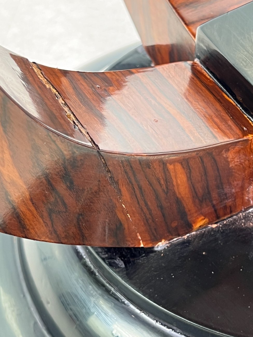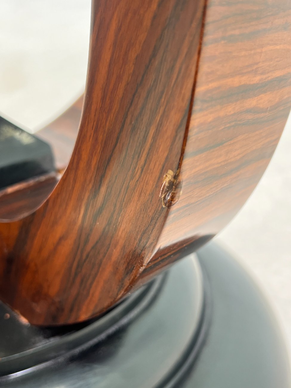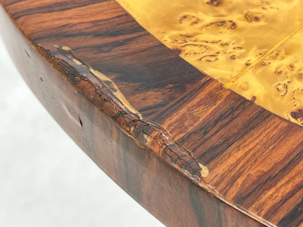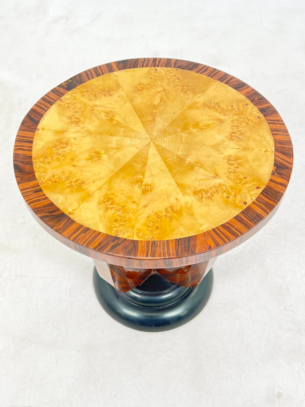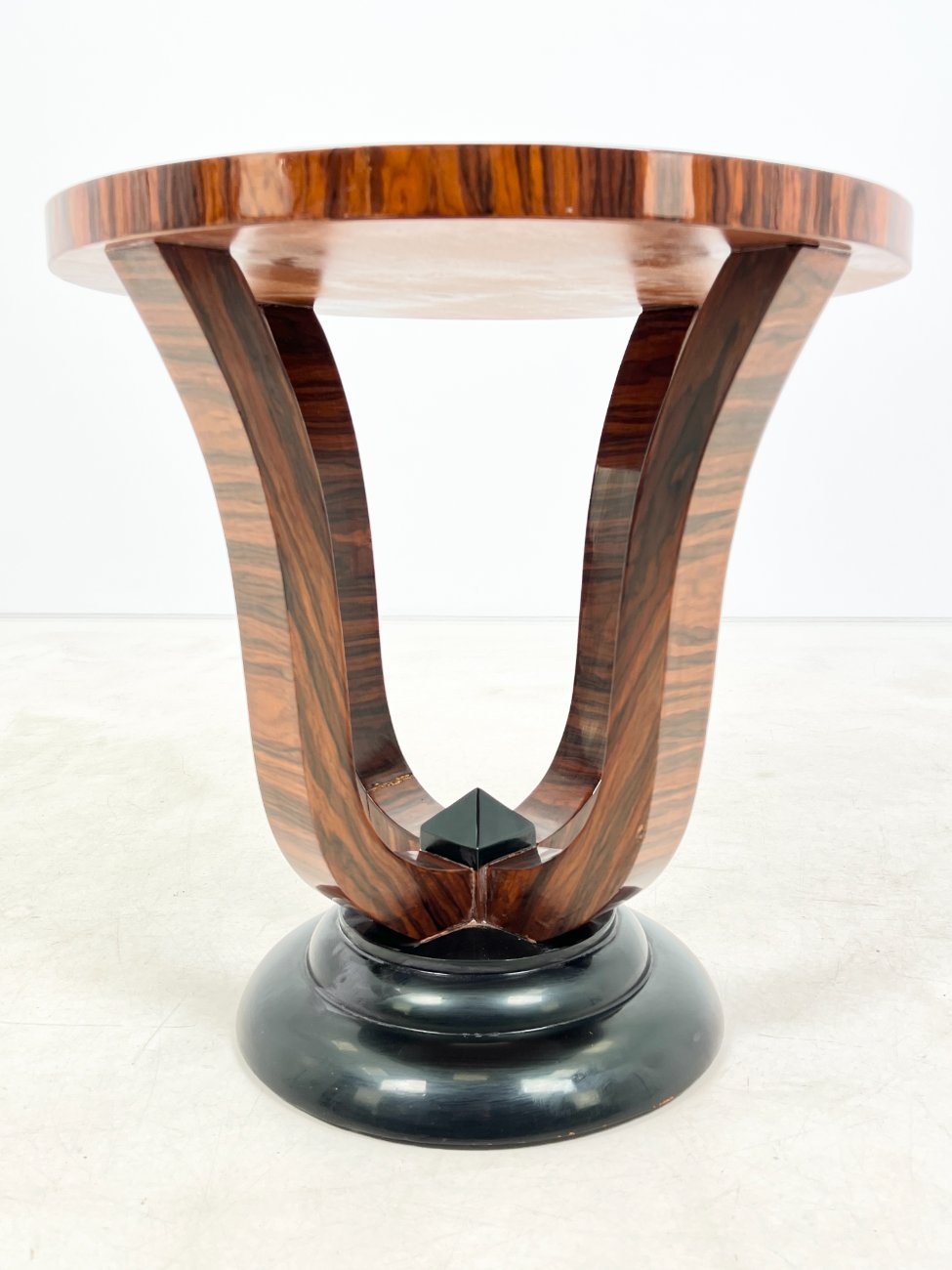 Art Deco stiliaus apvalus riešutmedžio lukšto staliukas 59,5×59,5×59,5 cm
