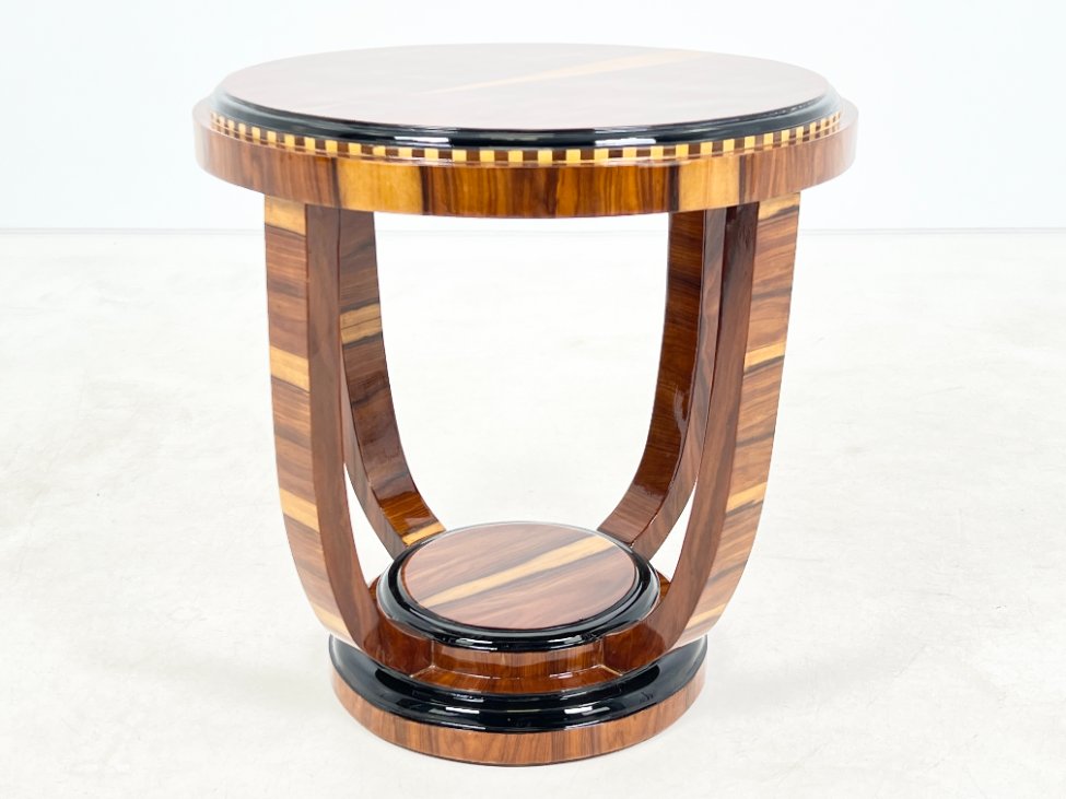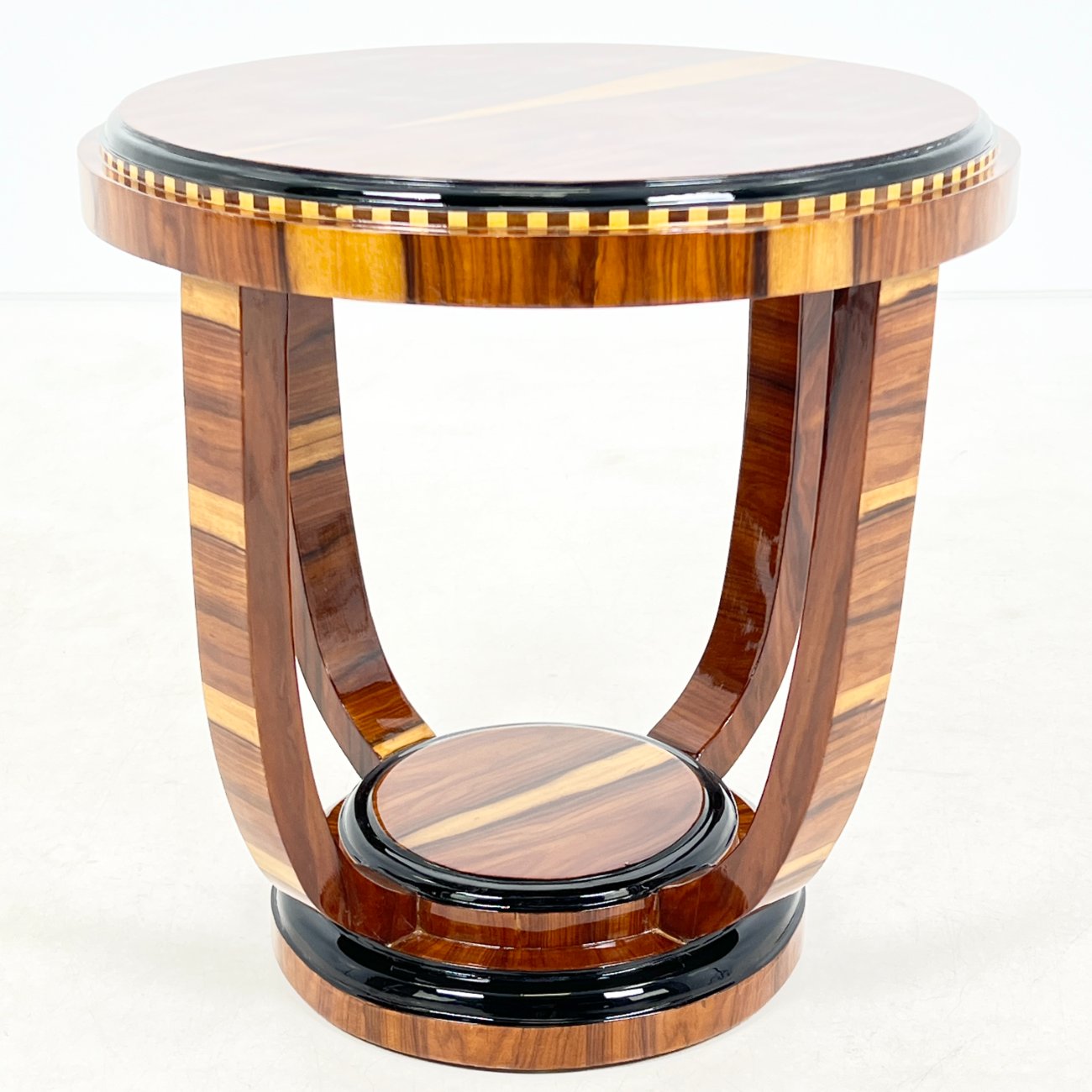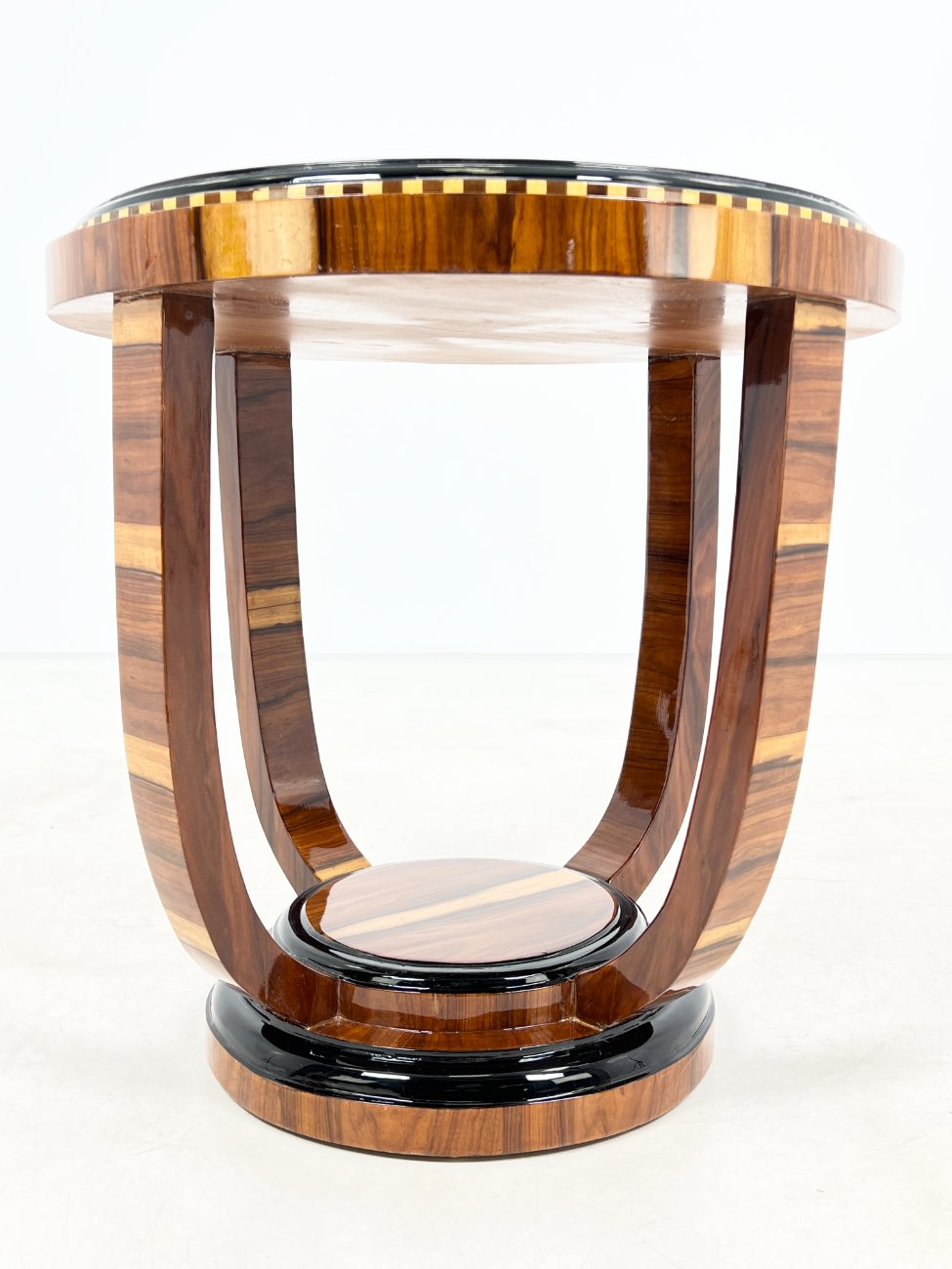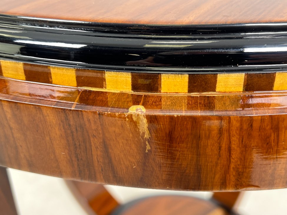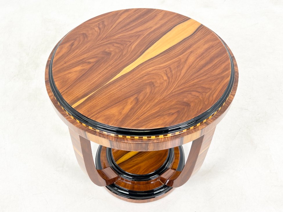Art Deco stiliaus apvalus riešutmedžio lukšto staliukas 60x60x59 cm